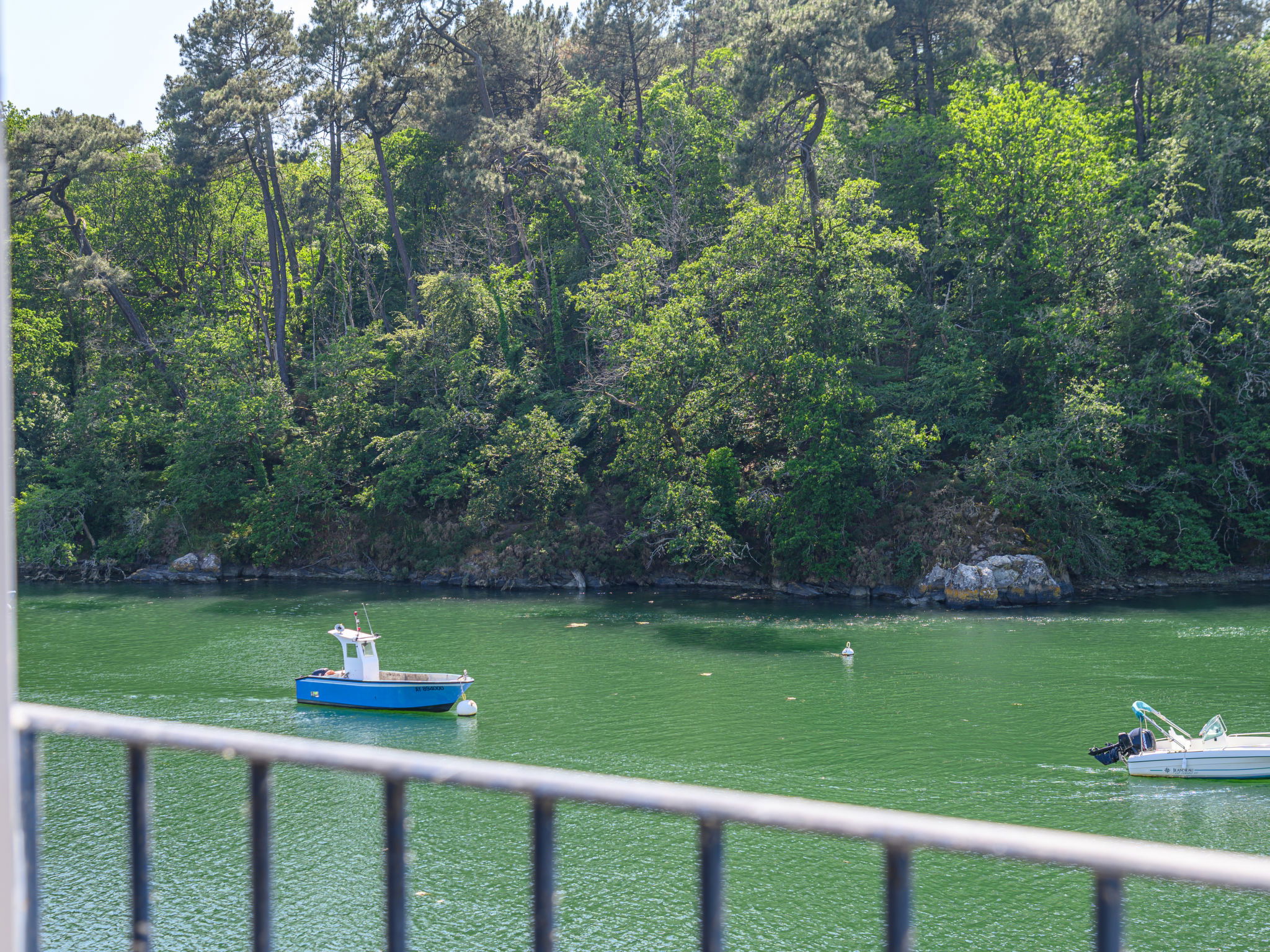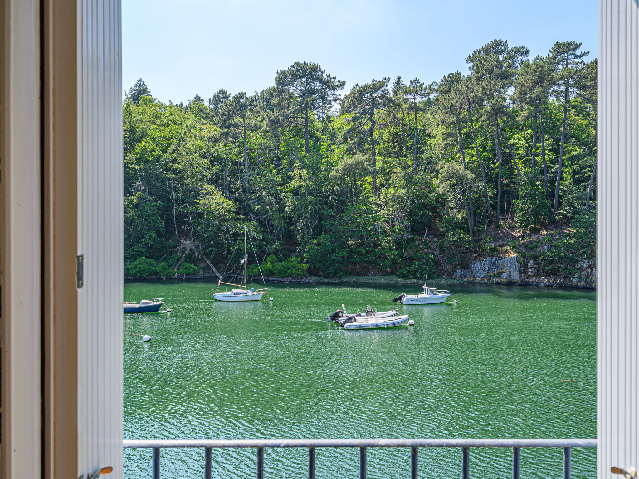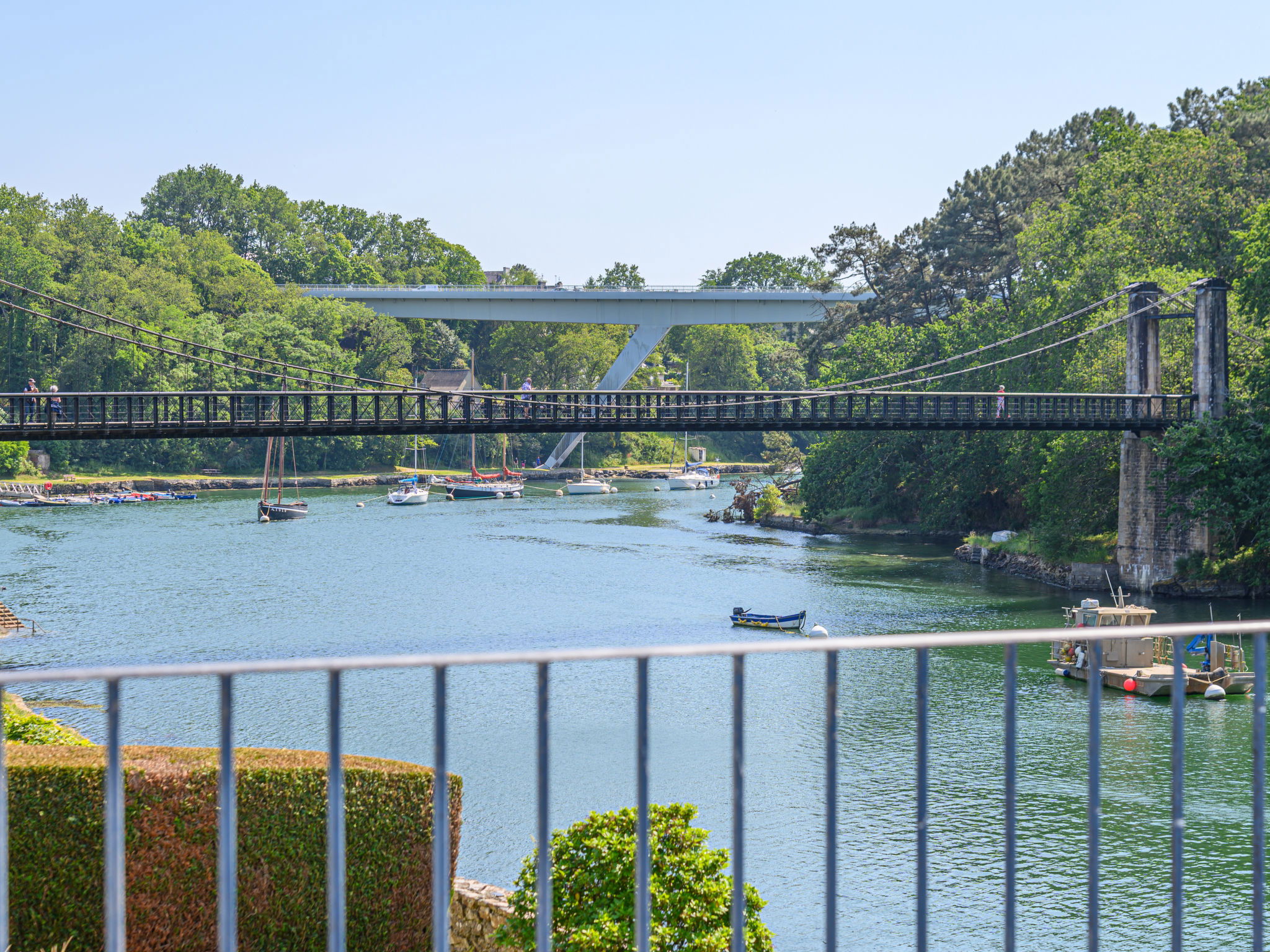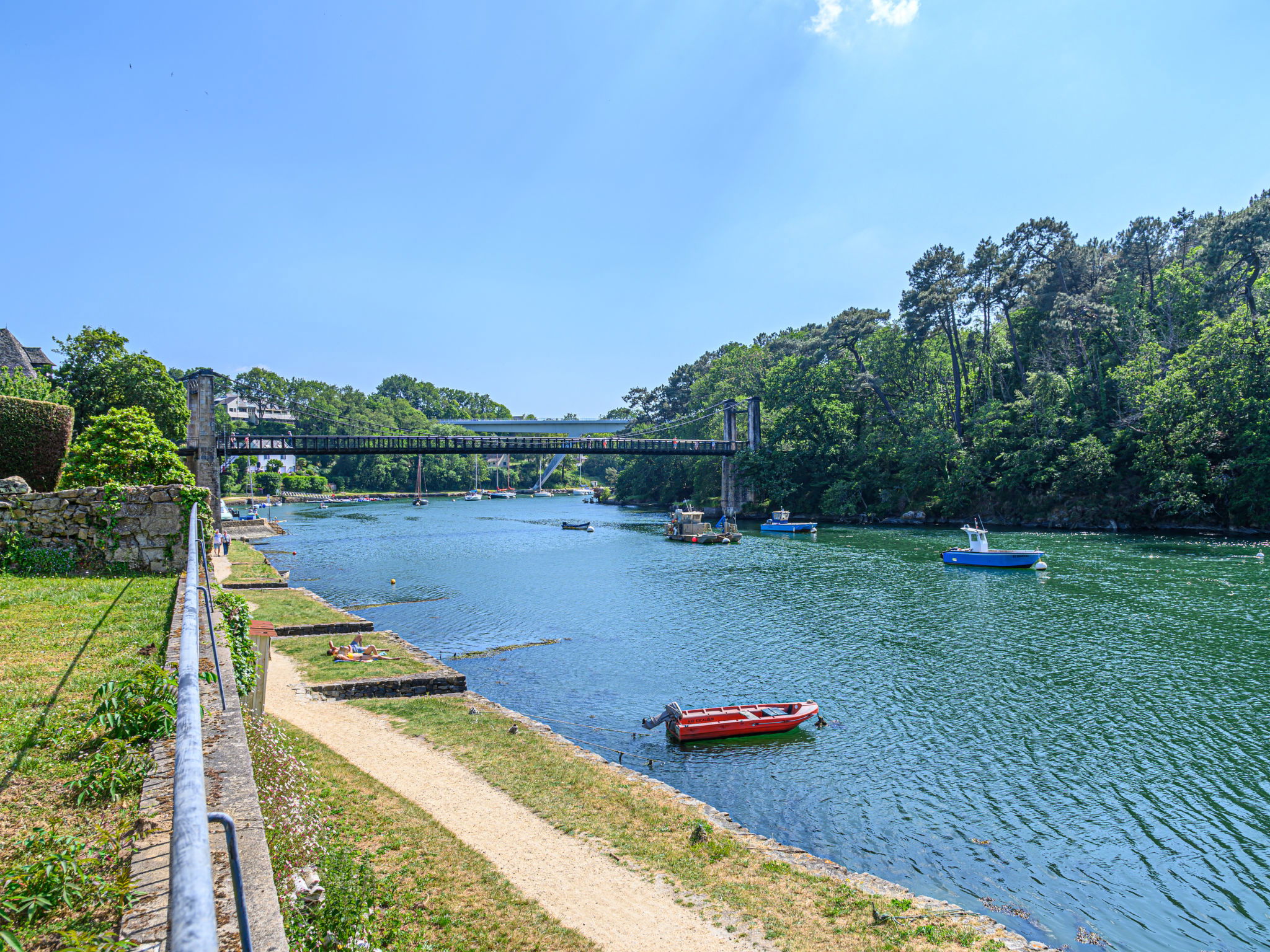 "Glann Aven", 6-room house 125 m2 on 3 levels, south facing position. Beautiful furnishings: entrance hall. Large living/dining room with open-hearth fireplace (only for decoration), dining table and TV (flat screen). Kitchen (oven, dishwasher, 4 ceramic glass hob hotplates, toaster, kettle, microwave, electric coffee machine) with small dining table. On the lower ground floor: 1 room with 1 french bed (140 cm, length 190 cm). Bathroom, sep. WC, double hand-basin. Electric heating. Upper floor: 3 rooms with sloping ceilings, each room with 1 french bed (140 cm, length 190 cm). 1 room with 1 x 2 bunk beds (90 cm, length 190 cm). Bathroom, sep. WC, double hand-basin. Terrace furniture, deck chairs (3). Beautiful view of the river. Facilities: washing machine, iron, hair dryer. Internet (WiFi, free). Please note: non-smoking house. Smoke alarm. Offer by a private individual according to Art. 155, IV of CGI.