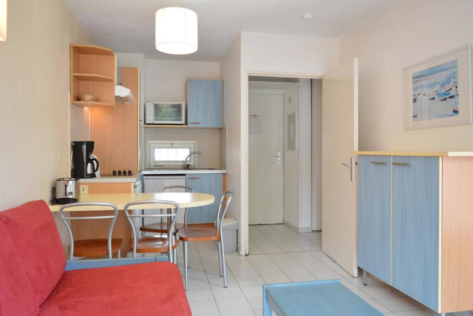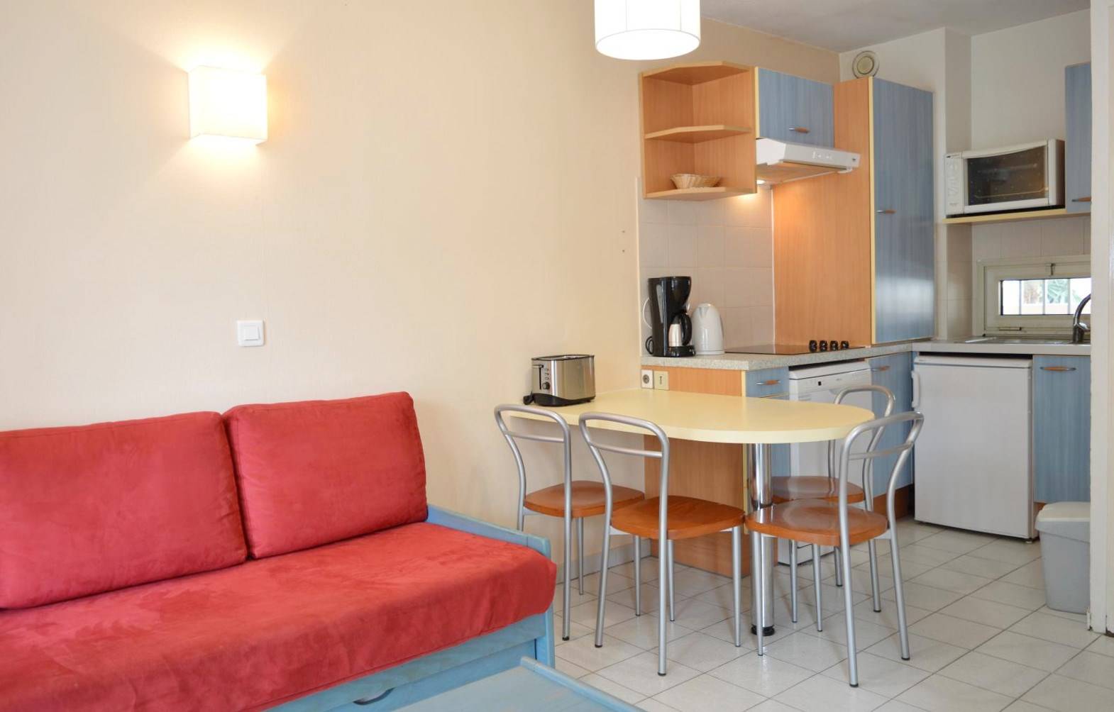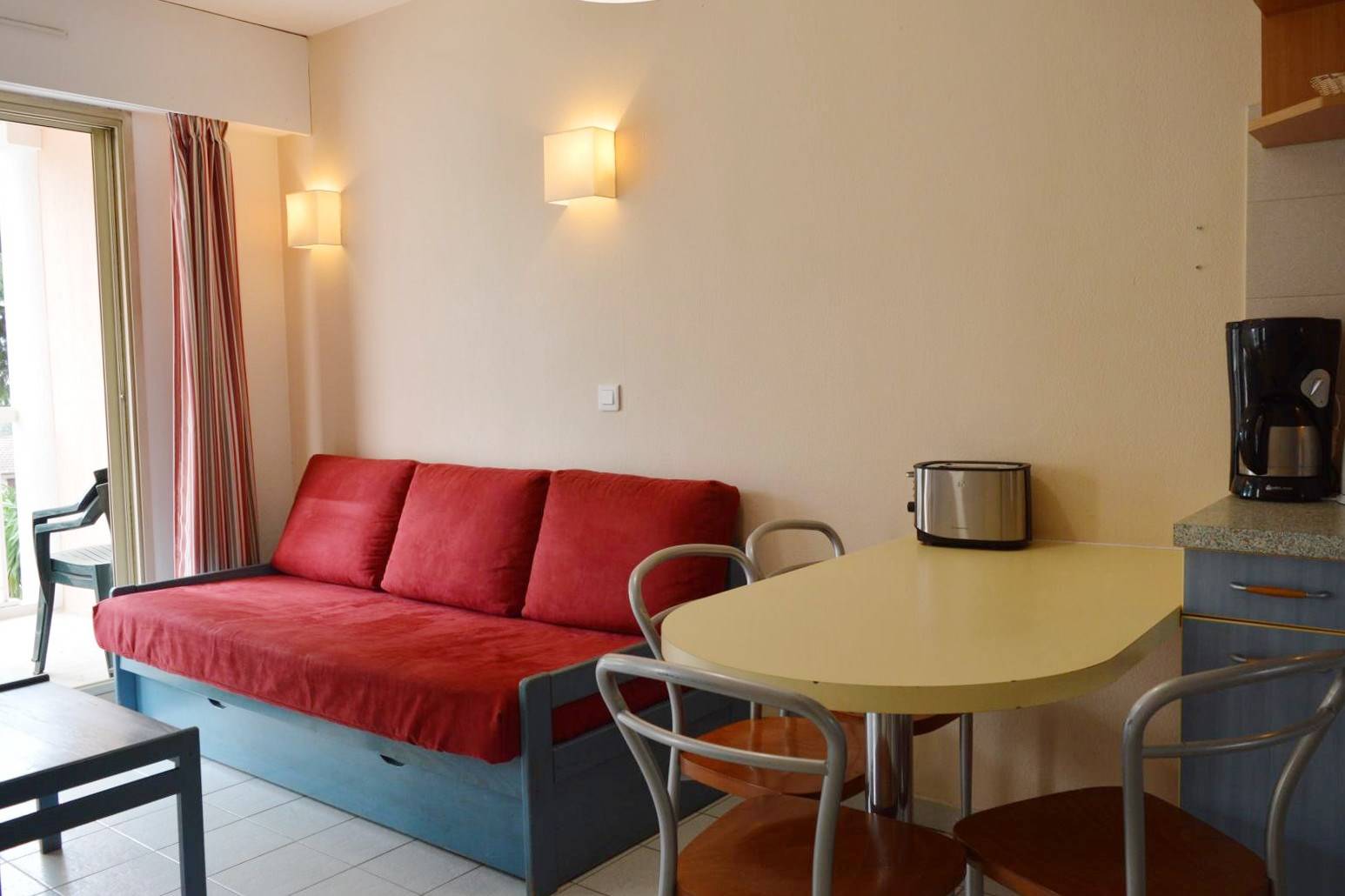 Golfe-Juan (06) - Résidence Open - Apartment N°204 - Building 5 - 35 Boulevard Georges Pompidou - Appartement apartment - approximately 40 M² - up to 4 people Only 400 m from the beach and 50m from the shops this Appartement of holidays by the sea is located in a secure residence with swimming pool and gym in the heart of a district very popular with our Golfe-Juan holidaymakers. It consists of a fitted kitchen open to a living room of around 25 m2 with a sofa and a trundle bed for 2 people, a bedroom with a double bed, a bathroom with bathtub, a separate toilet and a terrace with outdoor table and chairs. THE ADVANTAGES OF THIS RENTAL BY THE SEA: private swimming pool in the residence (subject to health developments linked to the COVID-19 situation). Parking space to park your vehicle, this comfortable apartment offers great amenities. Cleaning with disinfection included