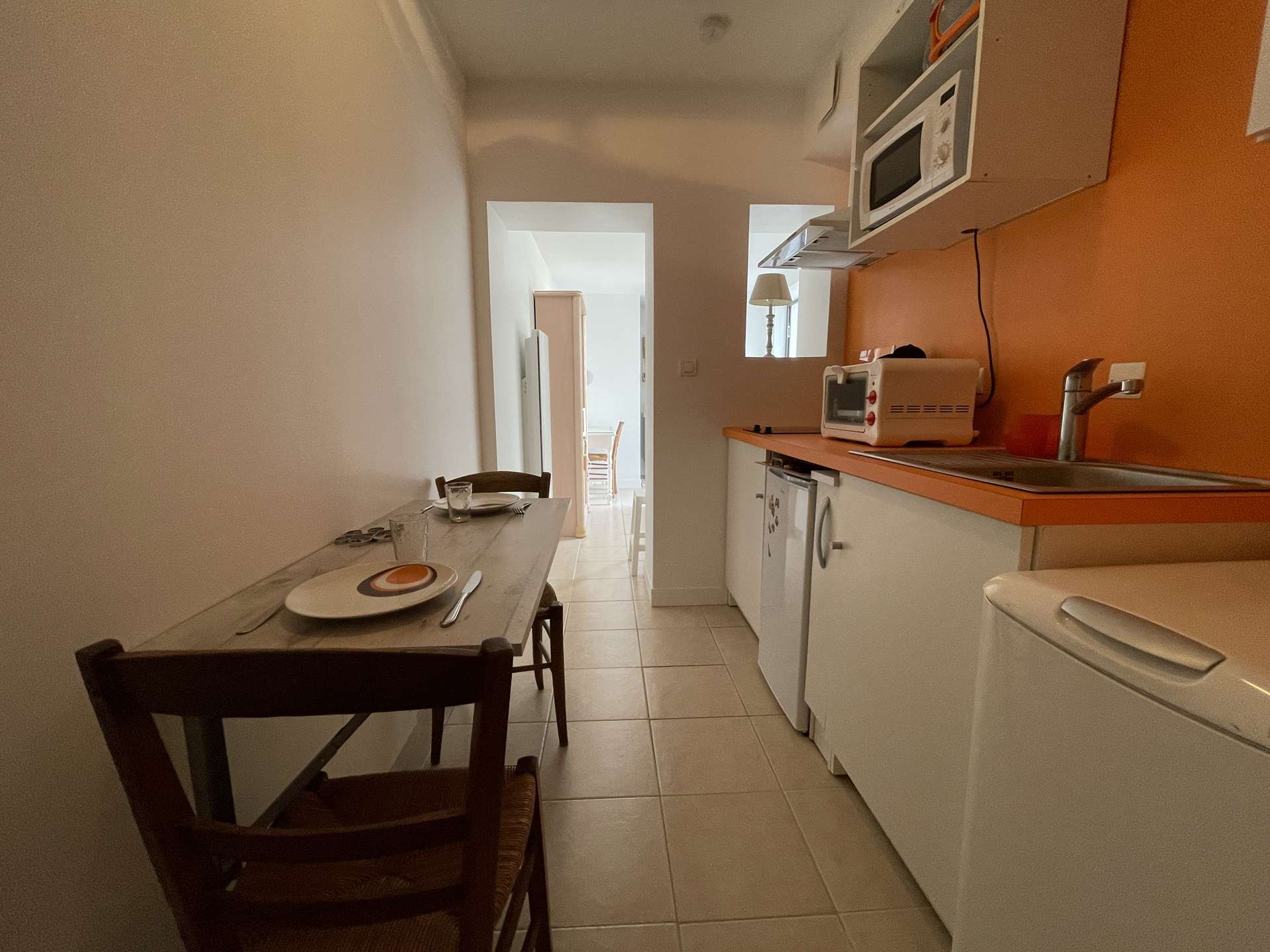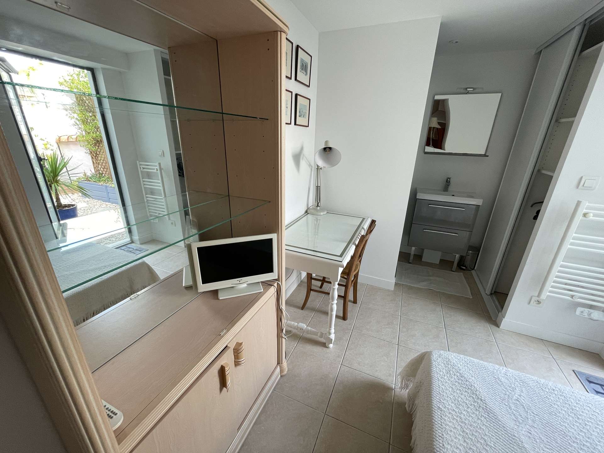 La Rochelle (17) 1-room studio - approx. 17 m² - up to 2 people Holiday studio located in a house in the town center of La Rochelle. It is on the ground floor and consists of a kitchenette equipped with washing machine, a living room with a 120cm bed for 2 people, a bathroom and a toilet. The advantages of this rental by the sea: Near the old port, in the heart of the city center, close to shops and easy access to public transport. Access to the owners' garden to enjoy the outdoors and have lunch in the sun. Wi-Fi included. Cleaning included. Delivery and return of keys exclusively in La Rochelle (Minimes district).