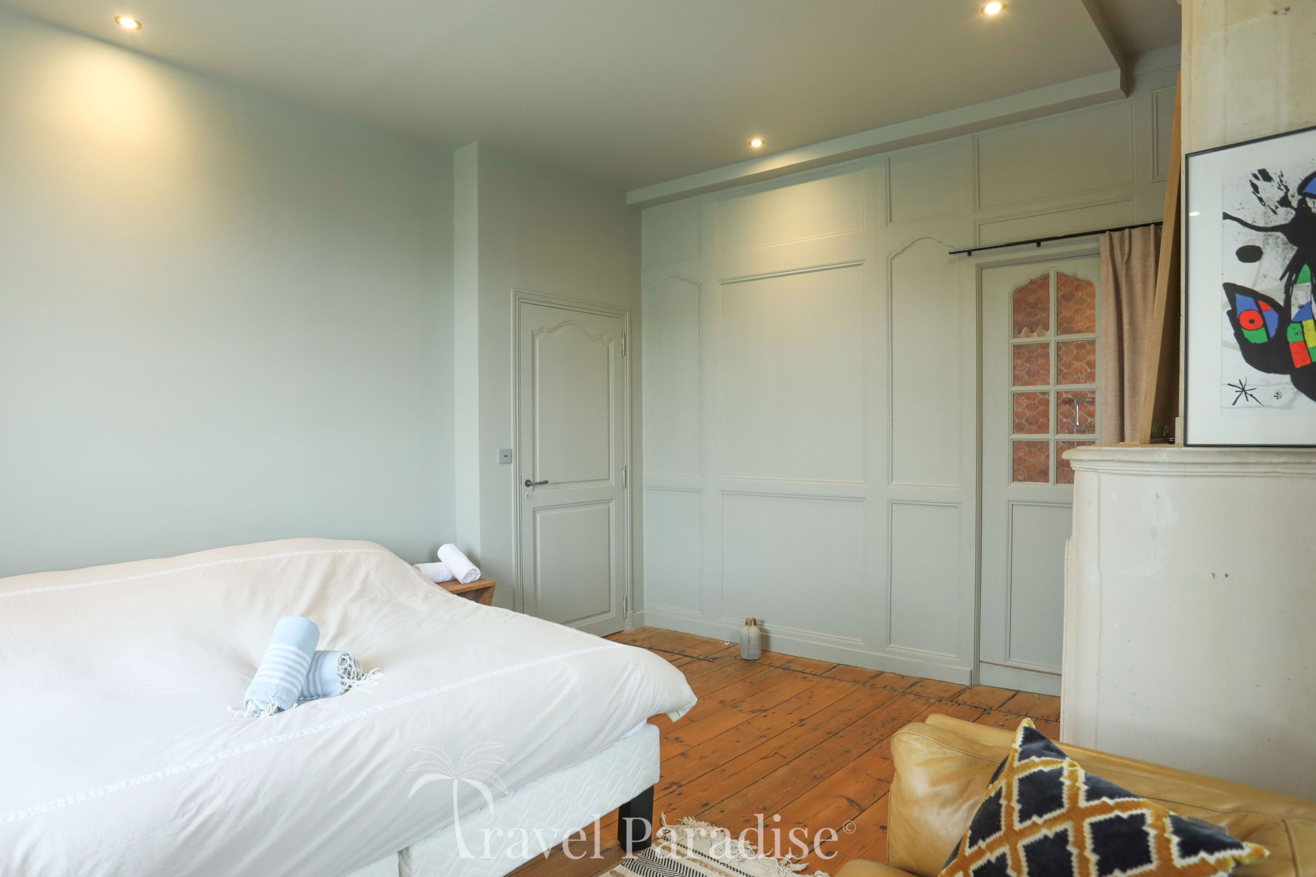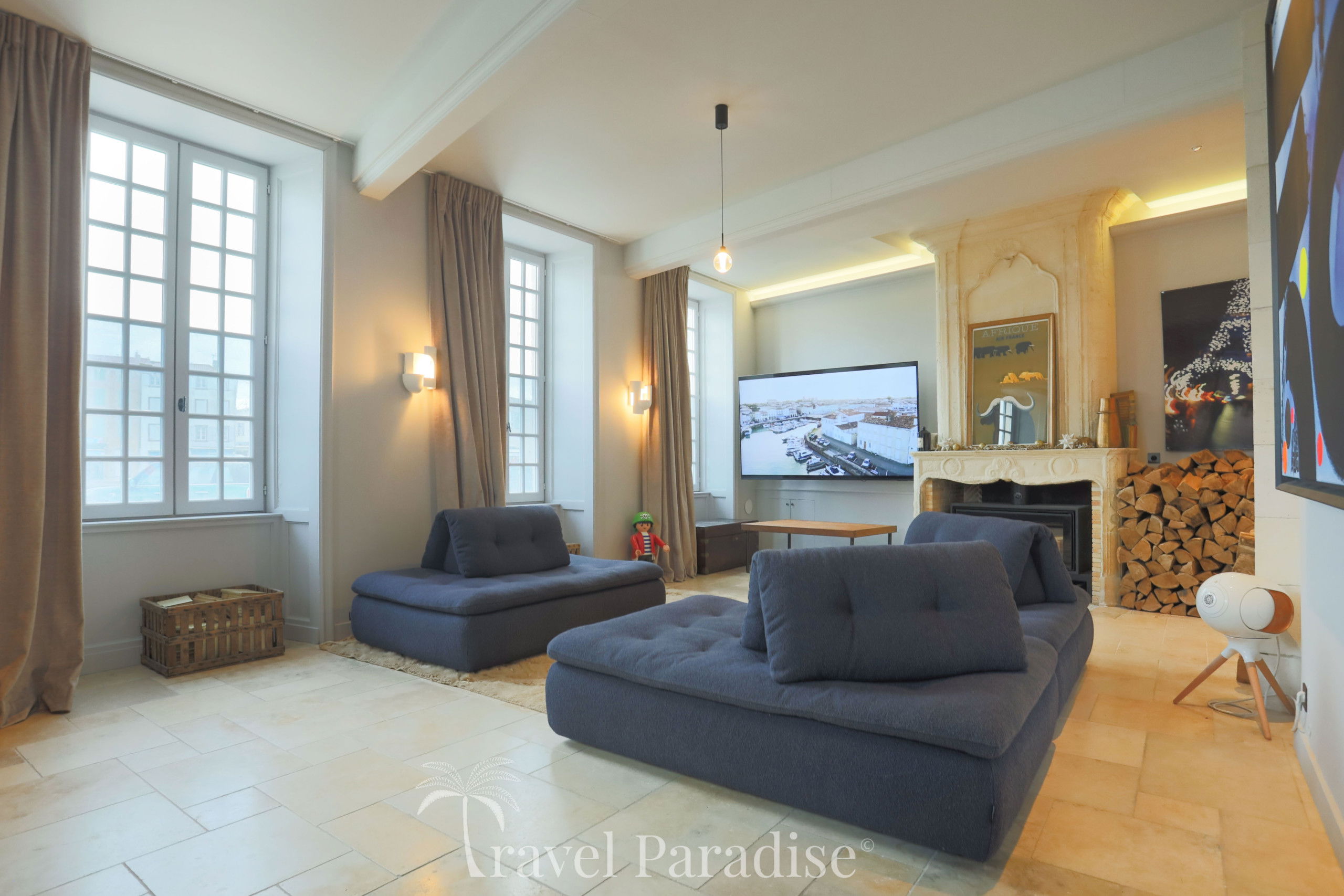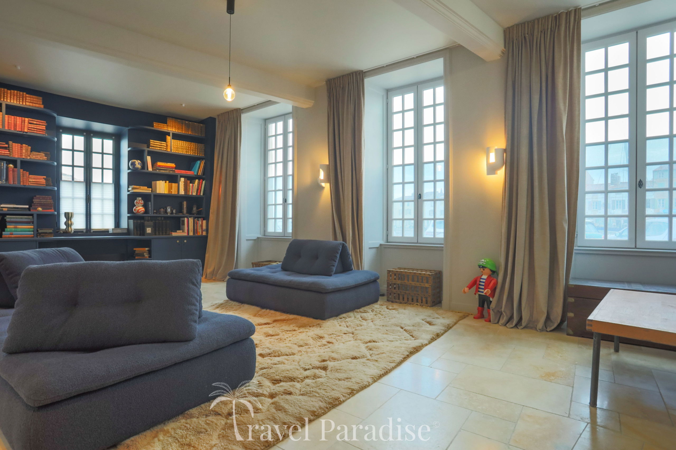 This shipowner's house, on three floors, has 6 bedrooms, which can accommodate up to 11 travelers, 5 bathrooms, including one totally decorated with shells by the famous architect Jacques Garcia, a fully equipped kitchen and 2 living rooms, one of which, on the top floor, with a breathtaking view of the port and the ocean.