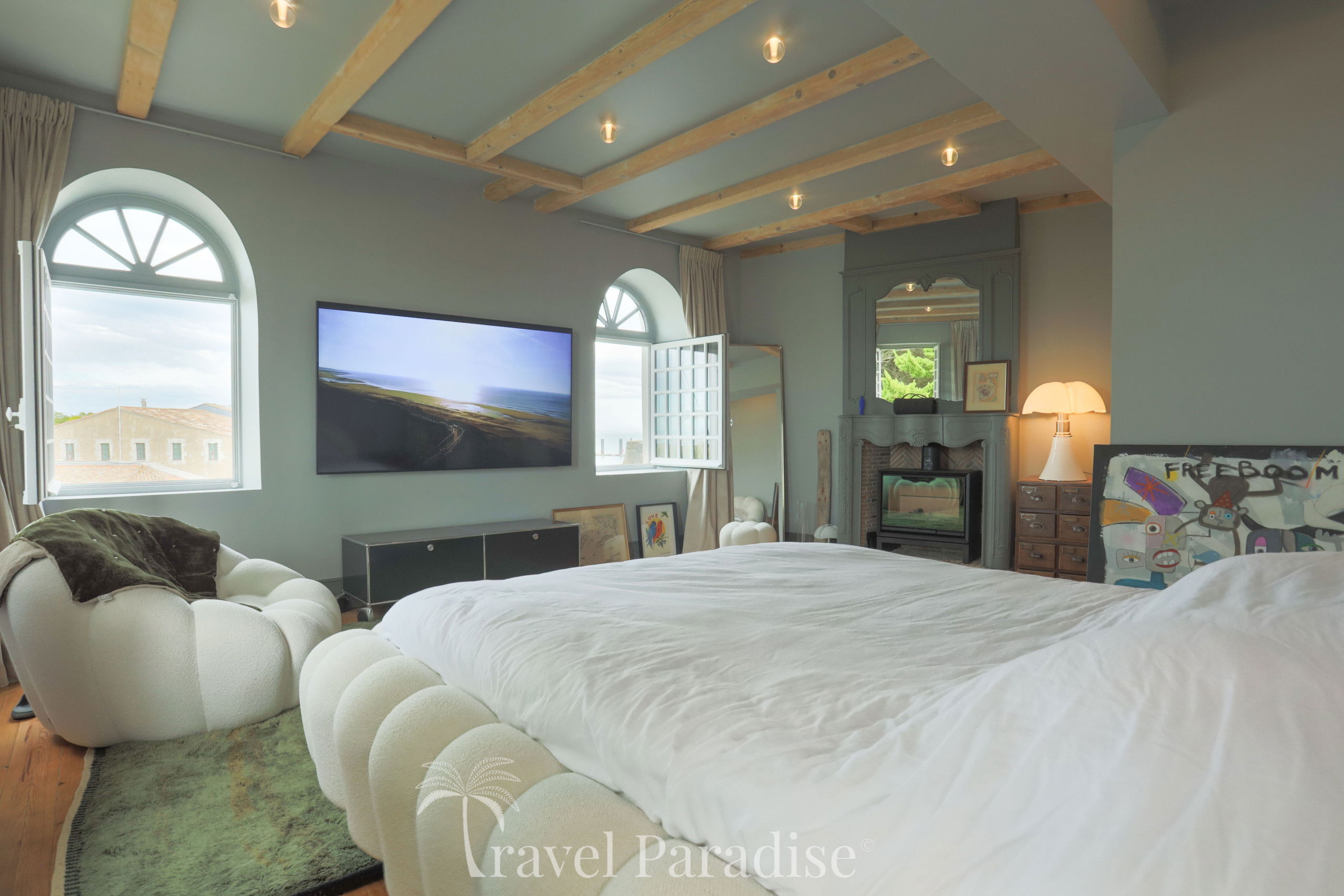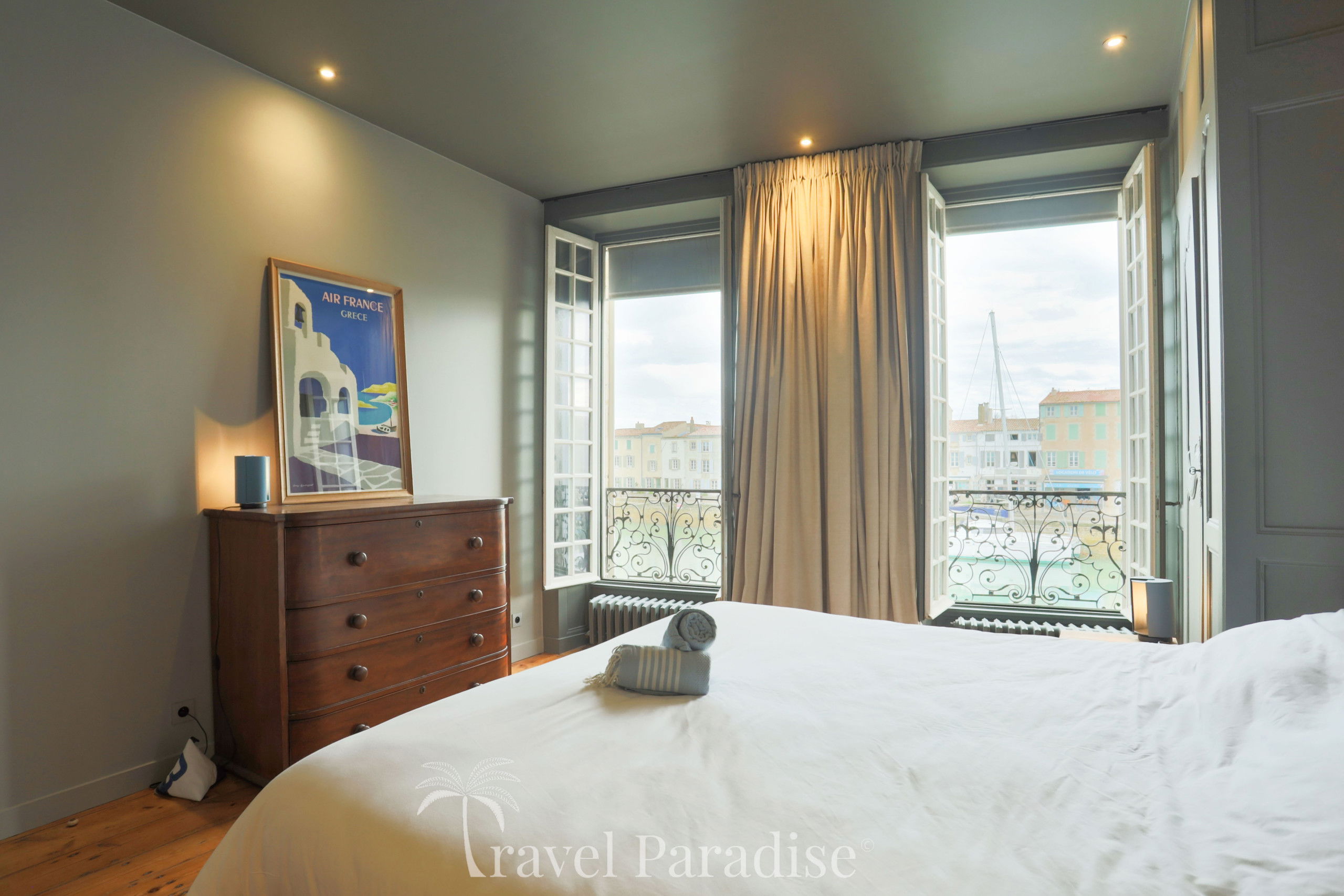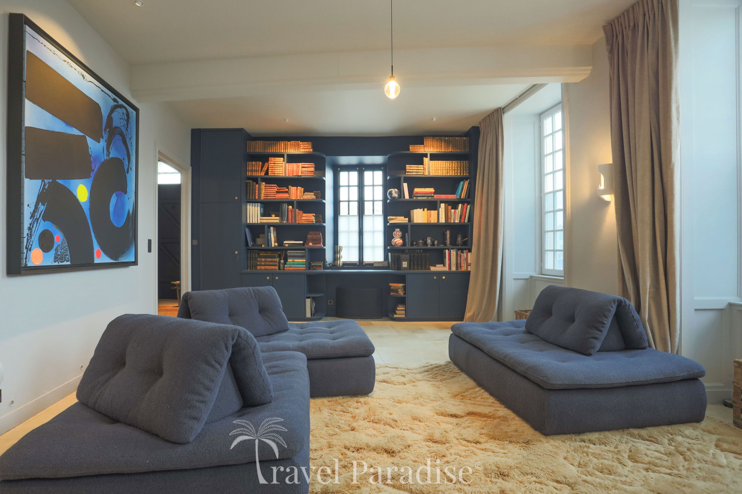 This shipowner's house, on three floors, has 6 bedrooms, which can accommodate up to 11 travelers, 5 bathrooms, including one totally decorated with shells by the famous architect Jacques Garcia, a fully equipped kitchen and 2 living rooms, one of which, on the top floor, with a breathtaking view of the port and the ocean.
