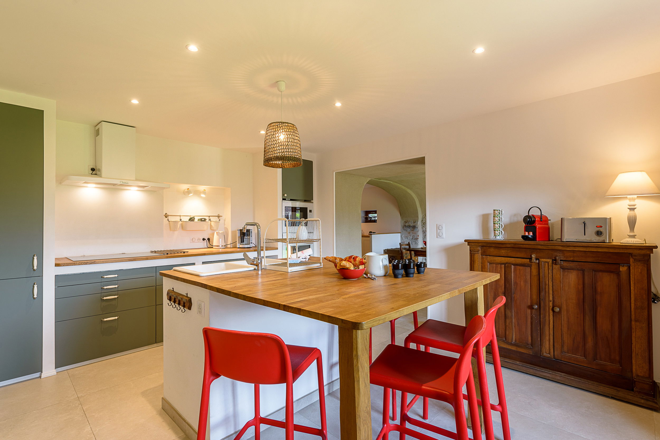 - A spacious independent kitchen fully equipped with central kitchen furniture (induction cooker, oven, microwaves, Nespresso coffee machine, filter coffee machine, dishes, glassware...) and direct access to the garden