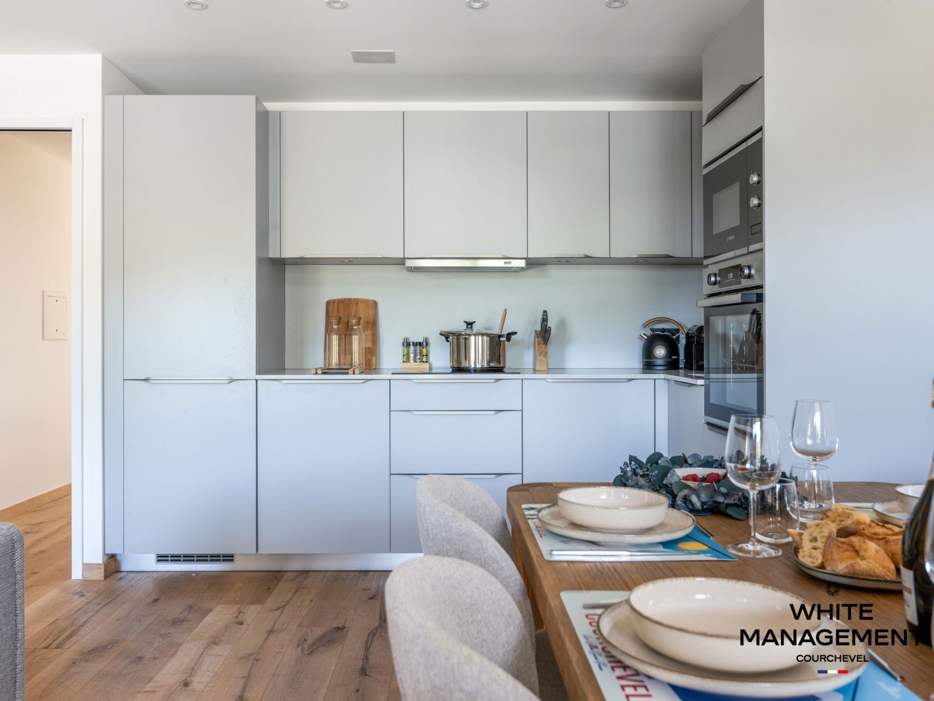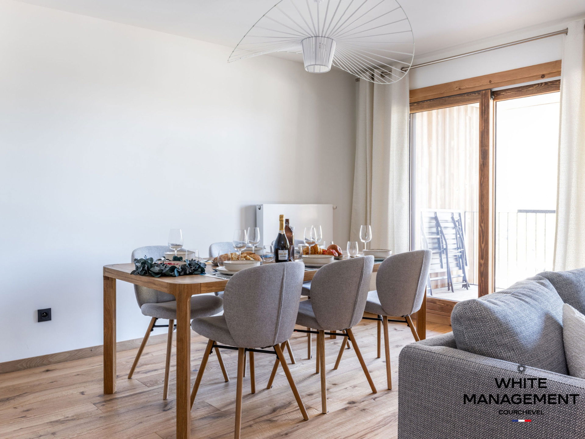 With a surface area of 70 sqm and comfortably accommodating 4 adults and 2 children, this apartment will seduce you for sure! Located on the 2nd floor without lift of the family Campanule residence, you will appreciate the quick access to the Petit Moriond free gondola, located just a few meters from the exit of the skiroom. Composed of a large living room and a sleeping area with 3 large bedrooms, including one en-suite, and an additional bathroom, this property with refined mountain decoration is perfect for family holidays.