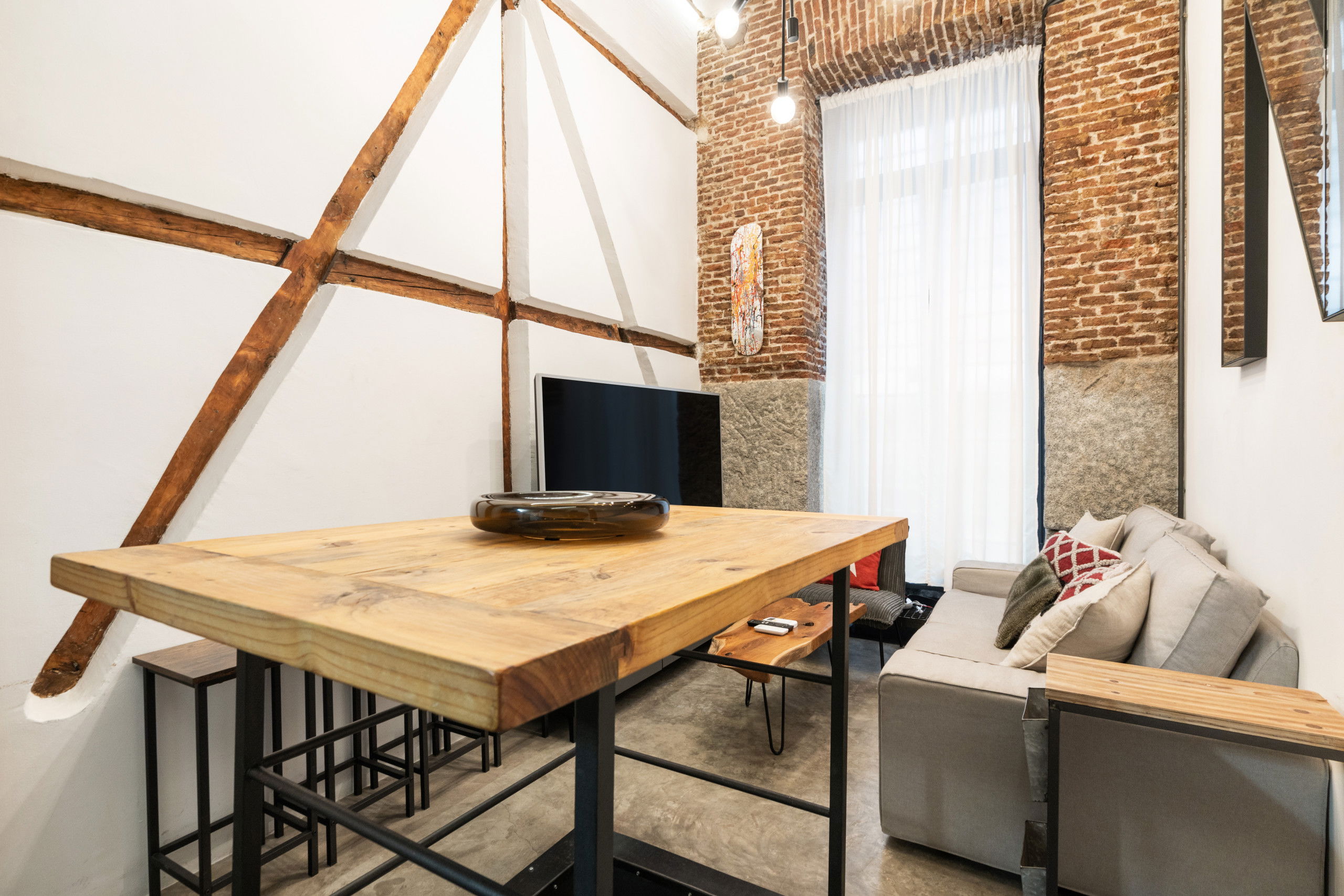 Industrial style: The apartment features an industrial-style decor that gives it a modern and elegant touch.