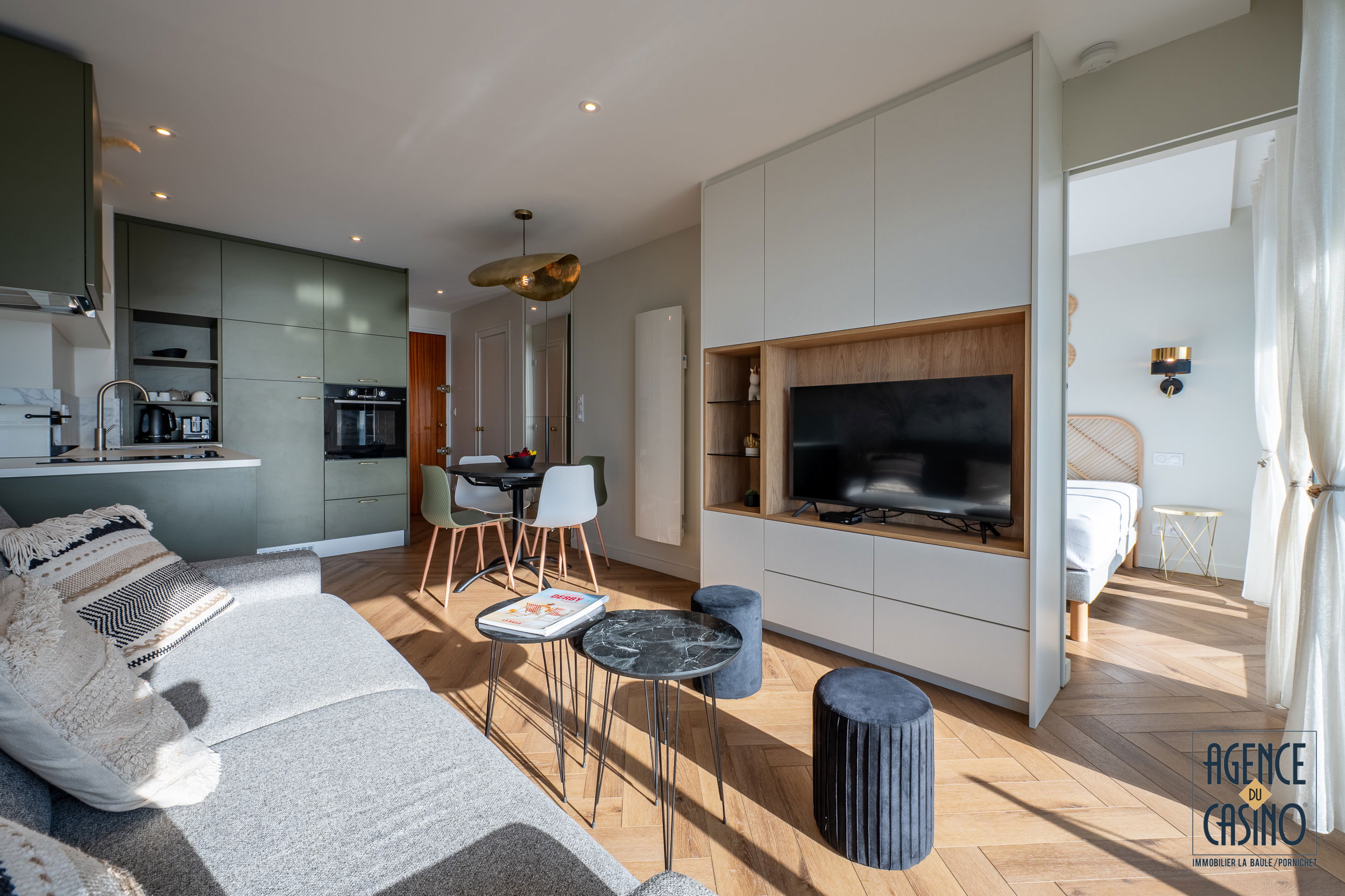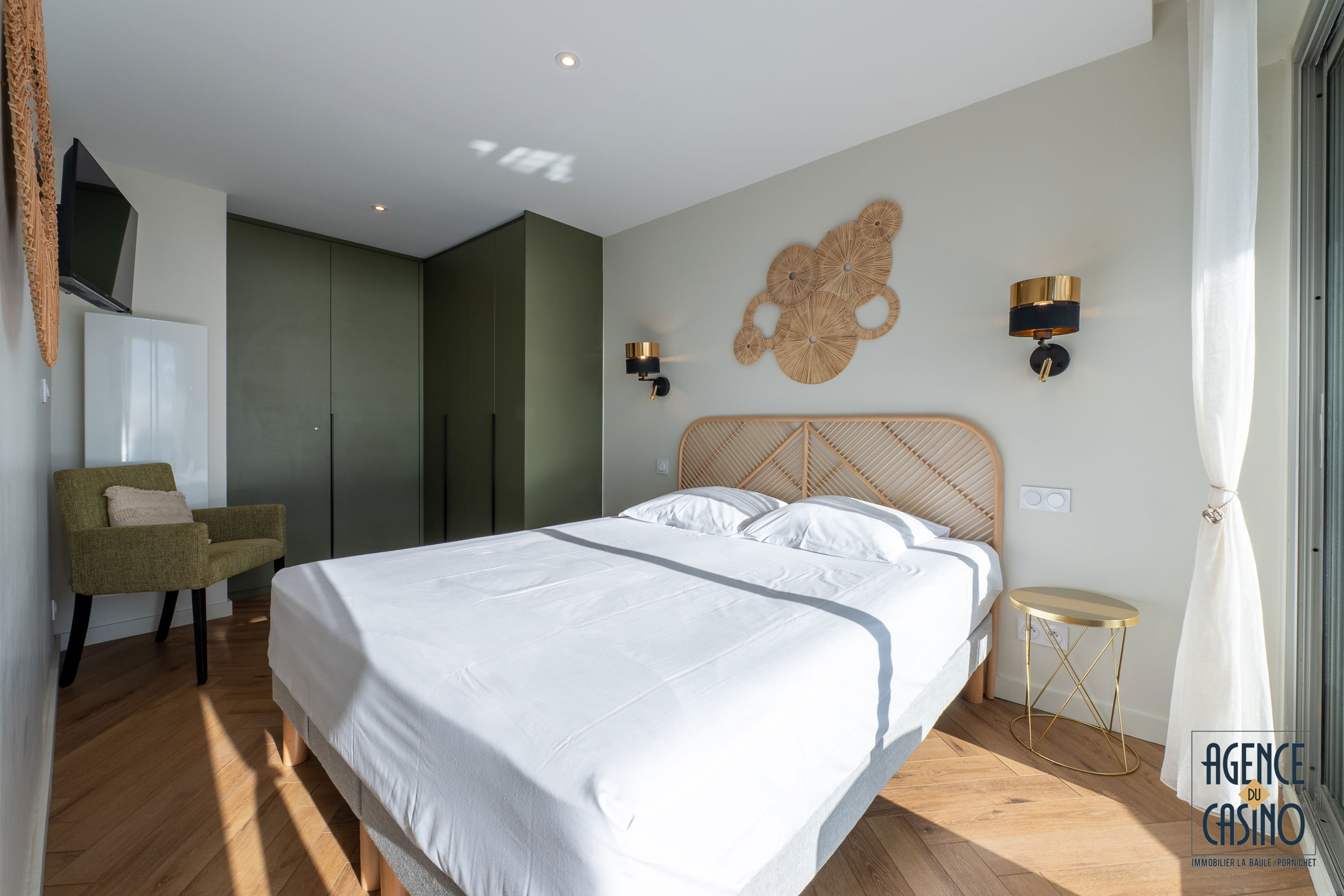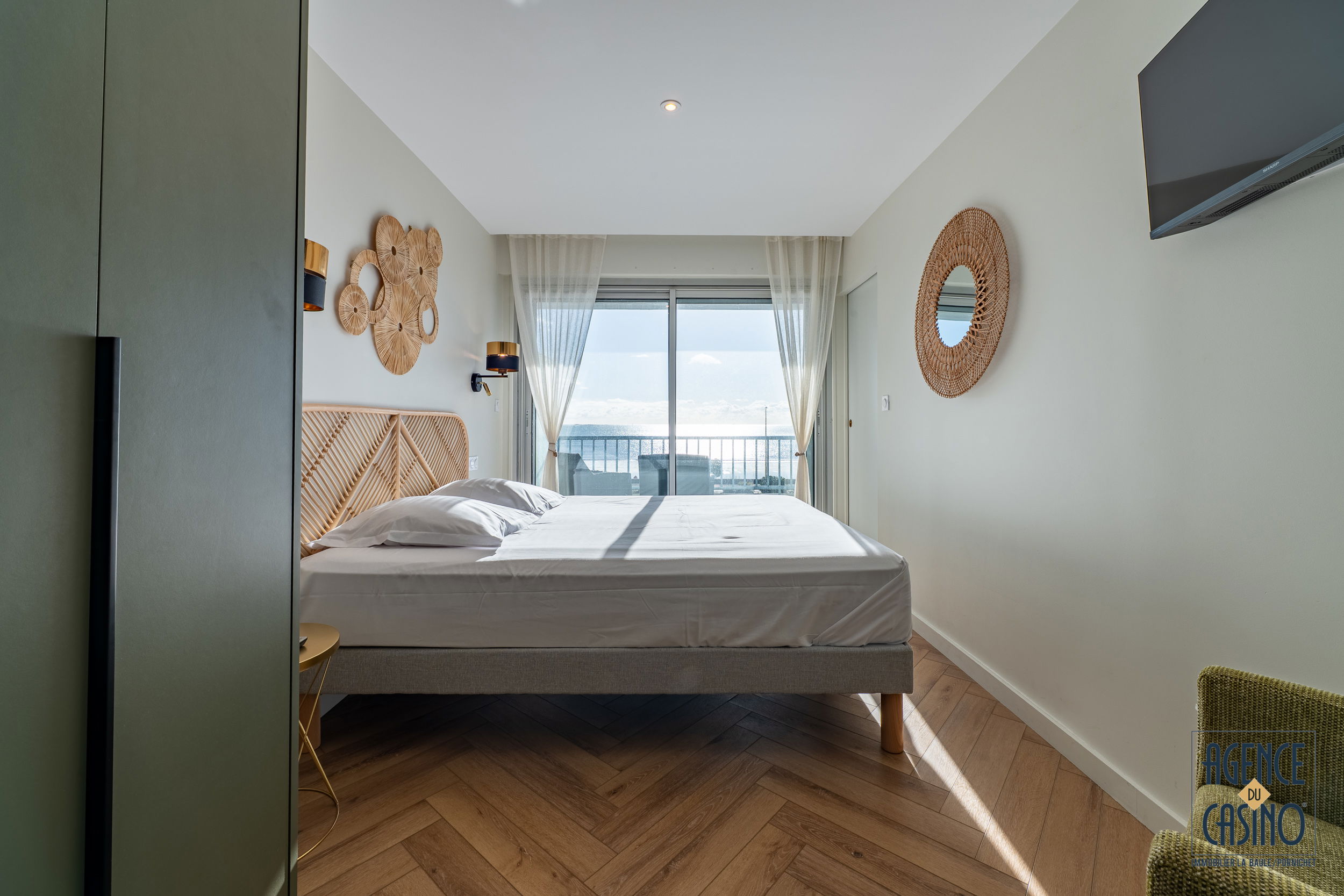 Ideally located, close to Avenue de Gaulle (main shopping avenue), the market and the beach, this fully renovated apartment offering great amenities will be perfect for a stay in La Baule. Entrance with storage (washing machine) and cupboard/wardrobe - Beautiful nicely decorated living room opening onto double terrace facing the sea (sofa bed 160/190, flat screen TV) - Open kitchen with oven, fridge/freezer, microwave , dishwasher for 6 place settings, 2-burner hob, extractor, Nespresso - Bedroom facing the sea opening onto the terrace with 160/190 bed, TV, cupboard/wardrobe - Shower room with WC. fiber internet. Free parking at the condominium.