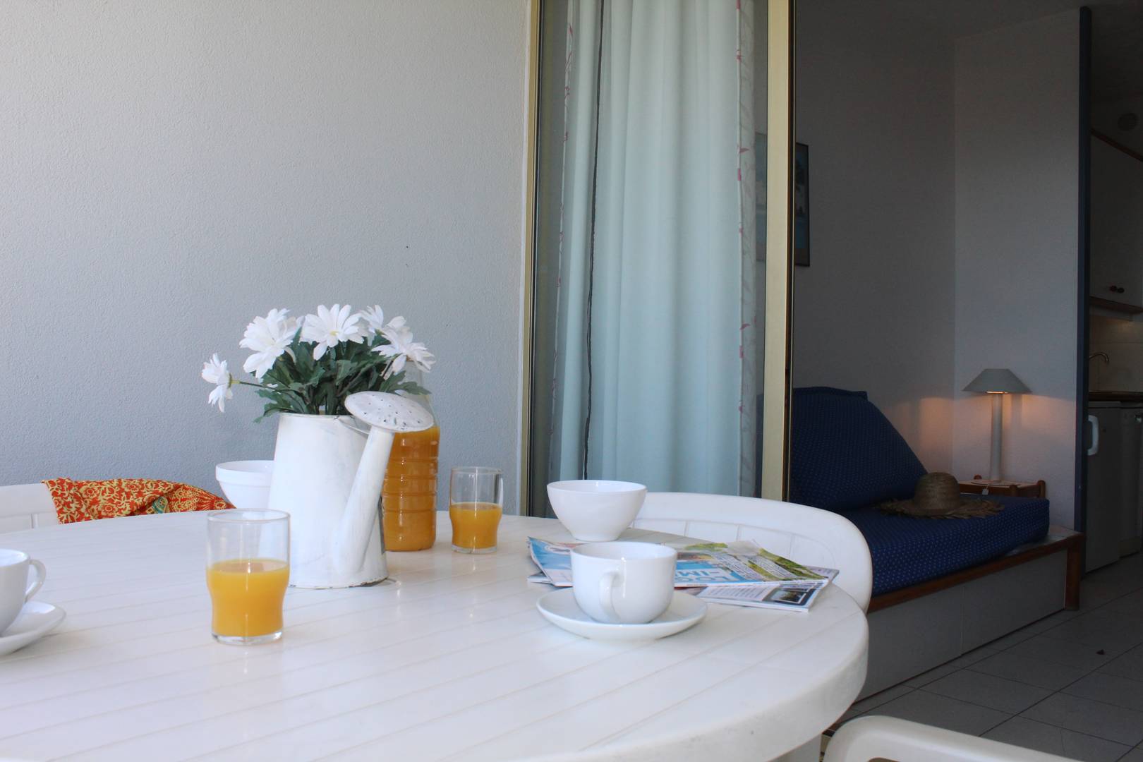 Villeneuve Loubet Plage (06) Le Baronnet Port Marina Baie des Anges Studio of approximately 24 m², 2 beds for up to 4 people. This Studio is located in the Residence Le Baronnet at the edge of the water with a sea view. It is composed at the entrance, a sleeping area with two bunk beds, a bathroom and toilet, in the main room you will find an equipped kitchenette. a washing machine, oven, two-burner hob with its dining area and two sofa beds opening onto a terrace with a view of the sea and gardens. End of stay cleaning included. Most of this accommodation: The apartment is pleasant and has a private parking lot.