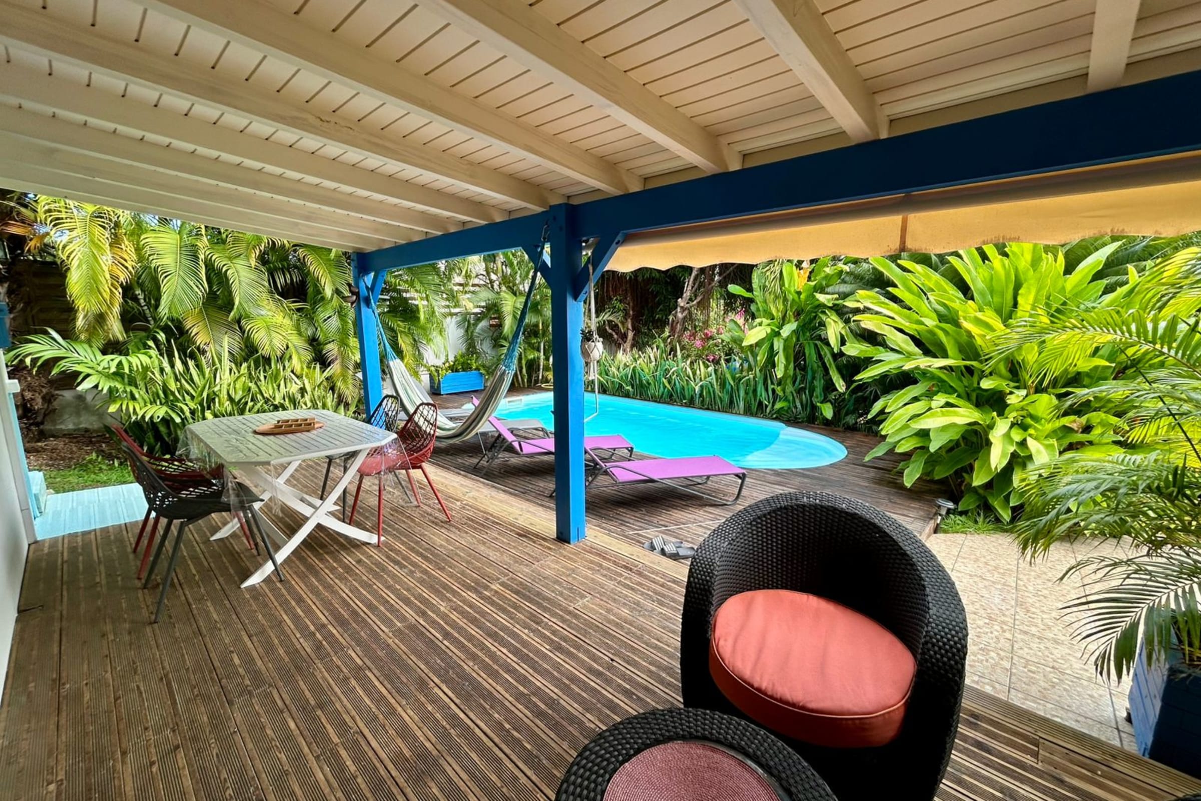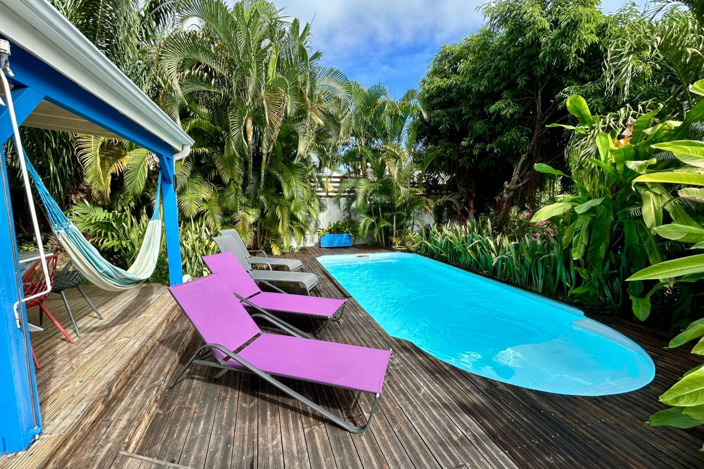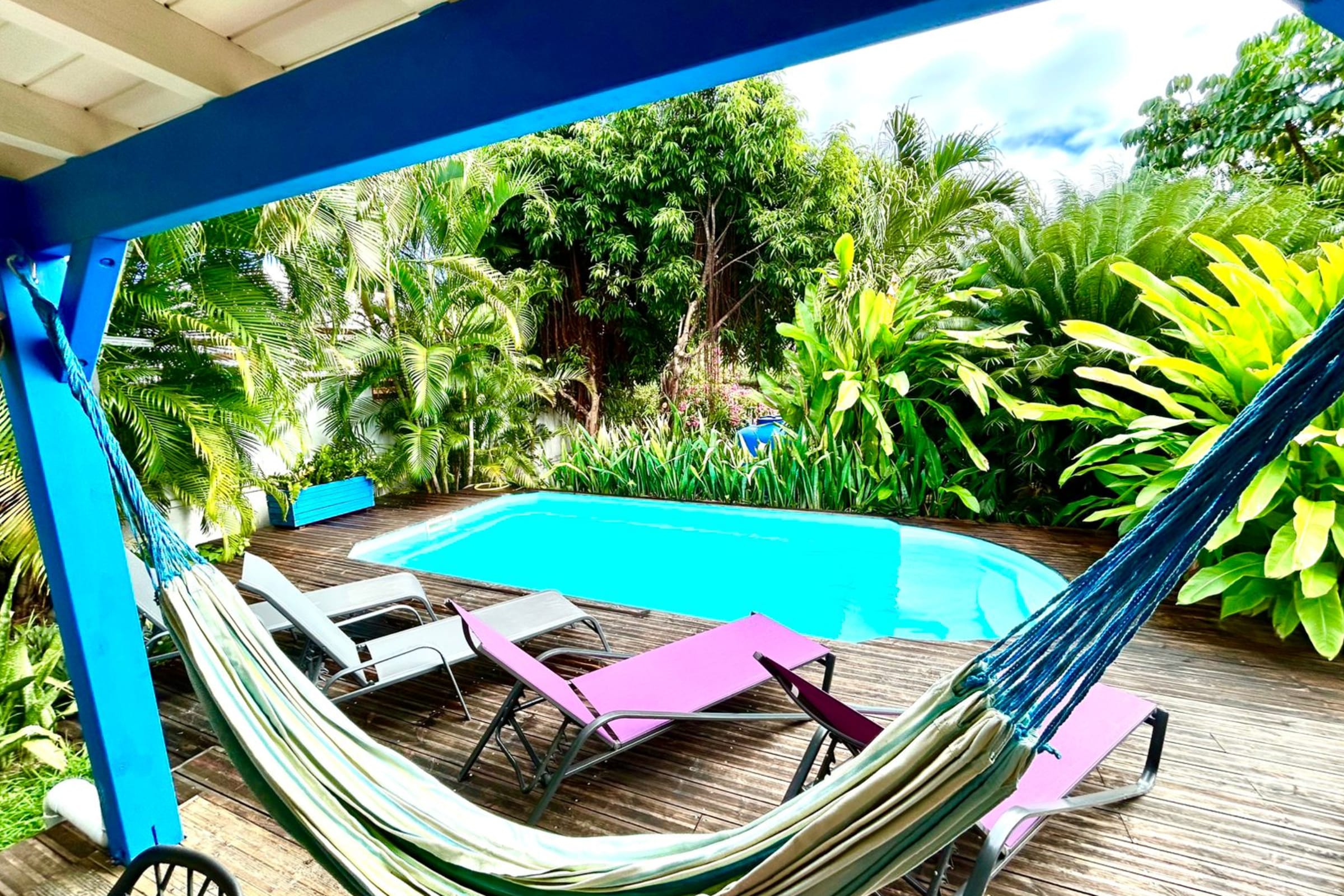 At the end of a somewhat chaotic rural road, you will find the calm of this large house composed of two apartments not overlooked. Frangipagnier is the upper part. A private access, an octagonal swimming pool 3X3 to refresh.