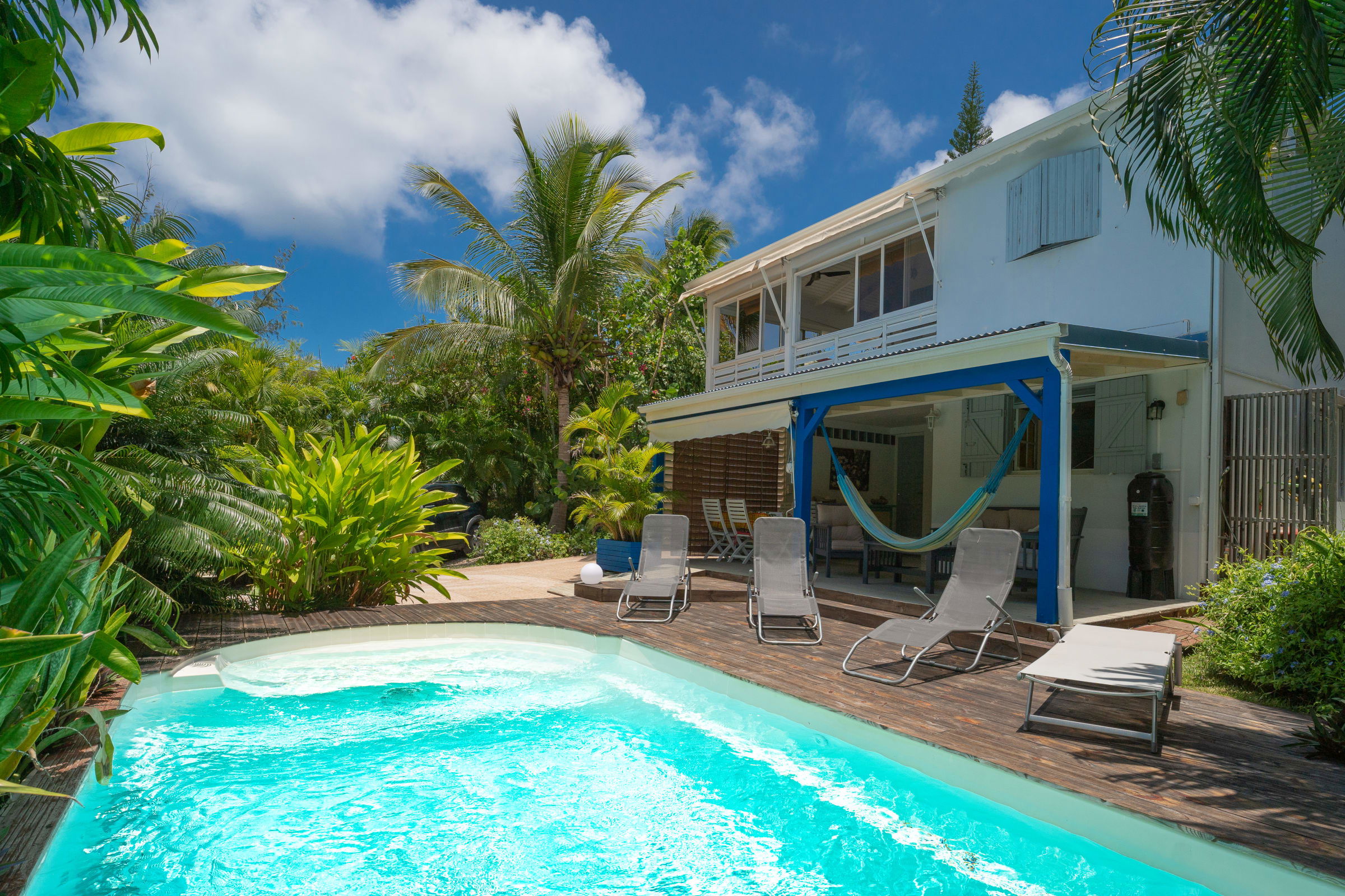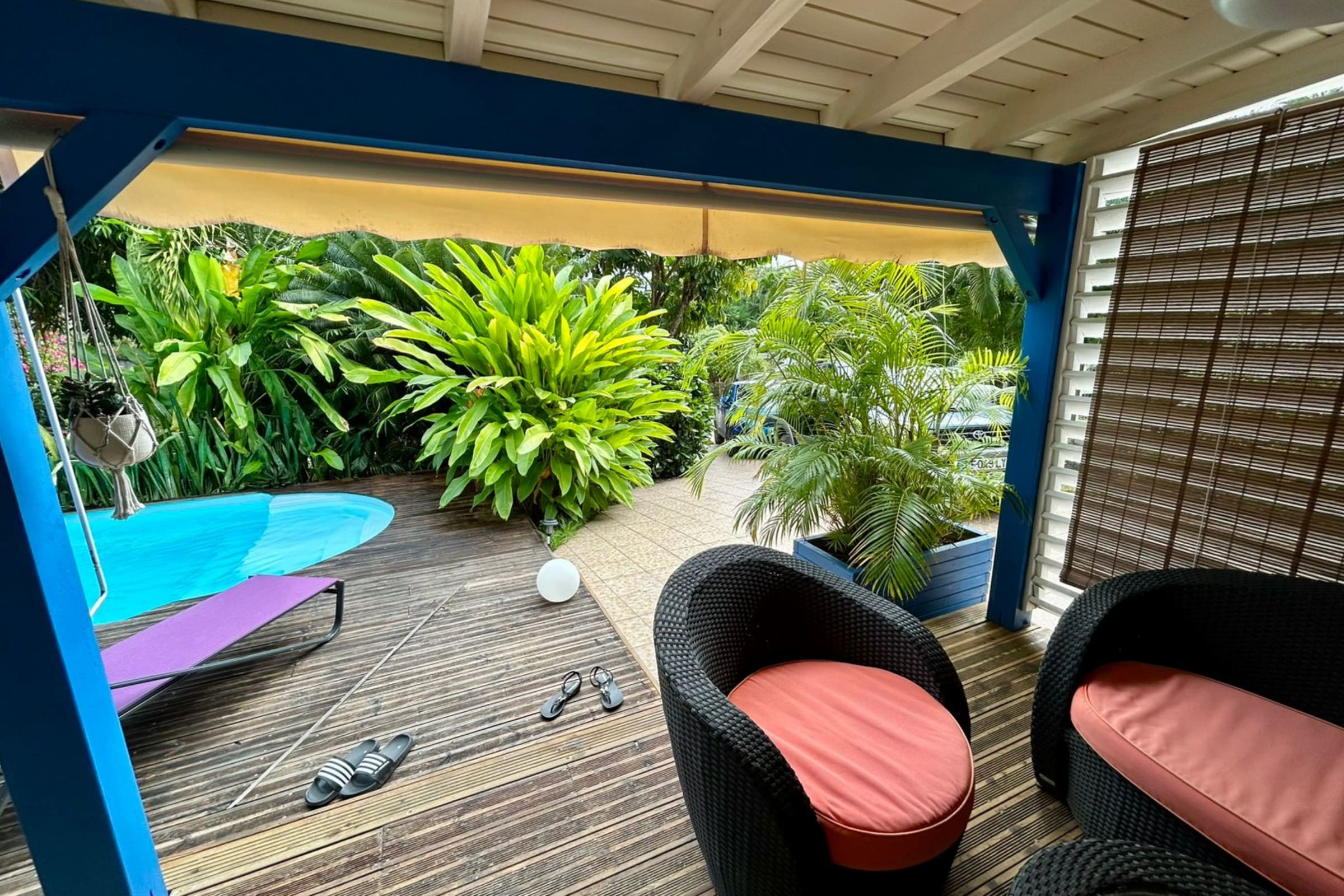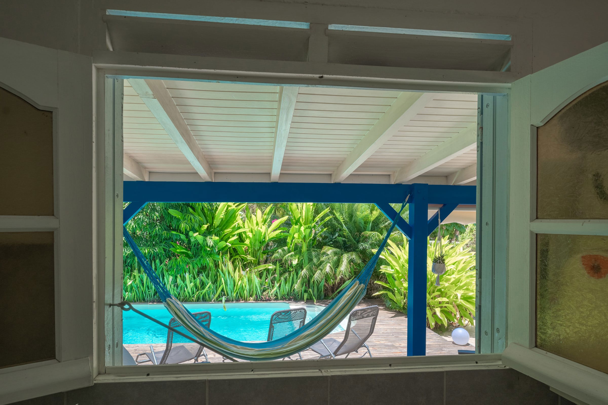 At the end of a somewhat chaotic rural road, you will find the calm of this large house composed of two apartments not overlooked. Frangipagnier is the upper part. A private access, an octagonal swimming pool 3X3 to refresh.