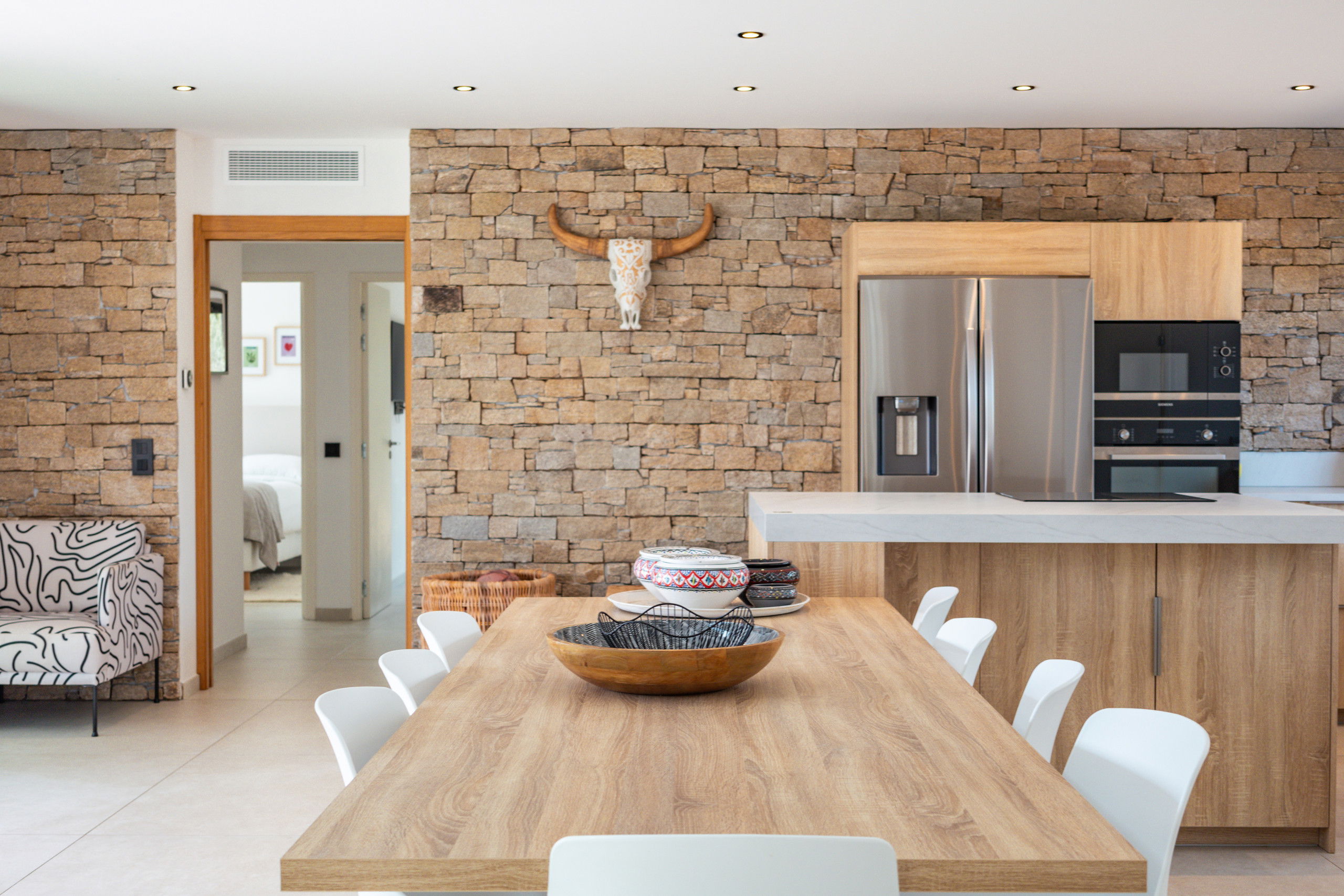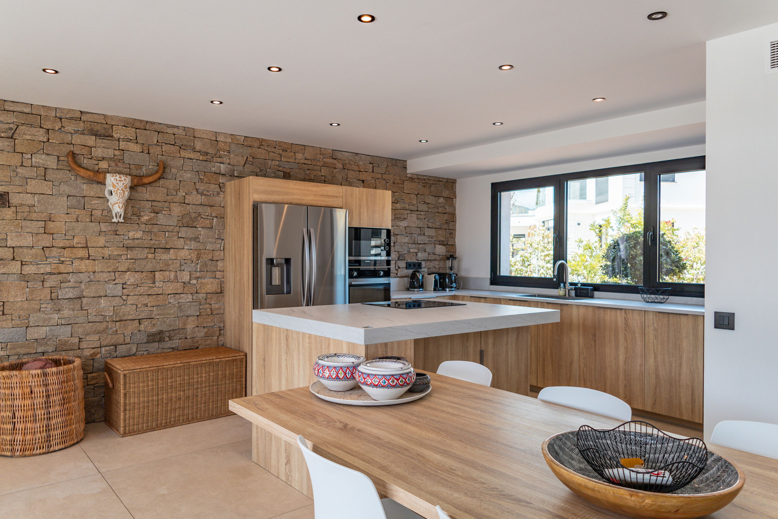 A fully equipped kitchen with oven, microwave, refrigerator, freezer, Nespresso coffee machine, juicer, kettle, blender, dishwasher, ice maker etc.