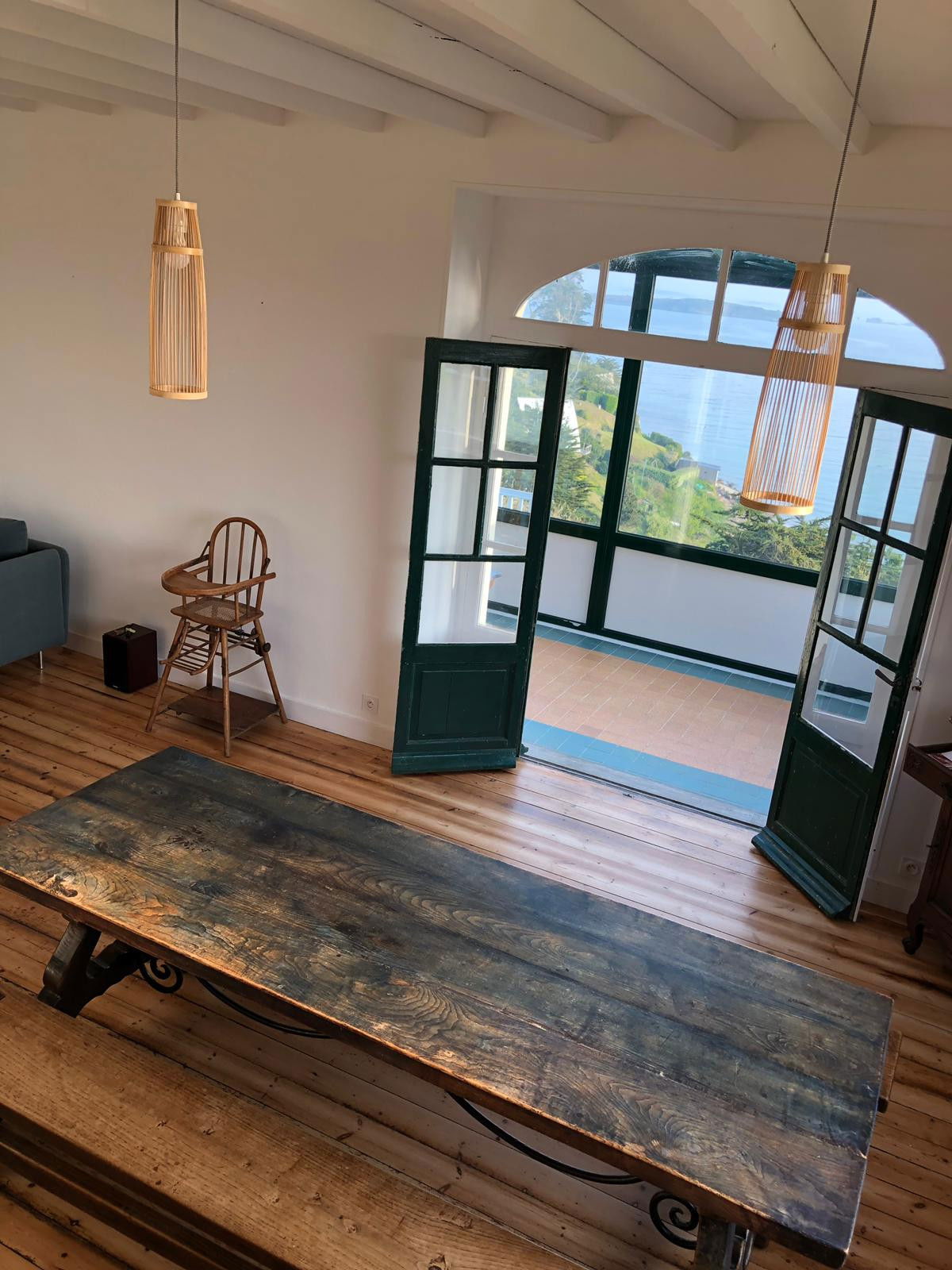Upon entering this house, you step into a large veranda with its magnificent view of the Aber Benoit. From this veranda, you then access a large, cosy, comfortable and bright living room, with this sea view always predominant.