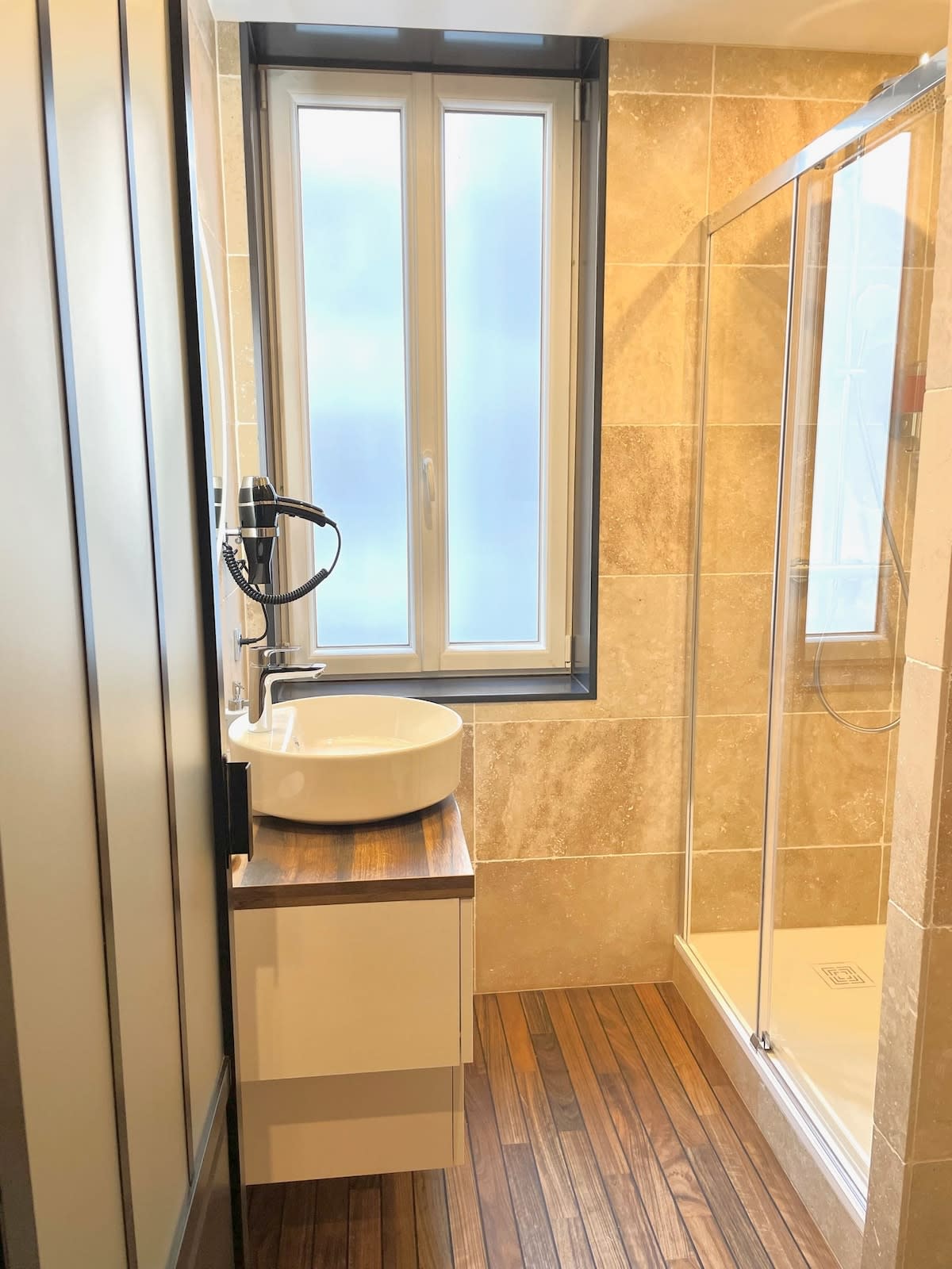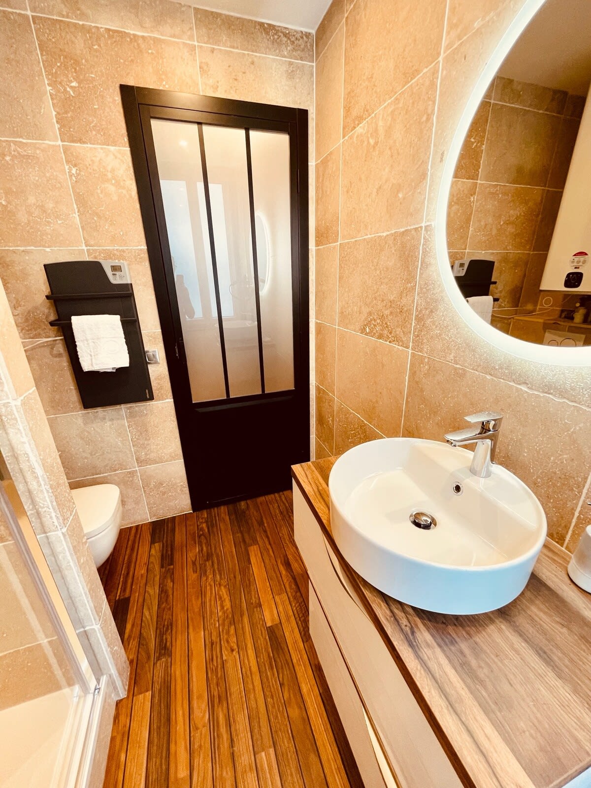 La salle d’eau est équipée d’une douche à l'italienne avec toilettes.