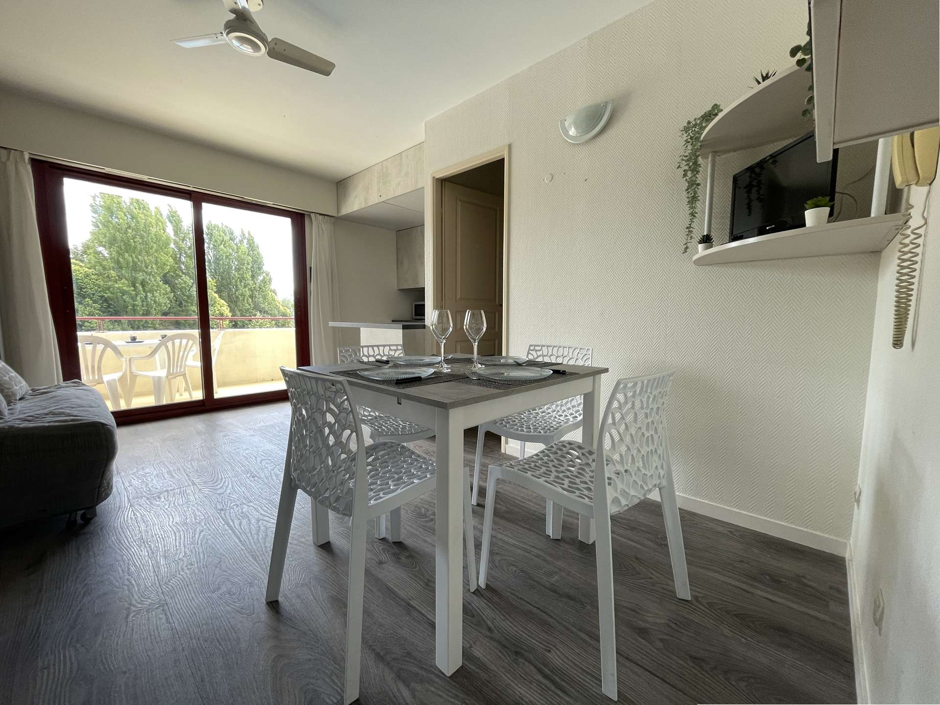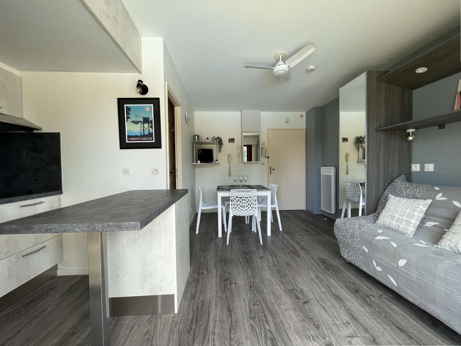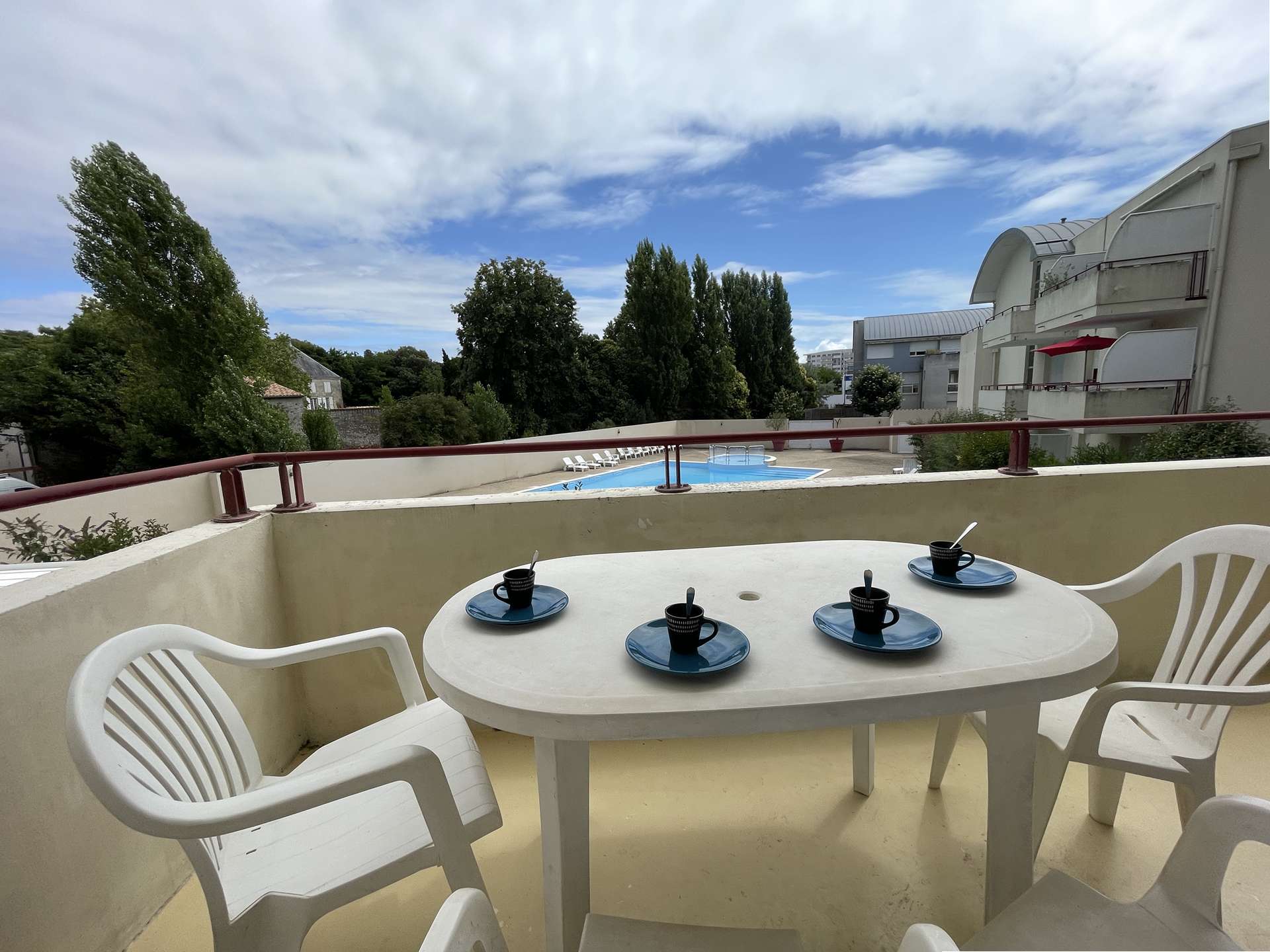 La Rochelle (17) - Les Minimes - Résidence La Rochelière 2 Apartment 2 people - approx. 31 m² - up to 4 people This holiday apartment is located in the heart of Les Minimes, near the marina. The residence is secure and offers many comfort services: Swimming pool July / August, laundry, parking in the basement. On the 1st floor of a residence, the apartment consists of a living room opening onto a south-facing balcony with a breathtaking view of the residence's swimming pool. In the living room, a 2-seater sofa bed, a bedroom with a 140 bed, an equipped kitchen area refurbished in 2023, a shower room and a separate WC. The advantages of this seaside rental: South balcony, July/August swimming pool subject to climatic and sanitary conditions, laundry, private parking, secure residence, close to the beach and the port of Les Minimes. Public transport nearby. Cleaning with disinfection included.