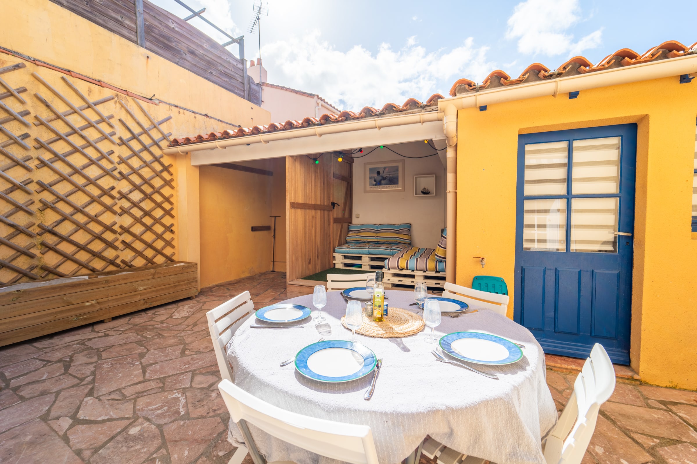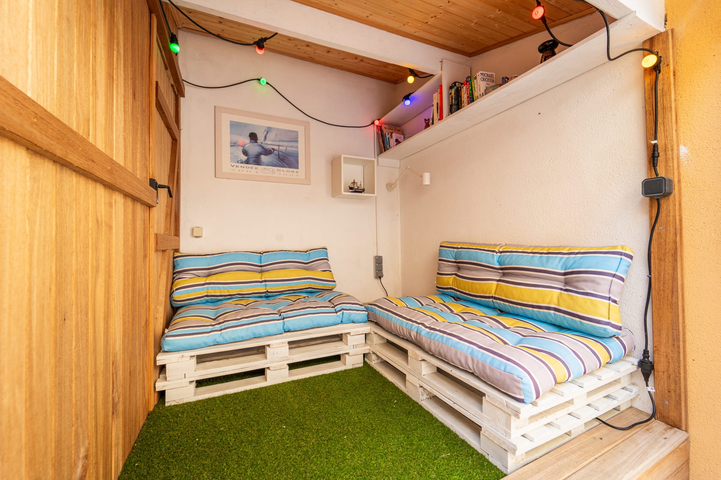 At the entrance, you have an outdoor courtyard with an alcove fitted out with a lounge, perfect for relaxing in the shade.