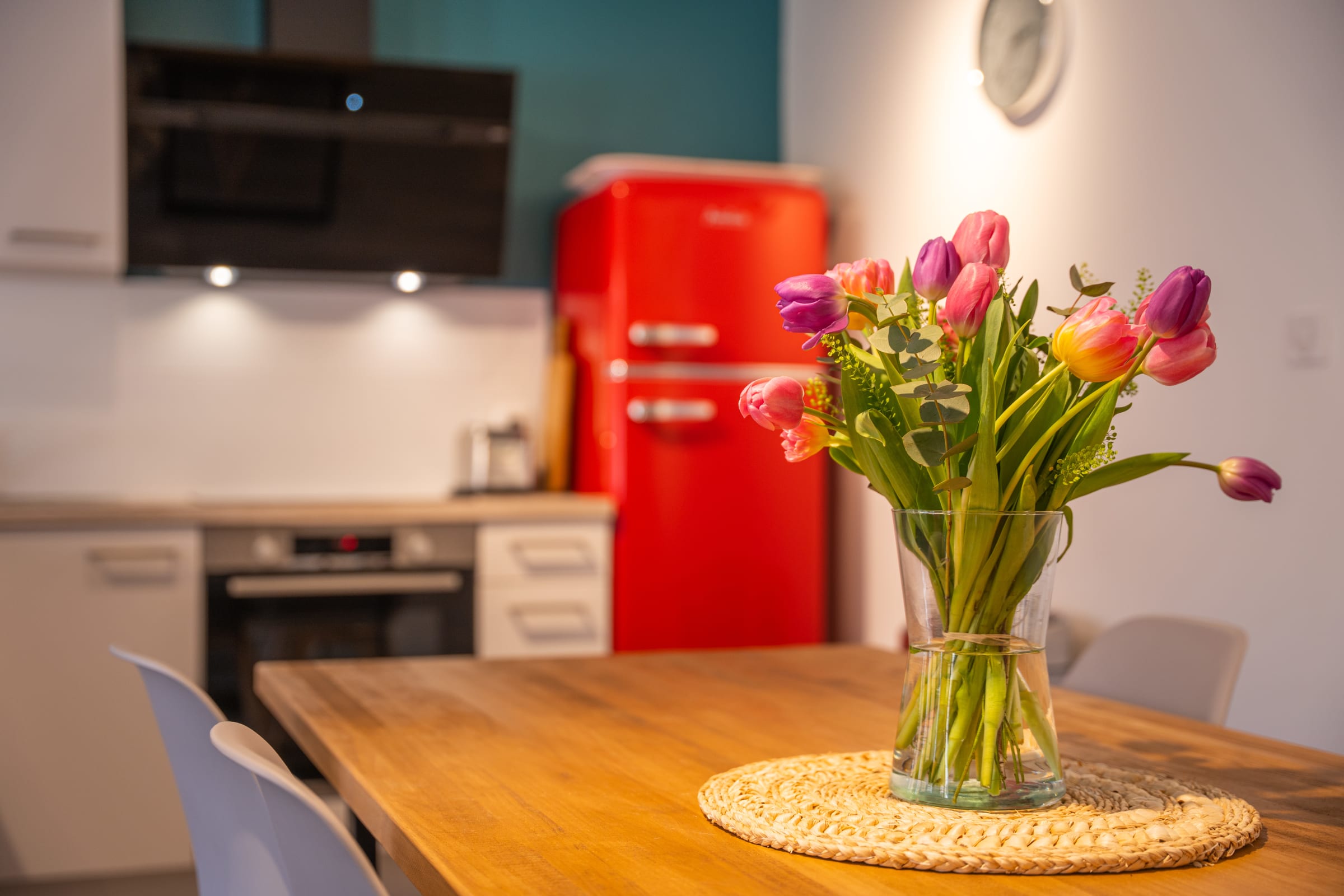 - a fitted and equipped kitchen with oven, microwave, induction hob, filter coffee maker and Nespresso, fridge, freezer and a dishwasher.