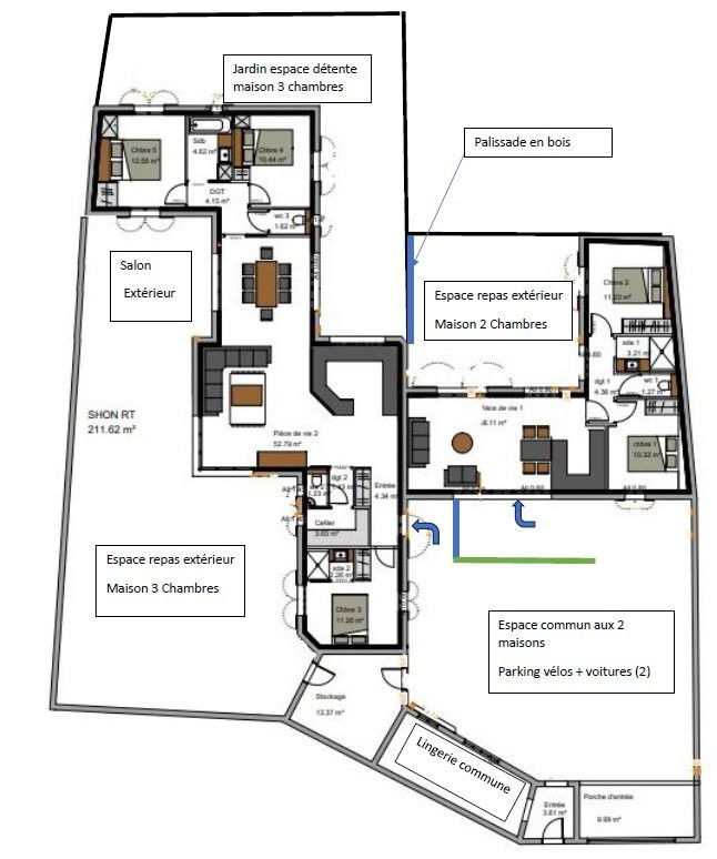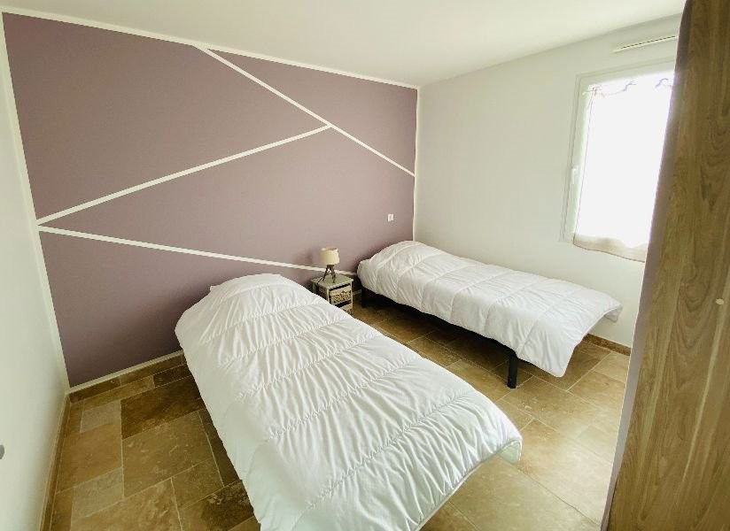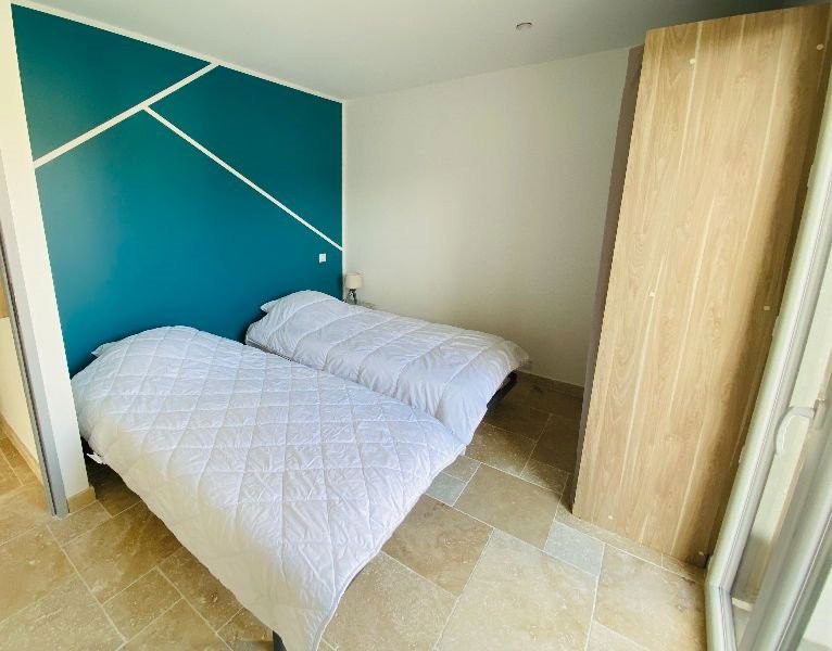 The house offers three bedrooms including a master suite with bathroom, a double bedroom, a bedroom with two single beds, and a bathroom. The second house offers two bedrooms, including a double bedroom and a bedroom with two single beds.