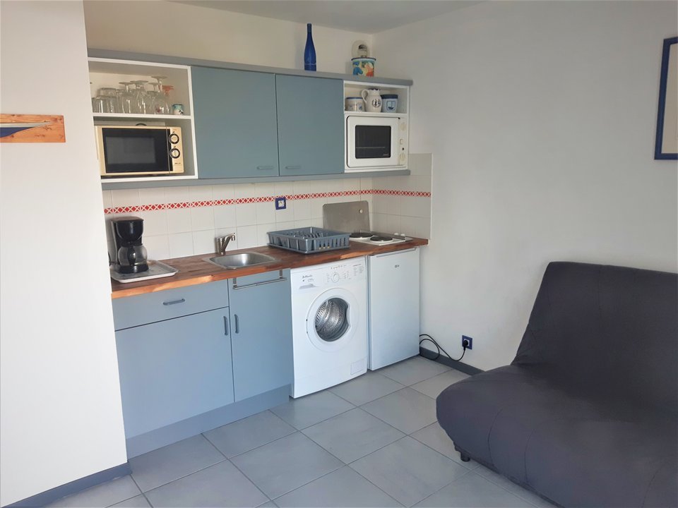 Equipment: Fridge, washing machine, 2 electric hobs, electric oven, microwave oven, filter coffee maker, television, 2 deckchairs