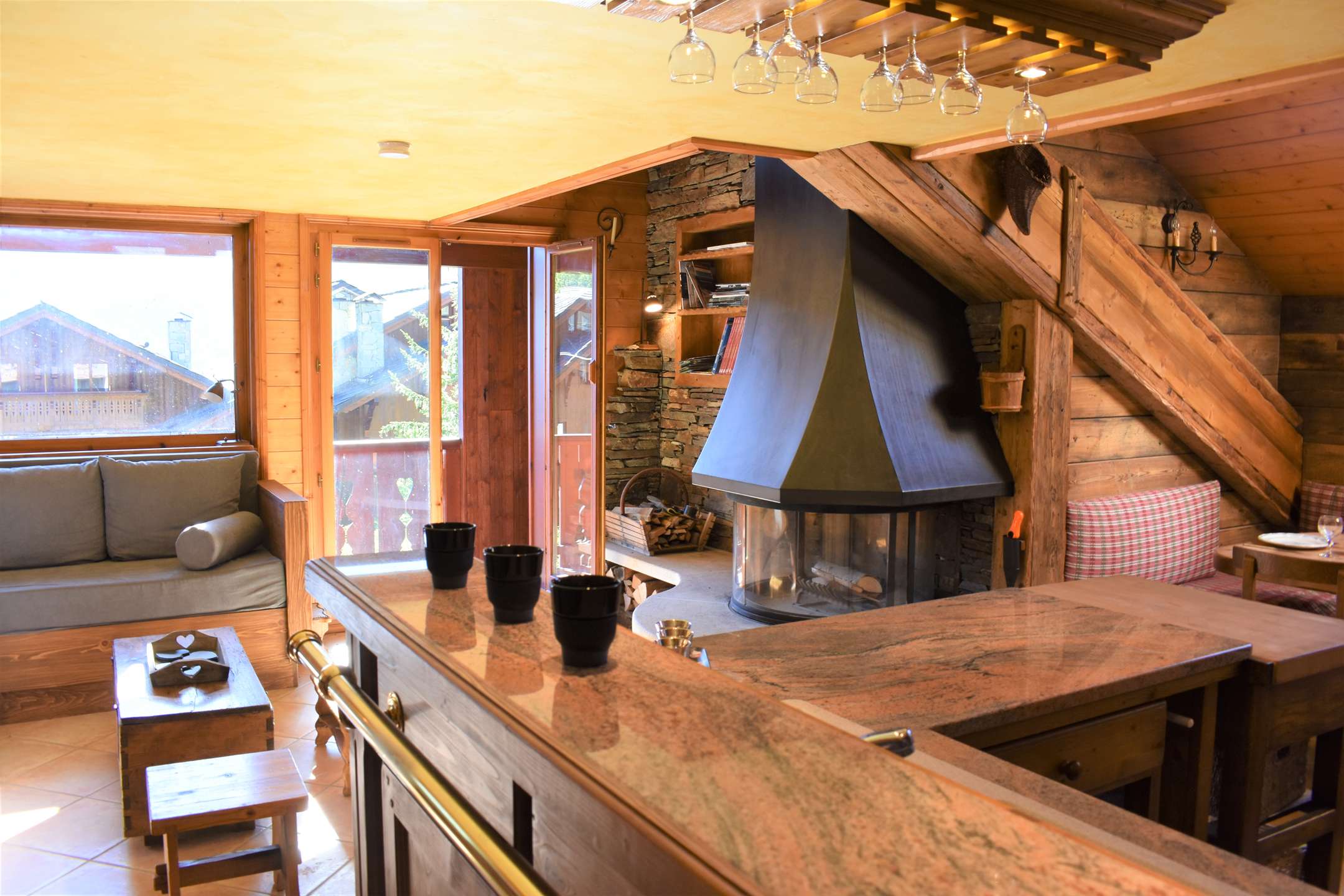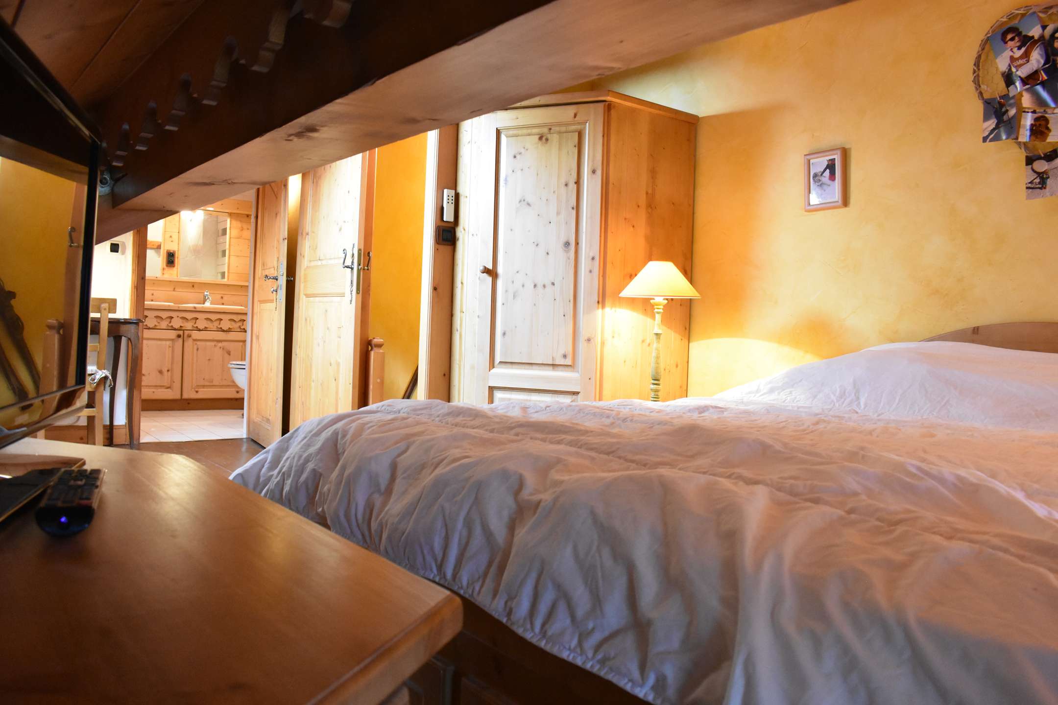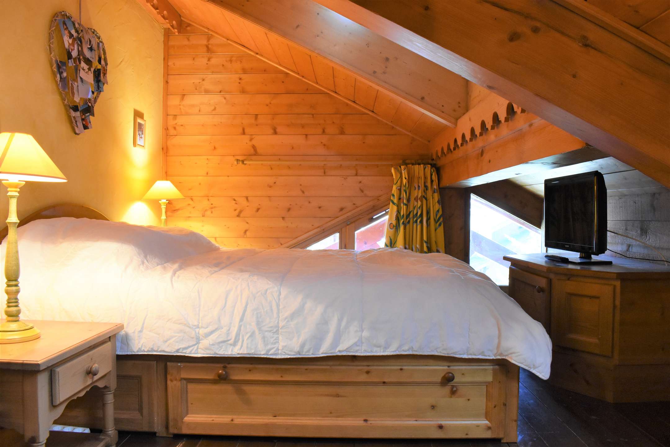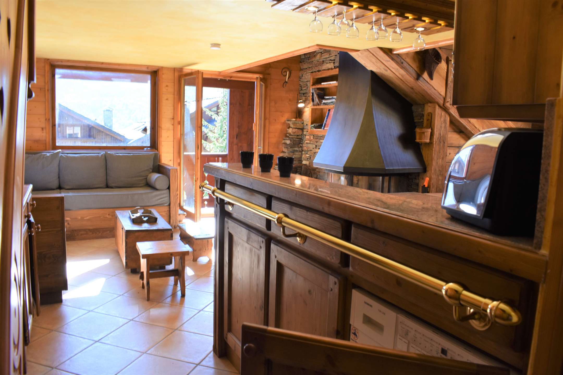 This rental consists of an entrance with an independent toilet with sink and an independent bathroom with double sinks and spa shower, a very pleasant and spacious living room with a kitchen open to the living room with a corner friendly dining and a living room with a corner sofa, a fireplace and a television. It opens onto a south-facing loggia balcony offering you a lovely view of the mountains, the Lapin slope and the village. The kitchen is equipped with 4 induction burners, an extractor hood, a traditional oven, a microwave, a dishwasher, a refrigerator, a washer-dryer, a Nexpresso coffee maker, kettle and toaster. It has a bedroom on the ground floor of the apartment with 1 160 cm double bed and 1 bedroom on the very sloping floor with 1 160 cm double bed, a television, an office area and an adjoining bathroom. with jacuzzi bath, double sinks and toilet.
