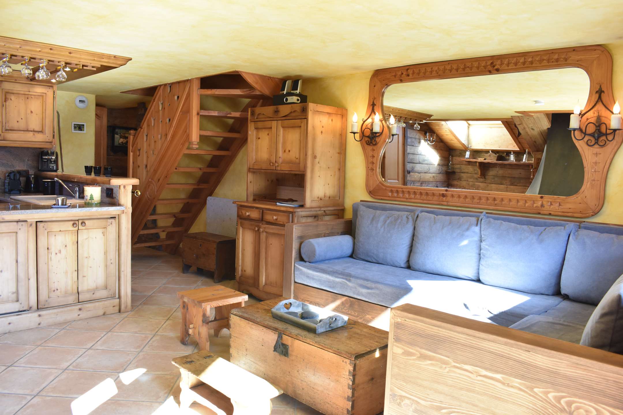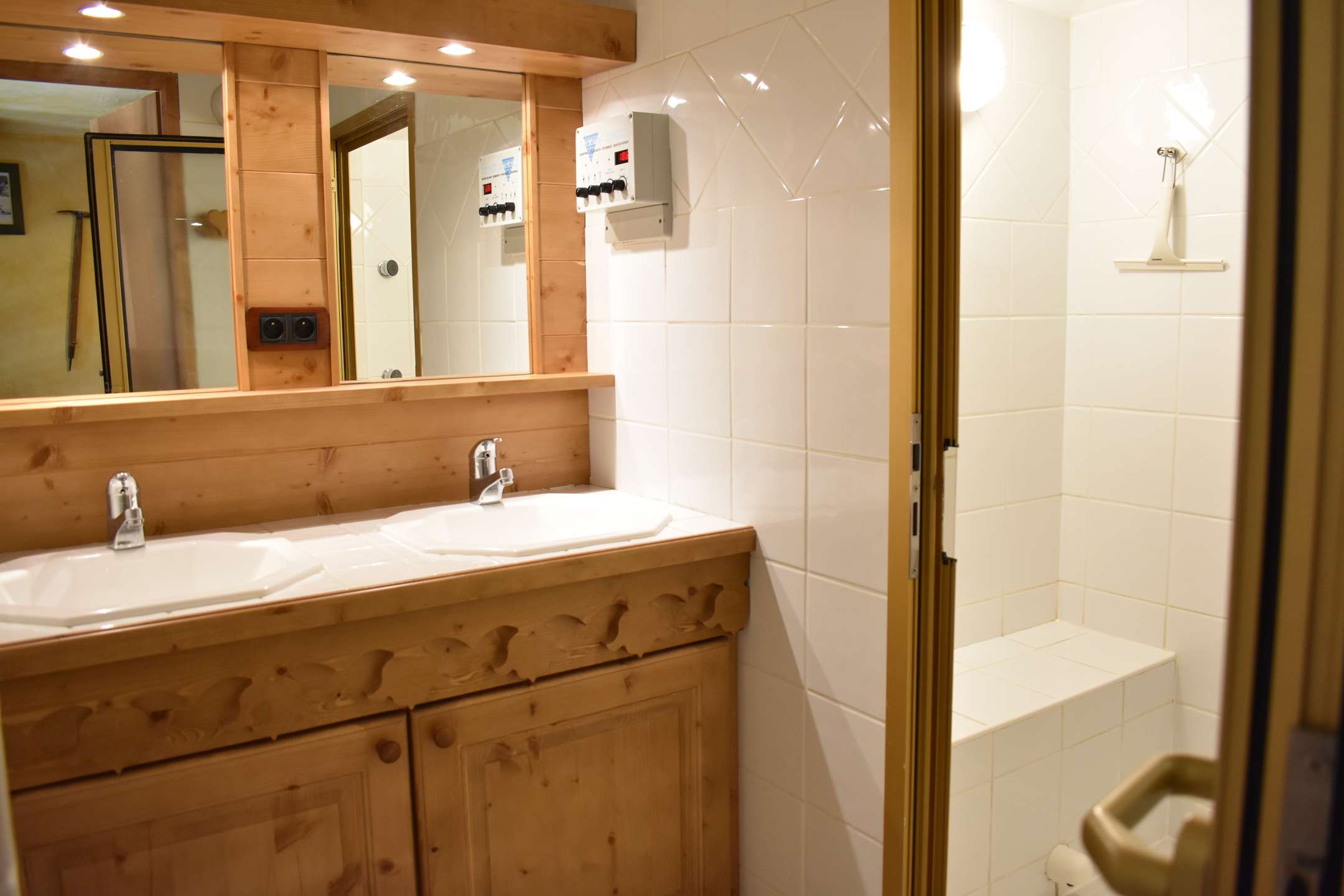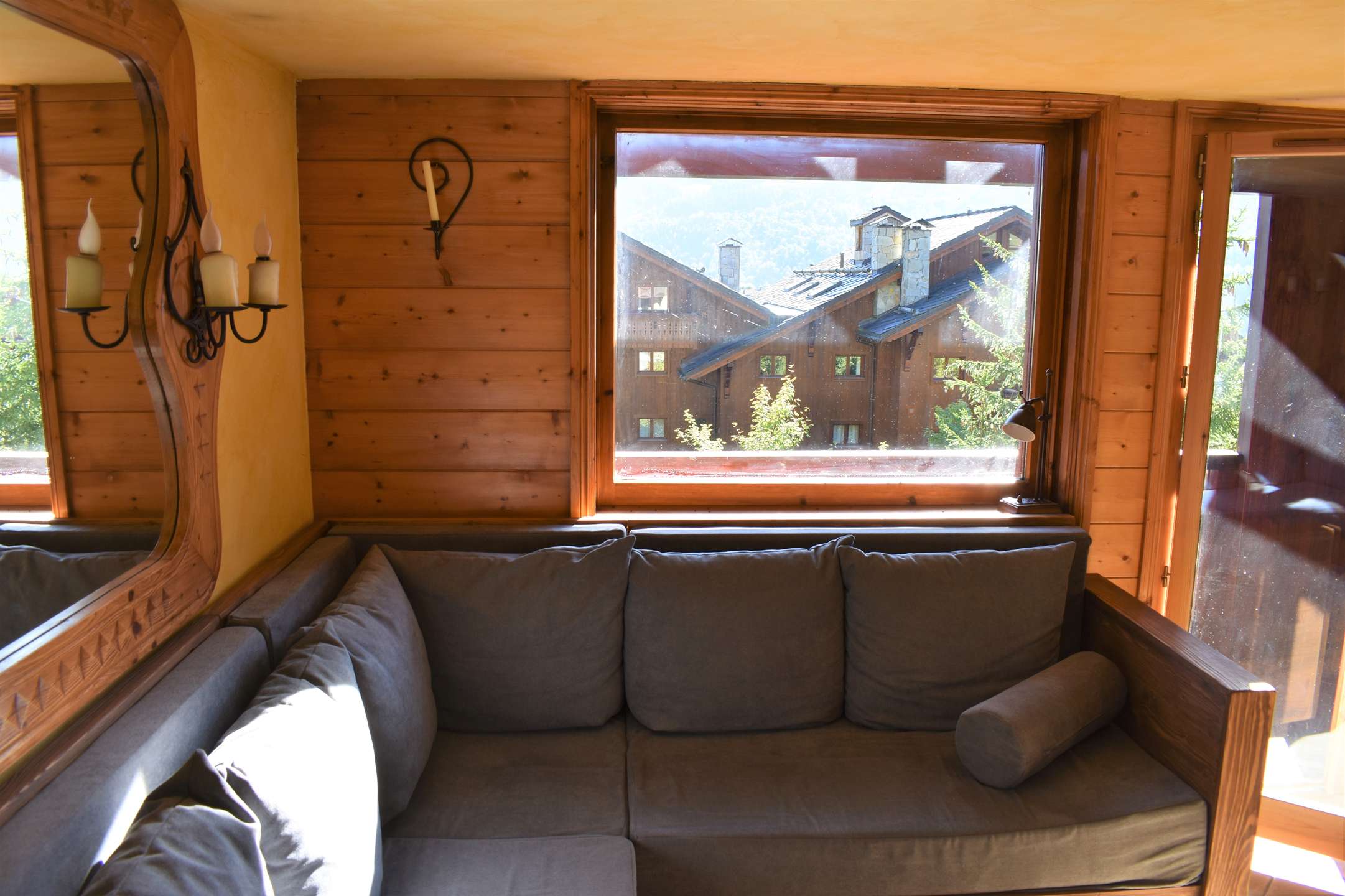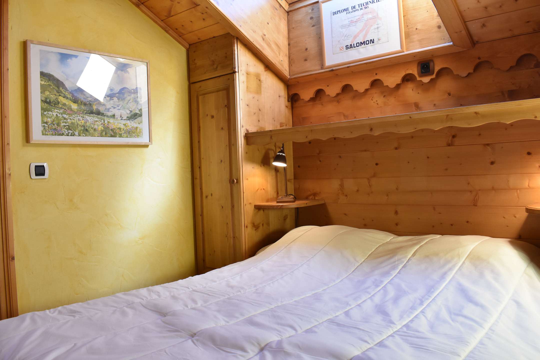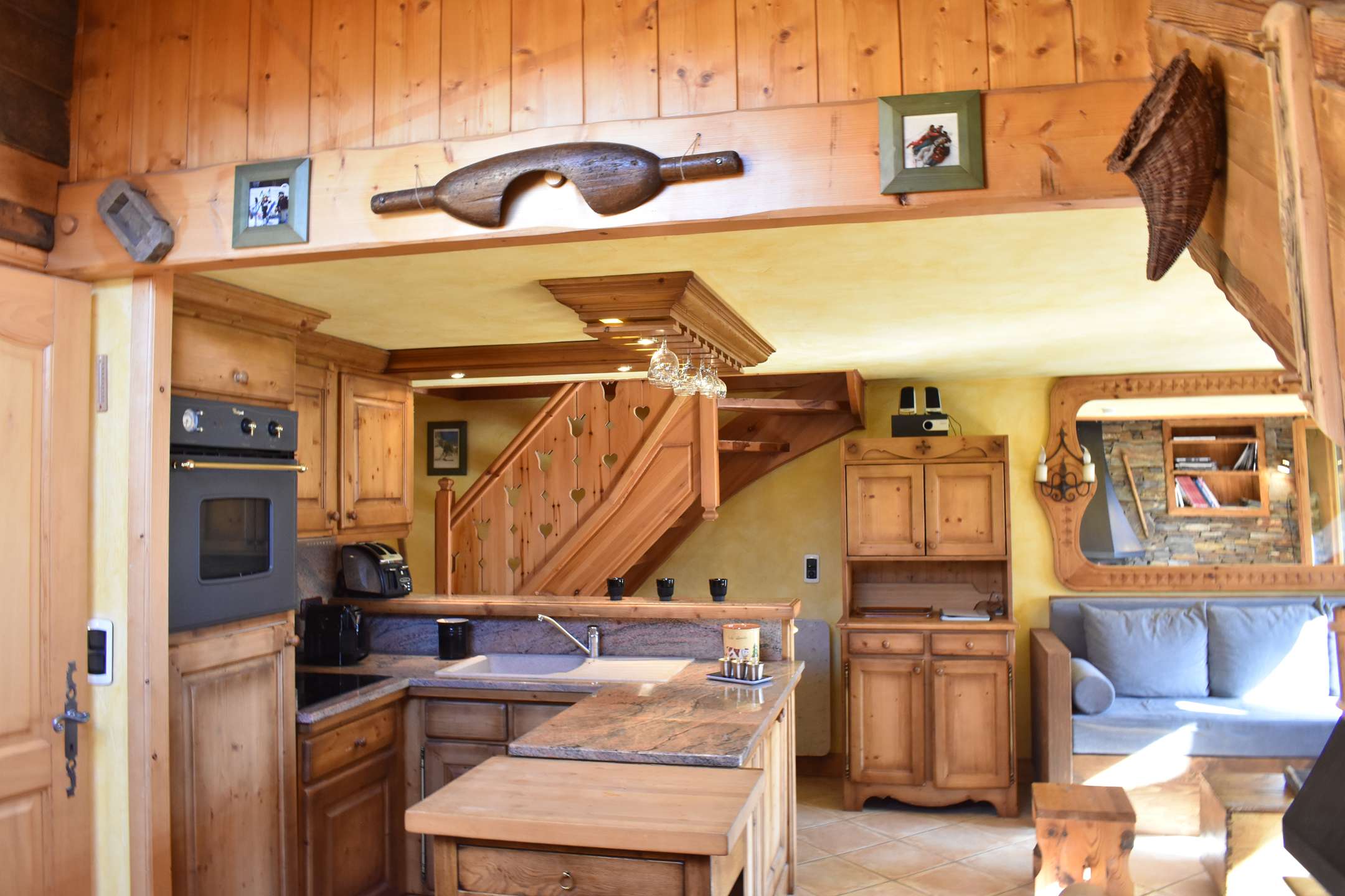 This rental consists of an entrance with an independent toilet with sink and an independent bathroom with double sinks and spa shower, a very pleasant and spacious living room with a kitchen open to the living room with a corner friendly dining and a living room with a corner sofa, a fireplace and a television. It opens onto a south-facing loggia balcony offering you a lovely view of the mountains, the Lapin slope and the village. The kitchen is equipped with 4 induction burners, an extractor hood, a traditional oven, a microwave, a dishwasher, a refrigerator, a washer-dryer, a Nexpresso coffee maker, kettle and toaster. It has a bedroom on the ground floor of the apartment with 1 160 cm double bed and 1 bedroom on the very sloping floor with 1 160 cm double bed, a television, an office area and an adjoining bathroom. with jacuzzi bath, double sinks and toilet.