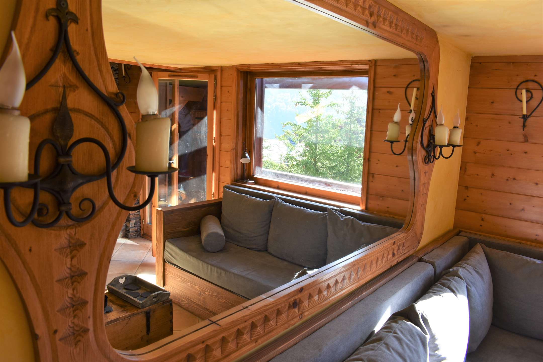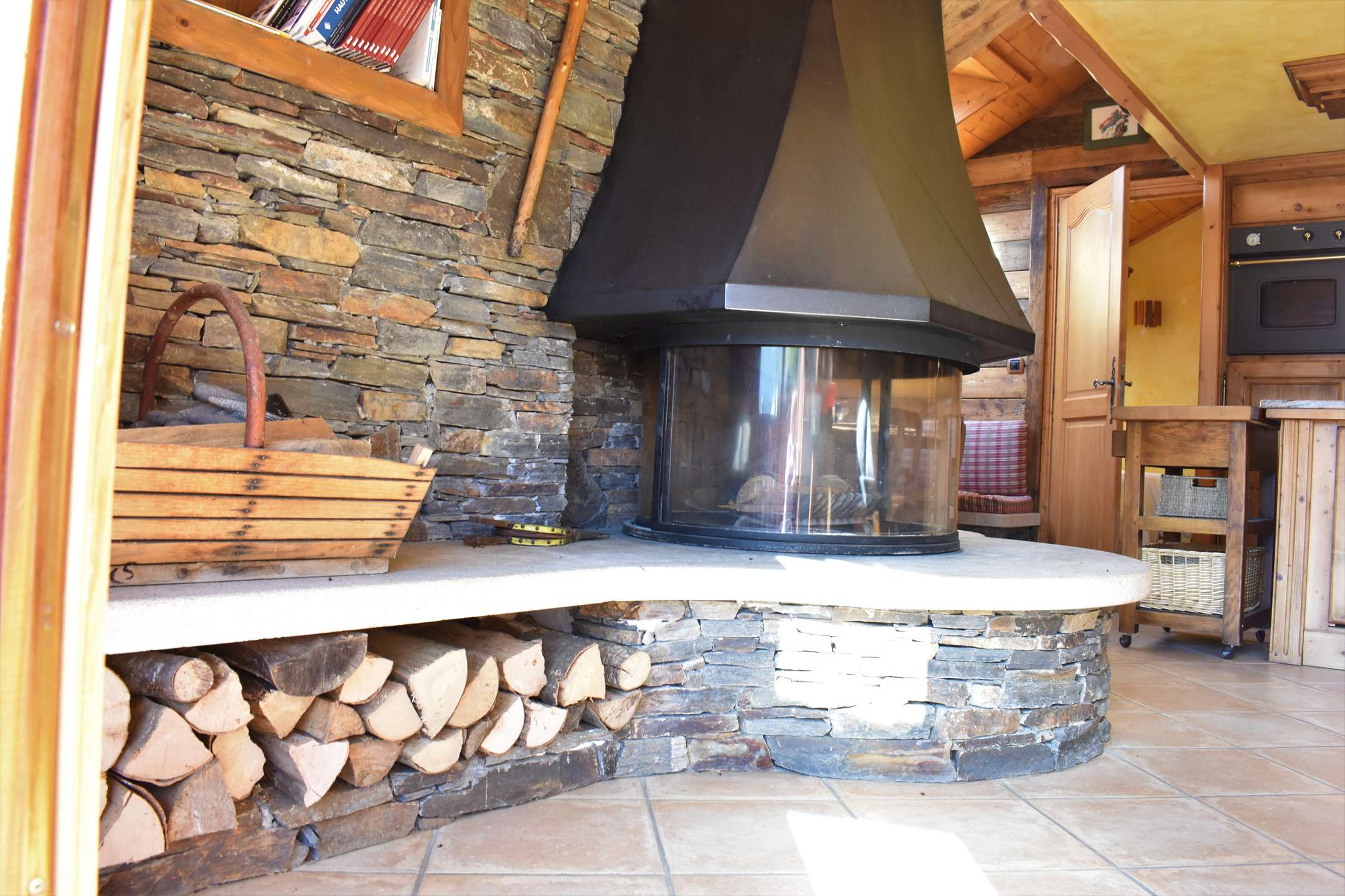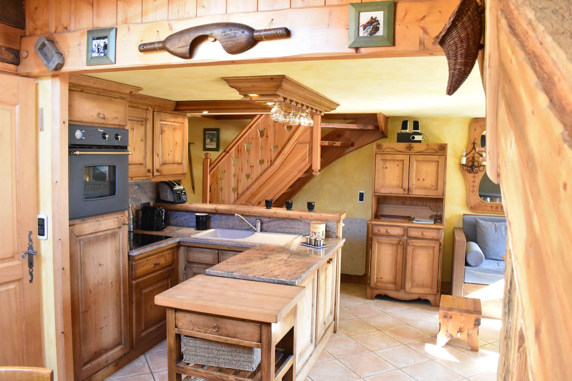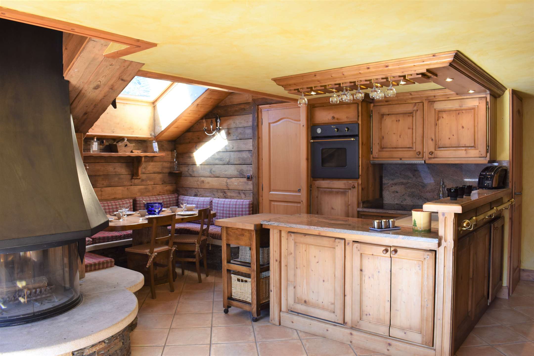 This rental consists of an entrance with an independent toilet with sink and an independent bathroom with double sinks and spa shower, a very pleasant and spacious living room with a kitchen open to the living room with a corner friendly dining and a living room with a corner sofa, a fireplace and a television. It opens onto a south-facing loggia balcony offering you a lovely view of the mountains, the Lapin slope and the village. The kitchen is equipped with 4 induction burners, an extractor hood, a traditional oven, a microwave, a dishwasher, a refrigerator, a washer-dryer, a Nexpresso coffee maker, kettle and toaster. It has a bedroom on the ground floor of the apartment with 1 160 cm double bed and 1 bedroom on the very sloping floor with 1 160 cm double bed, a television, an office area and an adjoining bathroom. with jacuzzi bath, double sinks and toilet.