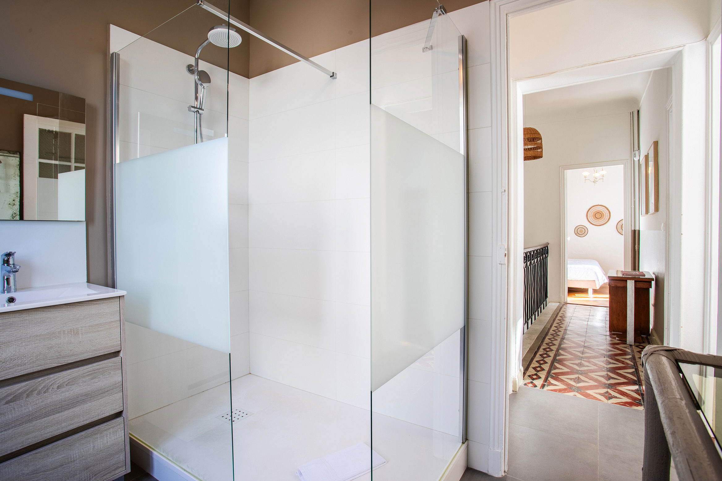 3 bedrooms all overlooking the sea, each with a double bed, a bathroom with shower and 1 separate toilet + 1 other outside on the terrace side
