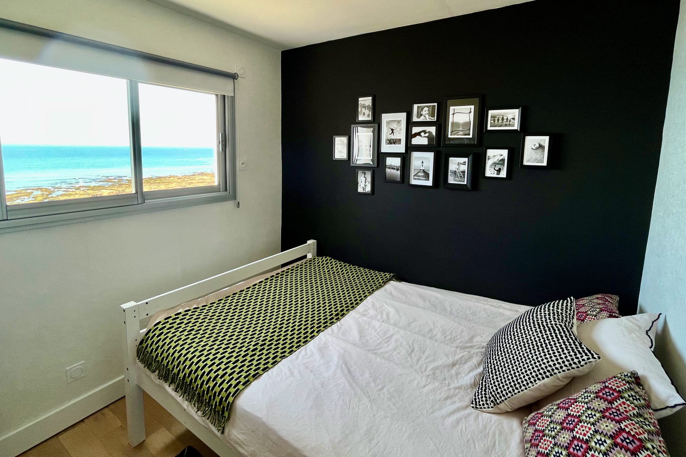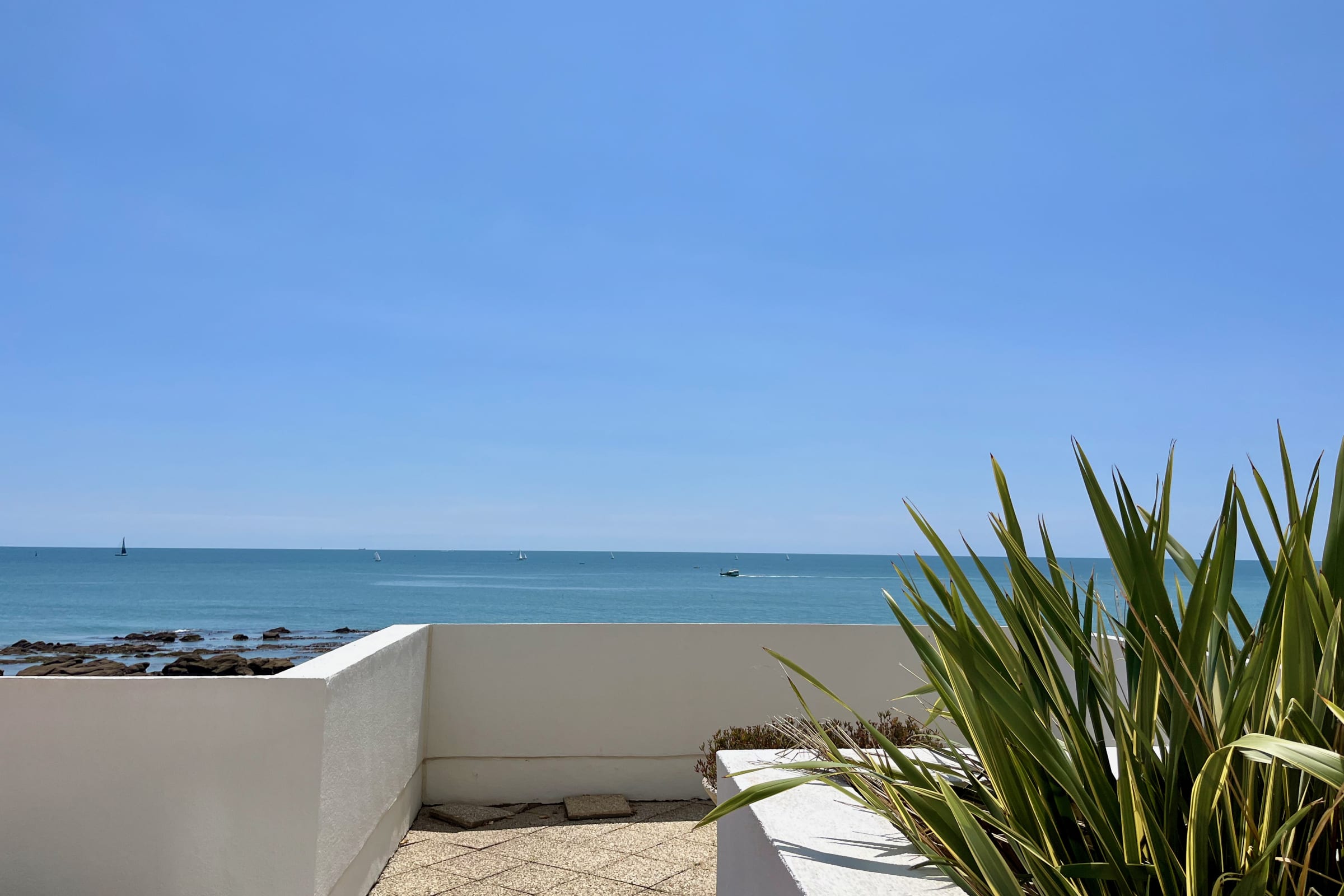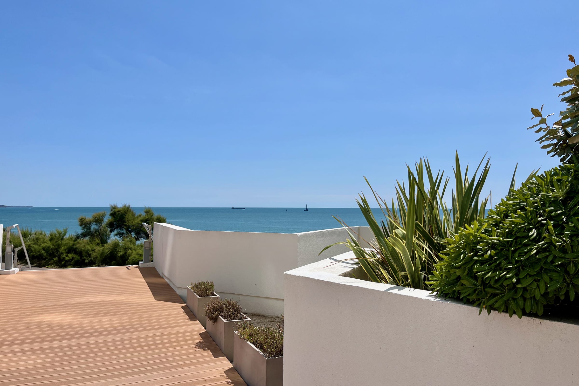 L'espace de vie est lumineux offrant une magnifique vue sur l'océan et la plage du bassin Dombret.