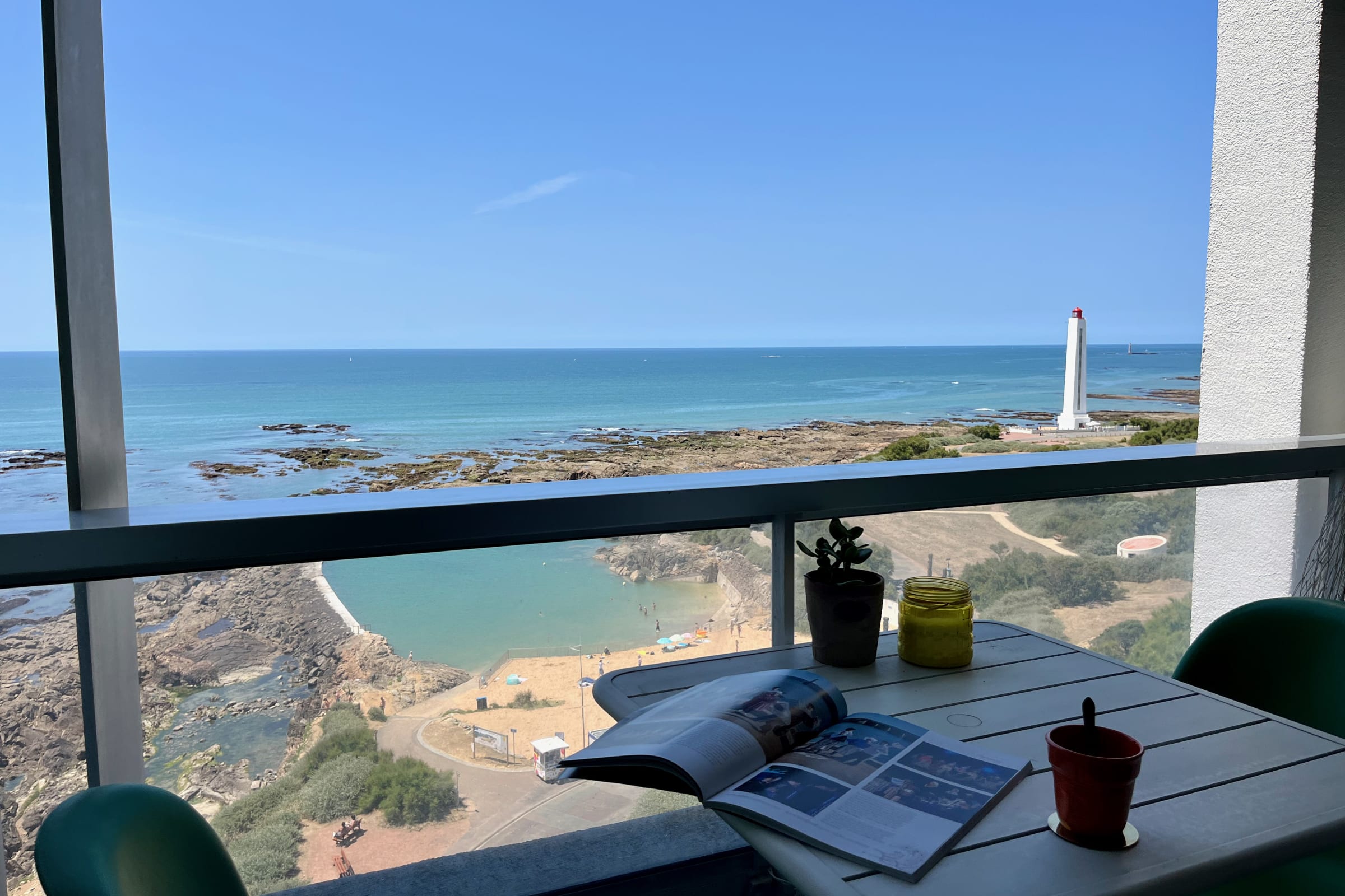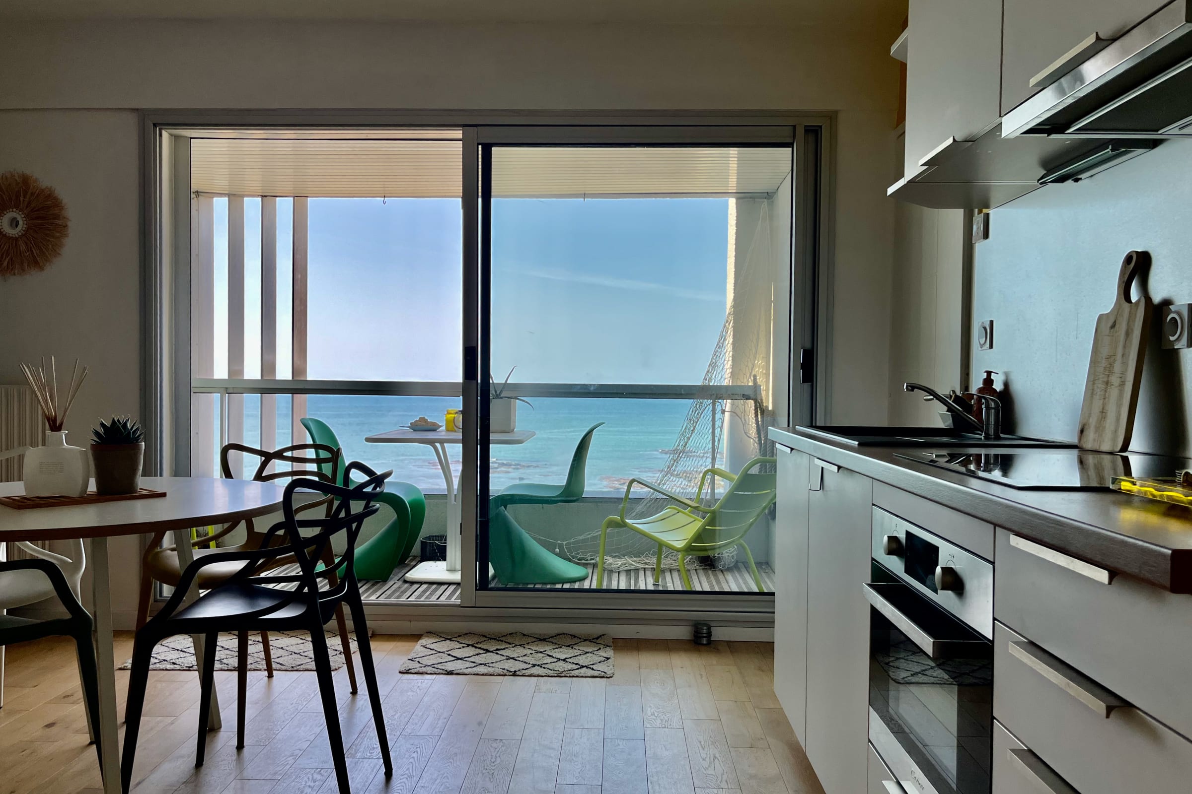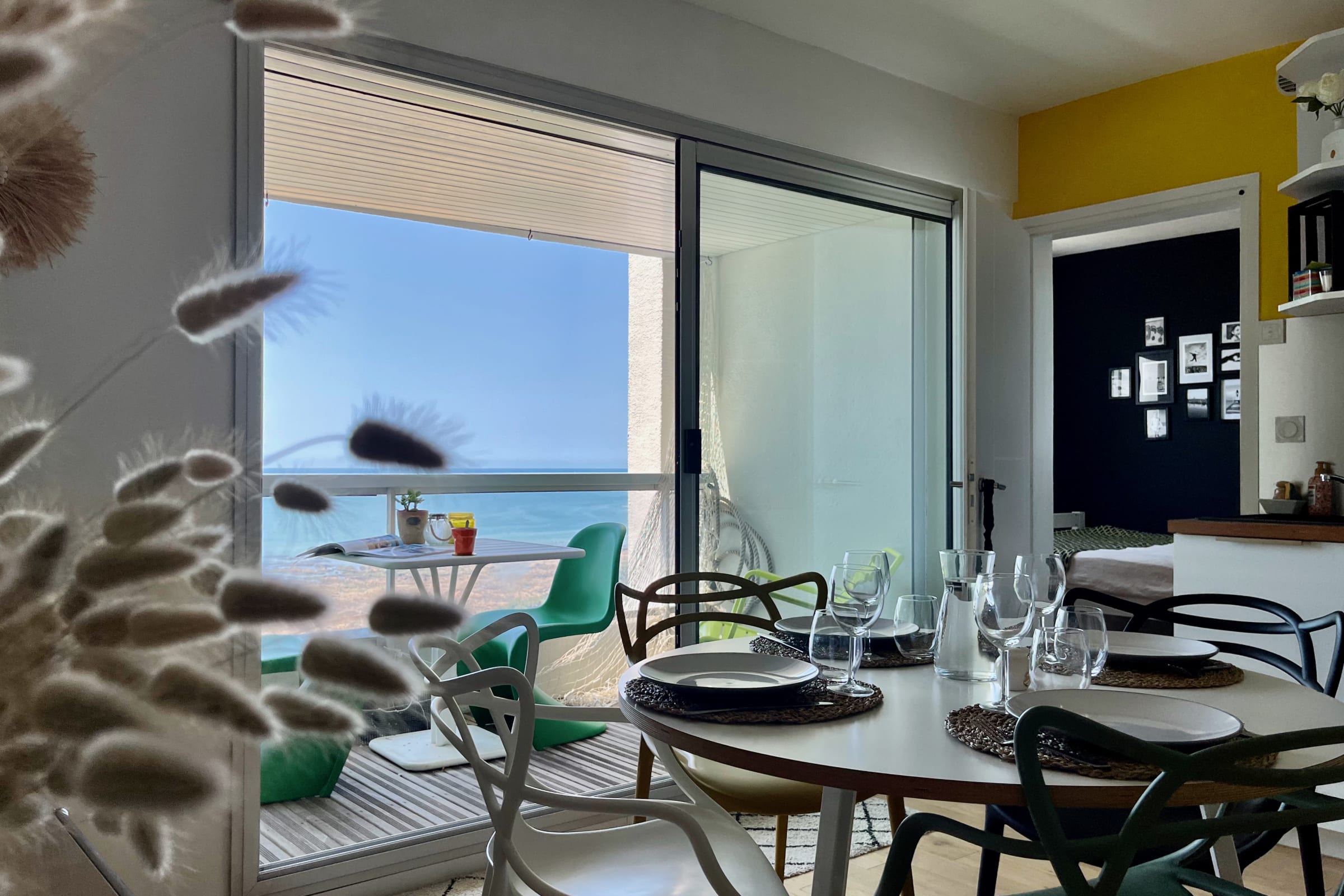 Depuis le balcon, vous pourrez profiter d'un coin repas face à l'océan et la plage.