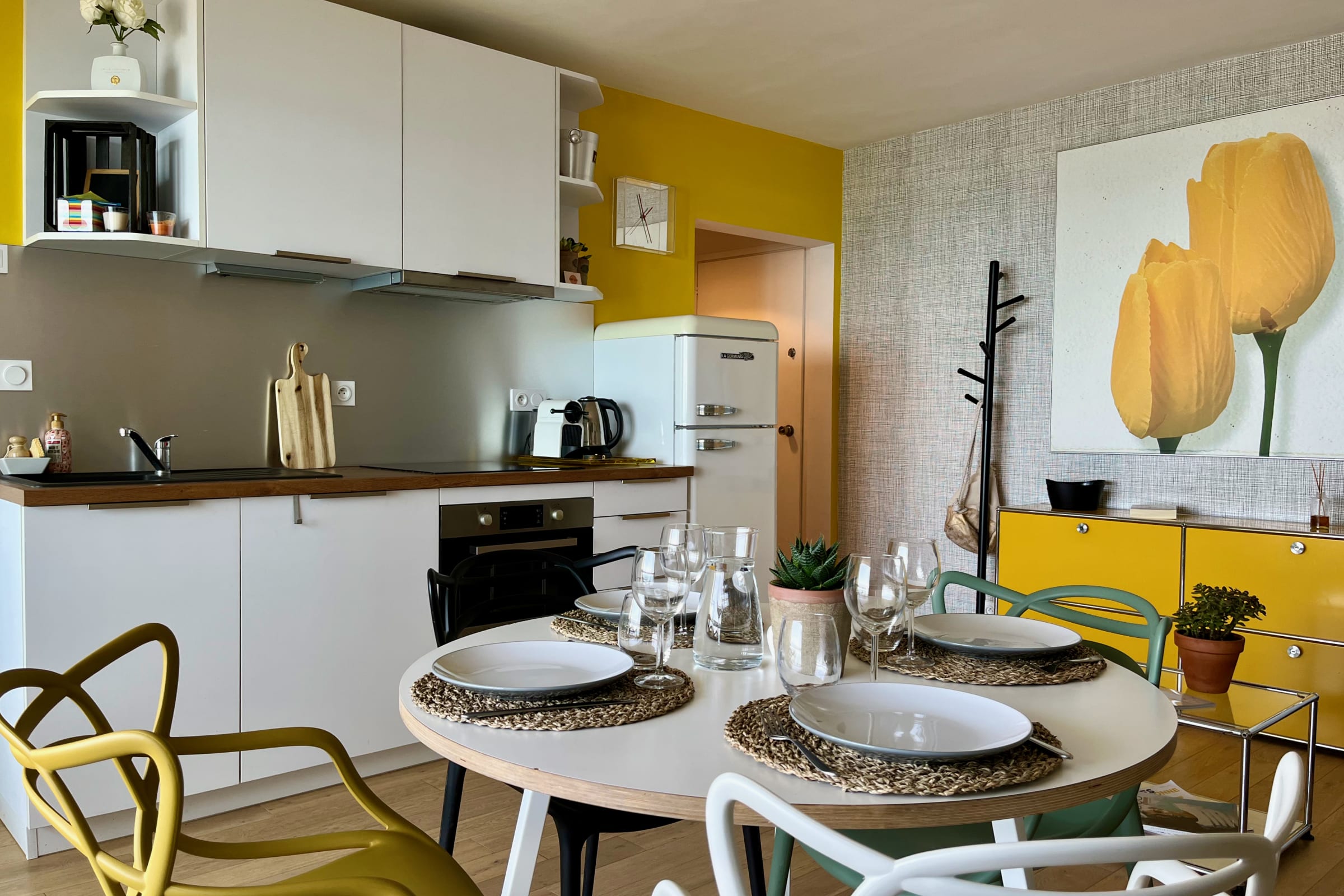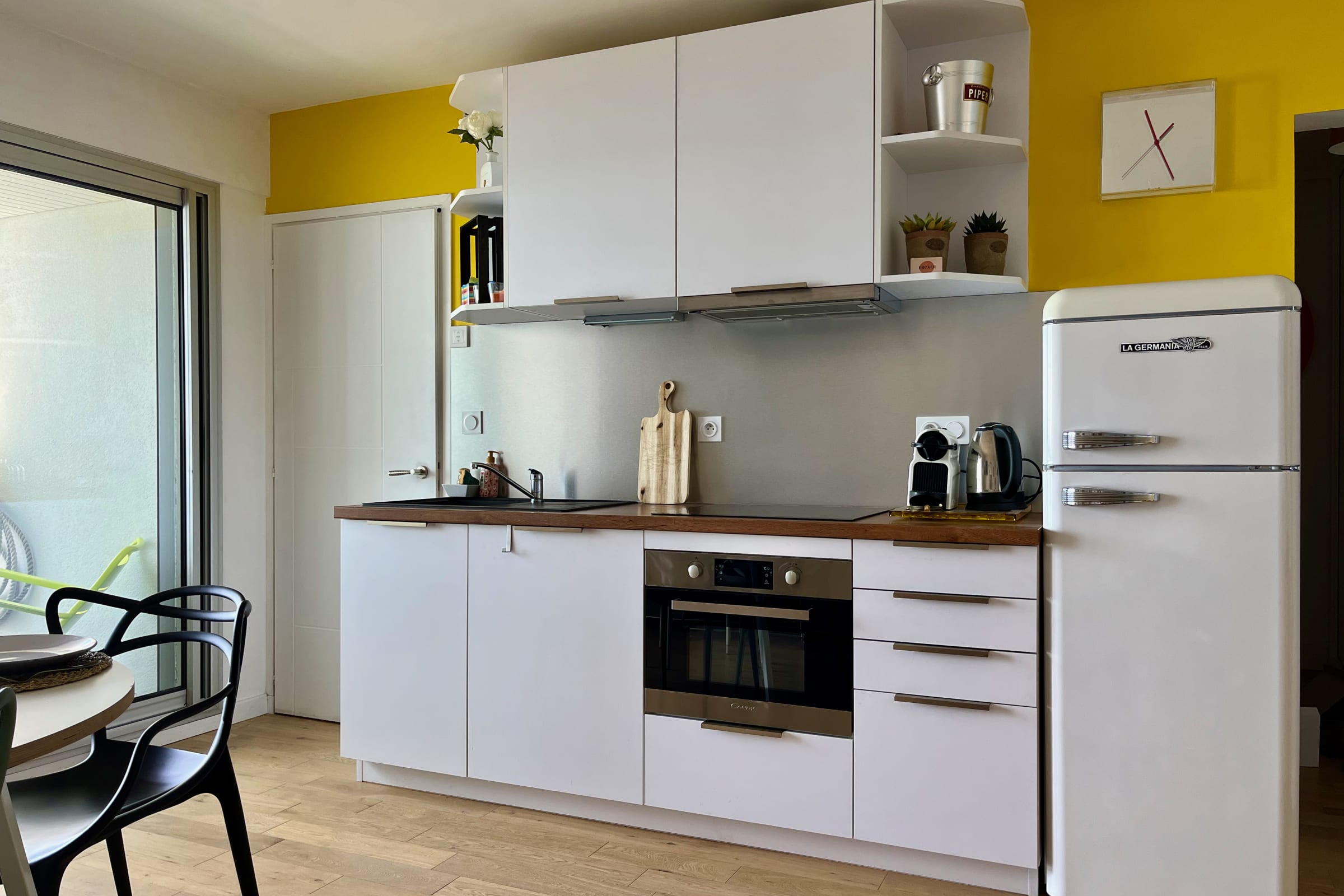Il se compose d'une cuisine aménagée et équipée d'un four, d'un réfrigérateur-congélateur et d'une cafetière Nespresso.