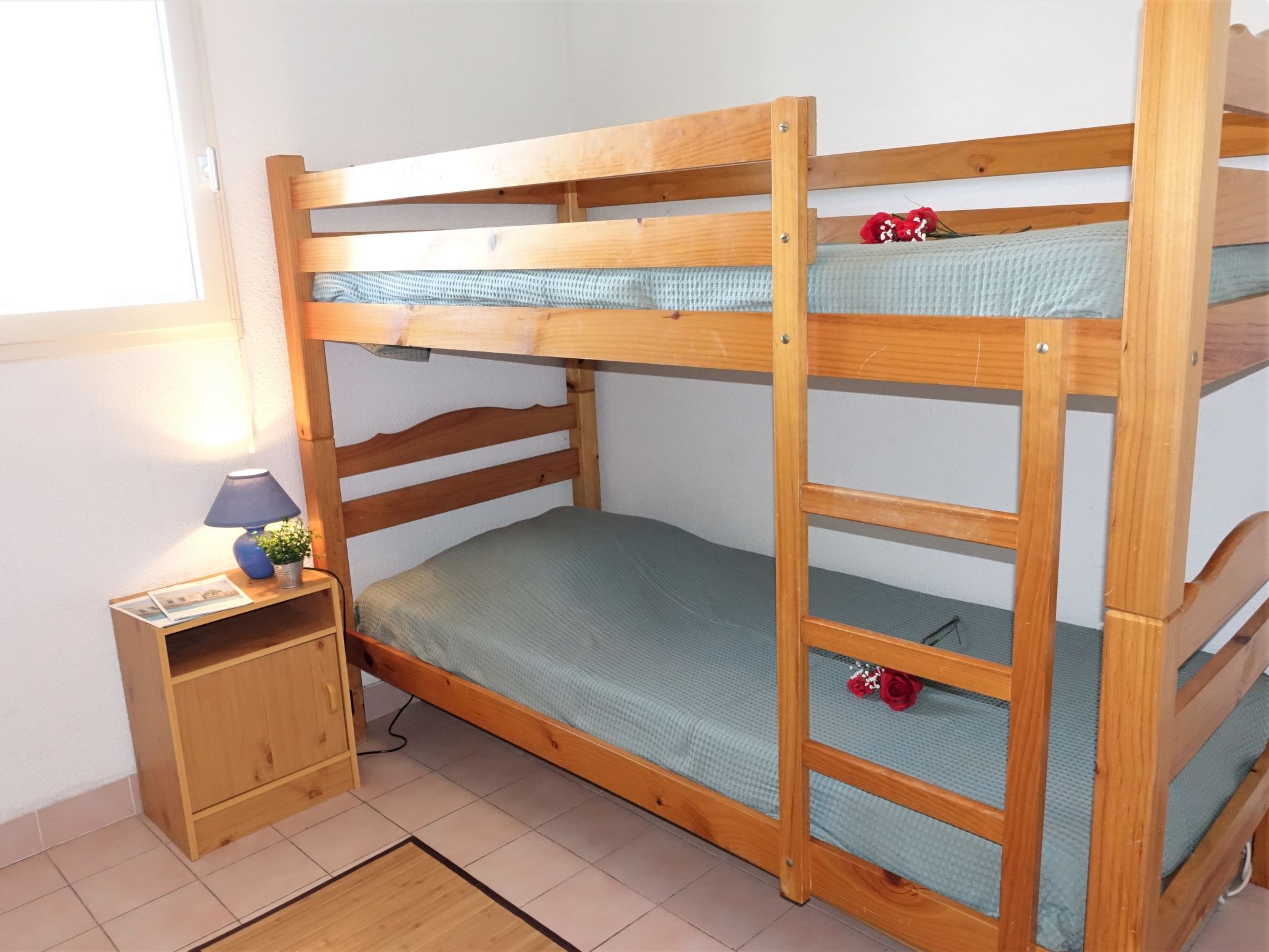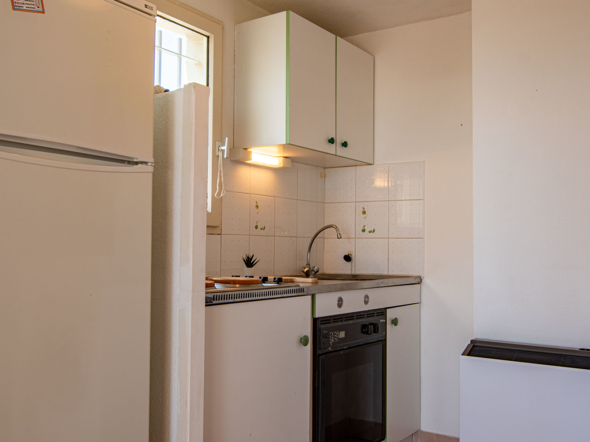 3-room apartment 39 m2 on 3rd floor, south-east facing position. Object suitable for 2 adults + 2 children. Comfortable furnishings: dining room. Exit to the balcony. 1 room with 1 french bed (1 x 140 cm, length 190 cm). 1 room with 1 x 2 bunk beds (90 cm, length 190 cm). Gallery, ceiling height 1 - 180 cm with TV and fan. Open kitchen (4 hot plates, oven, kettle, microwave, freezer, electric coffee machine). Exit to the balcony. Bathroom, sep. WC. Electric heating. Balcony 5 m2, south-east facing position. Balcony furniture. Beautiful, of the sea and the swimming pool. Facilities: washing machine, iron. Internet (WiFi, extra). Reserved parking space n 27. Please note: suitable for families. TV only FR. Smoke alarm. Offer by a private individual according to Art. 155, IV of CGI.