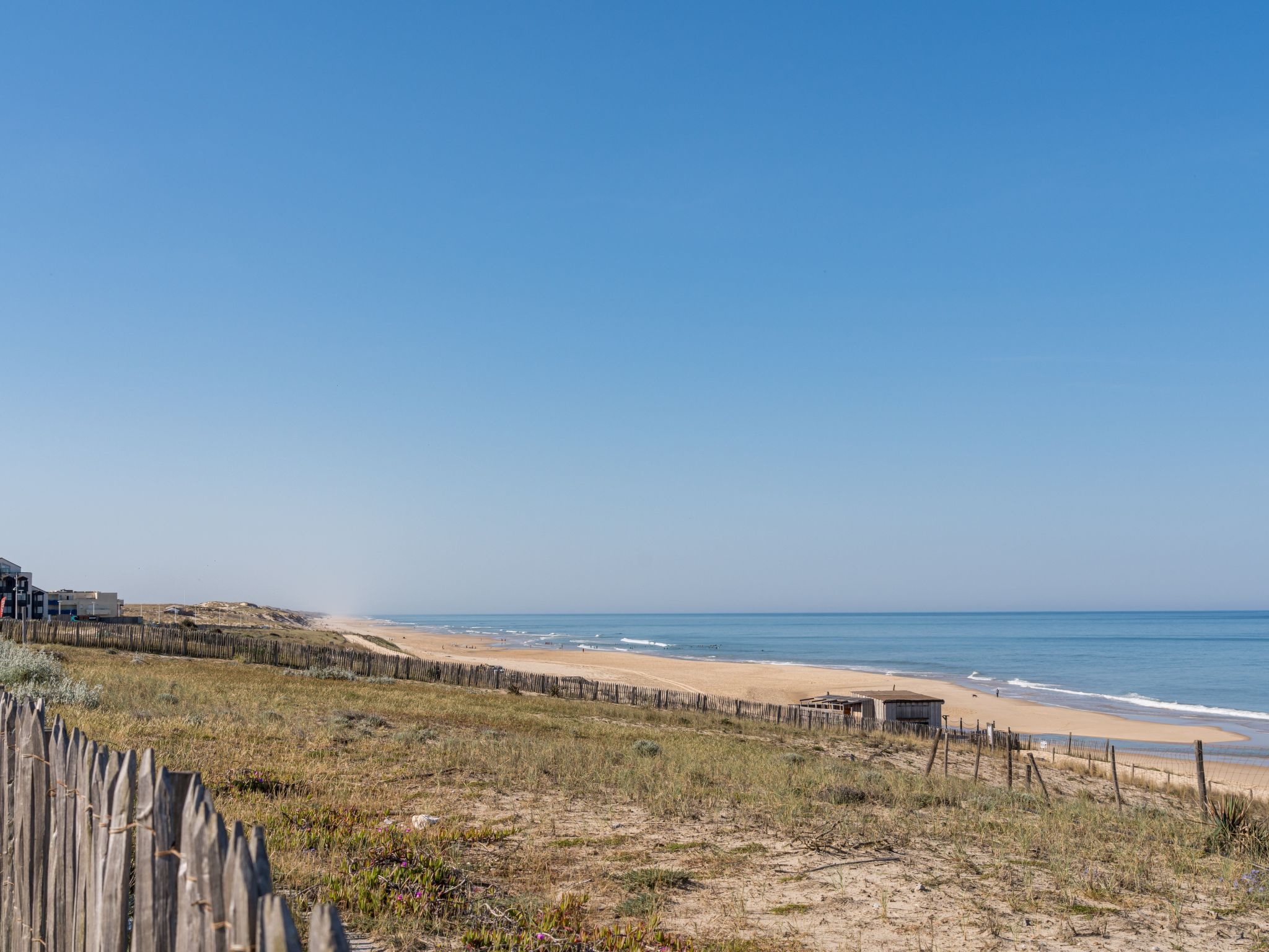 Lacanau-Ocean: Residence "Les Océanides", 4 storeys. 300 m from the centre, 20 m from the sea, 6 km from the lake, 20 m from the beach, direct access to the beach. Shop 300 m, grocery 50 m, supermarket 300 m, restaurant 50 m, bar 200 m, bakery 100 m, pedestrian zone 200 m, bicycle rental 500 m, bus stop "Salle l'Escoure Océan" 700 m, sandy beach "Plage sud" 20 m, bathing lake "Moutchic" 6 km. Golf course (18 hole) 4 km, sailing school 10 km, tennis 2 km, riding stable 15 km. Nearby attractions: Bordeaux 60 km, Dune du Pilat 80 km, Arcachon 80 km, Saint Emilion 80 km, Lacanau Ville 10 km. Well-known lakes can easily be reached: Lac du moutchic 10 km, Lac de Maubuisson 20 km. Hiking paths: Chemin de Saint Jacques de Compostelle 500 m.