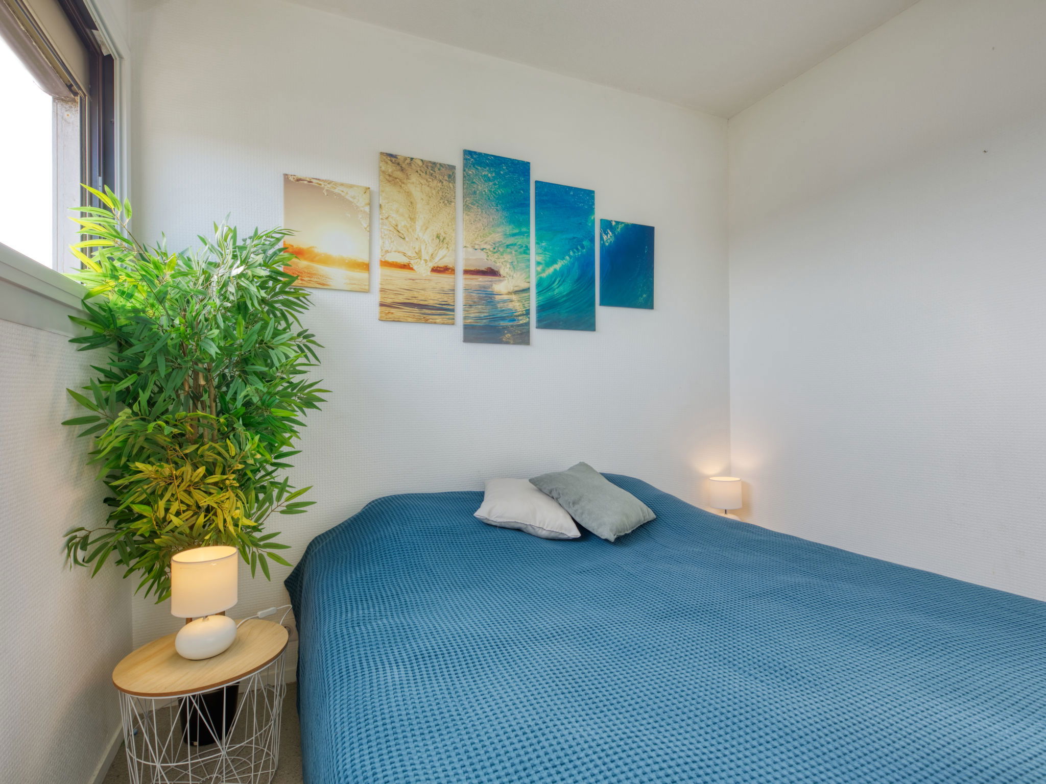 2-room apartment 37 m2 on 2 levels on 1st floor. Comfortable furnishings: 1 room with 1 french bed (140 cm, length 190 cm). On the lower ground floor: living/dining room with 1 double sofabed (140 cm, length 200 cm), TV (flat screen). Exit to the balcony. Kitchen (2 hot plates, toaster, kettle, microwave, electric coffee machine). Shower, sep. WC. Heating. Balcony 7 m2, west facing position. Balcony furniture. Marvellous view of the ocean. Facilities: washing machine, dryer. Internet (WiFi, free). Parking space n 39. Please note: non-smokers only. Smoke alarm. Offer by a private individual according to Art. 155, IV of CGI.