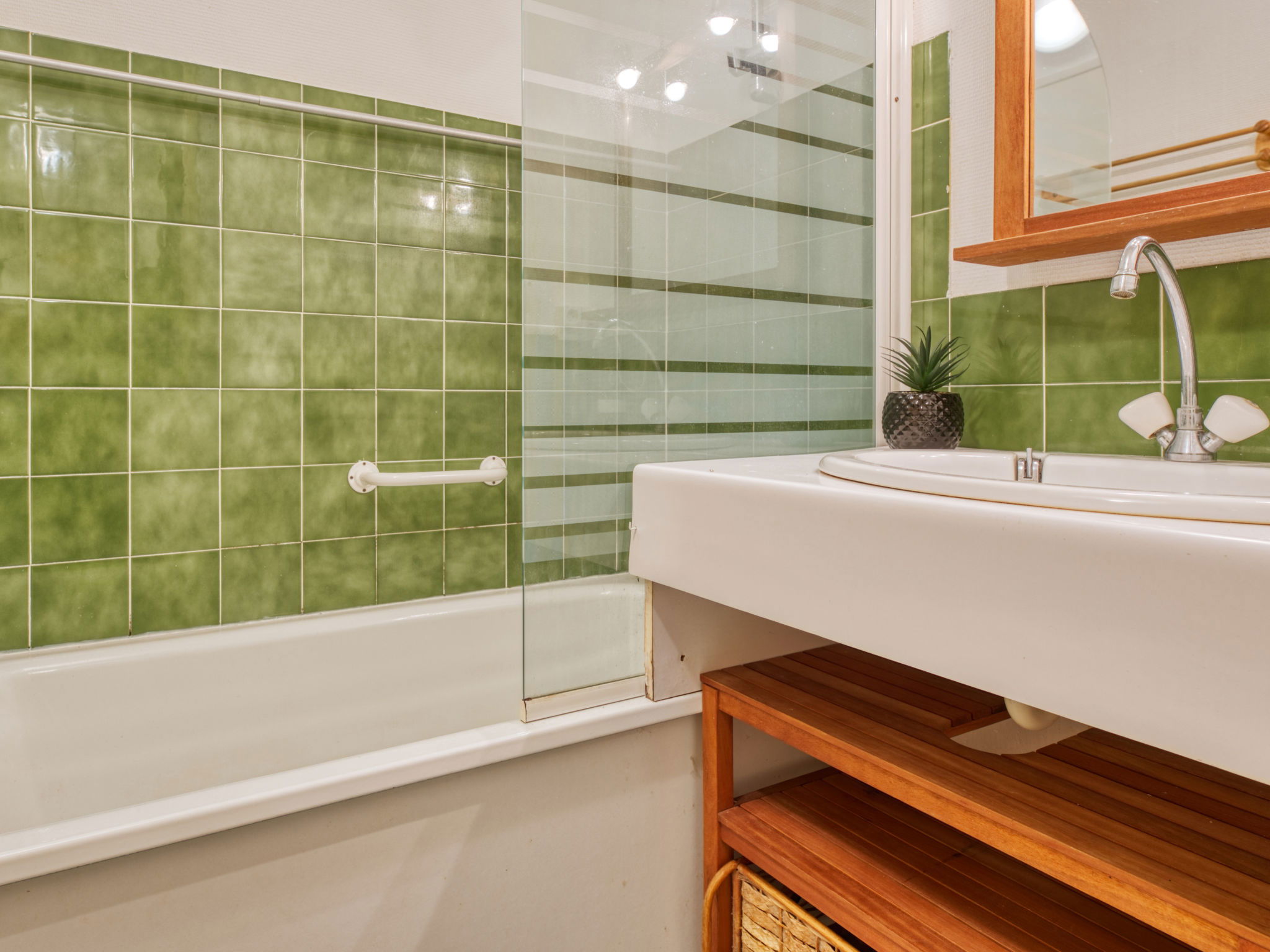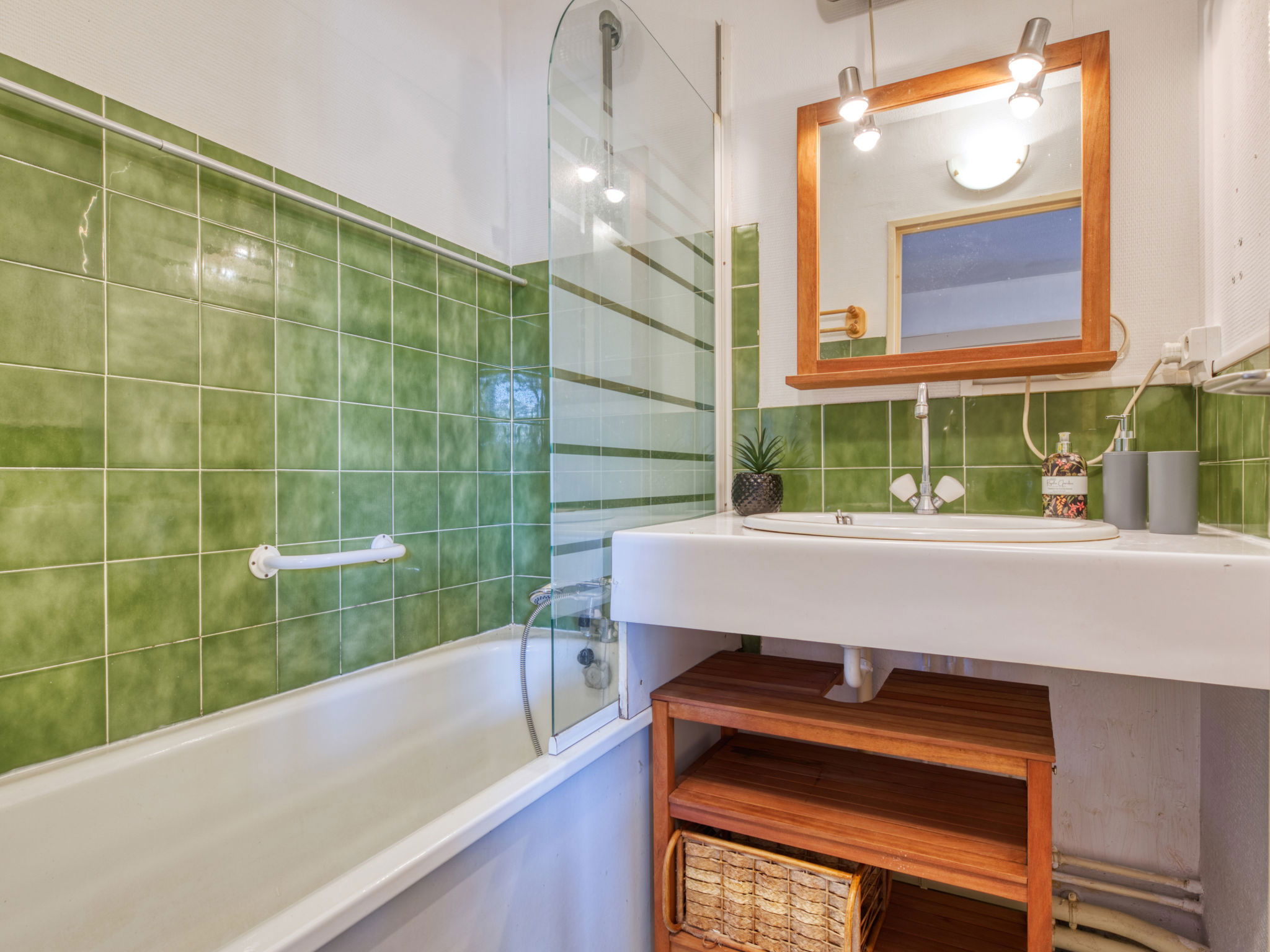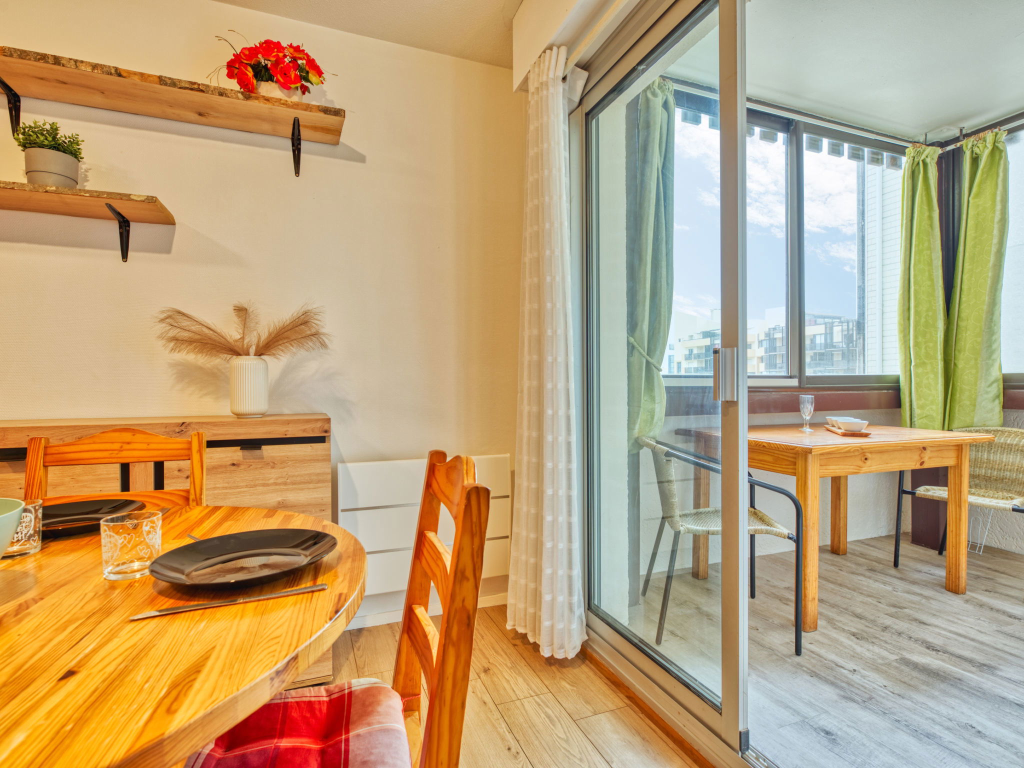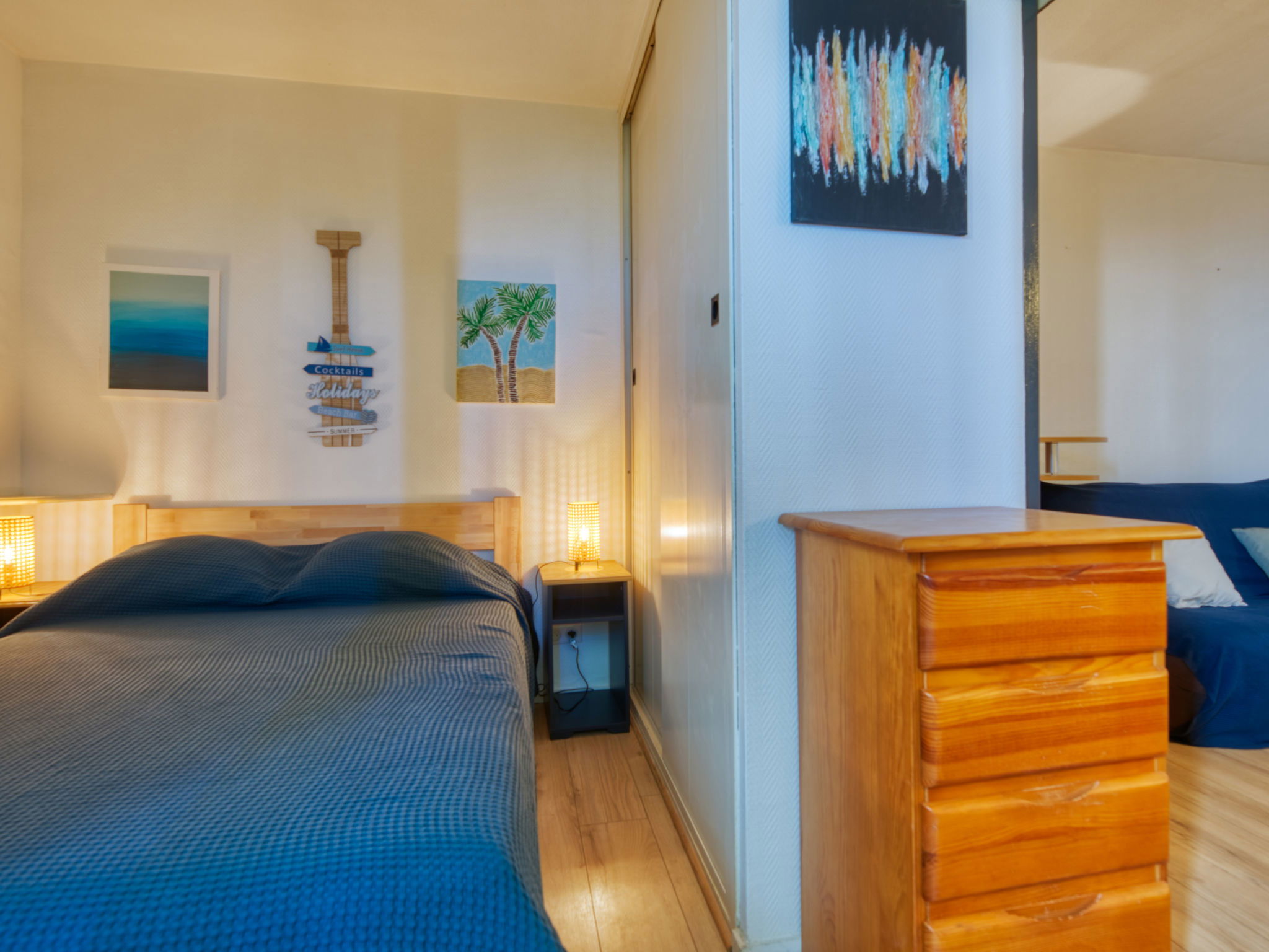 2-room apartment 30 m2, on the ground floor. Living/dining room with 1 double sofabed (140 cm, length 190 cm). Exit to the loggia. 1 room with 1 double bed (140 cm, length 190 cm). Kitchenette (4 hot plates, oven, toaster, kettle, microwave, electric coffee machine). Shower/WC. Heating. Balcony furniture, covered balcony. Partial view of the ocean. Facilities: washing machine. Internet (WiFi, extra). Parking space n 62. Please note: non-smokers only. Maximum 1 pet/ dog allowed. Smoke alarm. Offer by a private individual according to Art. 155, IV of CGI.