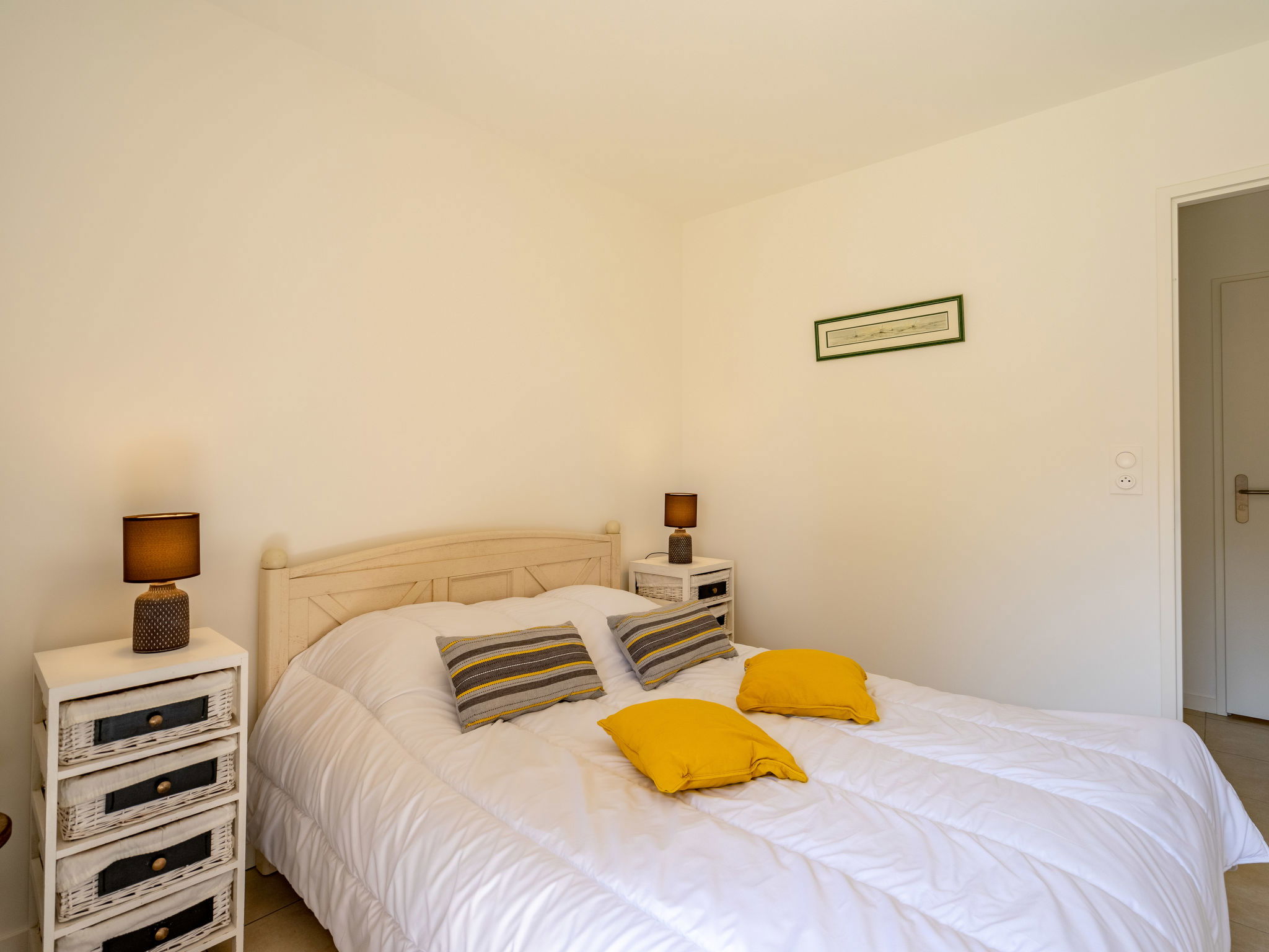 2-room apartment 47 m2, on the ground floor, south-west facing position. Modern furnishings: large living/dining room with 1 double sofabed (1 x 140 cm, length 190 cm), TV (flat screen). Exit to the terrace, to the patio. 1 room with 1 french bed (1 x 140 cm, length 190 cm). Open kitchen (2 hot plates, oven, dishwasher, toaster, kettle, microwave, freezer). Shower, sep. WC. Electric heating. Terrace 13 m2, south-west facing position, patio 30 m2. Facilities: washing machine, baby cot for up to 2 year olds. Internet (WiFi, free). Parking space n 28. Please note: smoke alarm. Offer by a private individual according to Art. 155, IV of CGI.