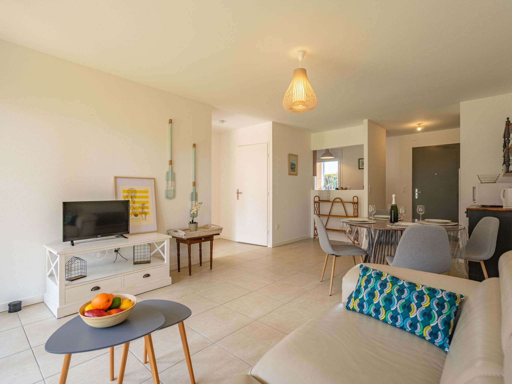 Modern, beautiful residence "Wangari", built in 2022. 16 apartments in the residence. 1.7 km from the centre of Vaux sur Mer, in a quiet position, 650 m from the sea, 650 m from the beach, in a cul-de-sac. Parking. Supermarket 1 km, restaurant 700 m, bakery, café 950 m, bus stop "Porte Océane" 800 m, railway station "Gare de Royan" 4 km, sandy beach "plage de St Sordelin" 650 m (small), park "Luna Park (Juillet-Aout)" 17 km, indoor swimming pool 4 km, thermal baths "Thalassothérapie Thalazur Royan" 2.5 km. Sports harbour 3 km, golf course (18 hole) 6 km, surf school 950 m, sailing school 2 km, tennis 2.2 km, indoor tennis centre 2.2 km, minigolf 1.3 km, riding stable 7 km, cycle lane 200 m. Nearby attractions: Zoo de La Palmyre 13 km, Hippodrome La Palmyre 14 km, Centre aquatique Iléo- Ile d'Oléron 47 km, Fort Boyard - Fouras 57 km, Aéroport La Rochelle - Ile de Ré 80 km, Aéroport Bordeaux - Mérignac 110 km. The keys‘ handover takes place by the agency in Vaux sur Mer, 1 km.