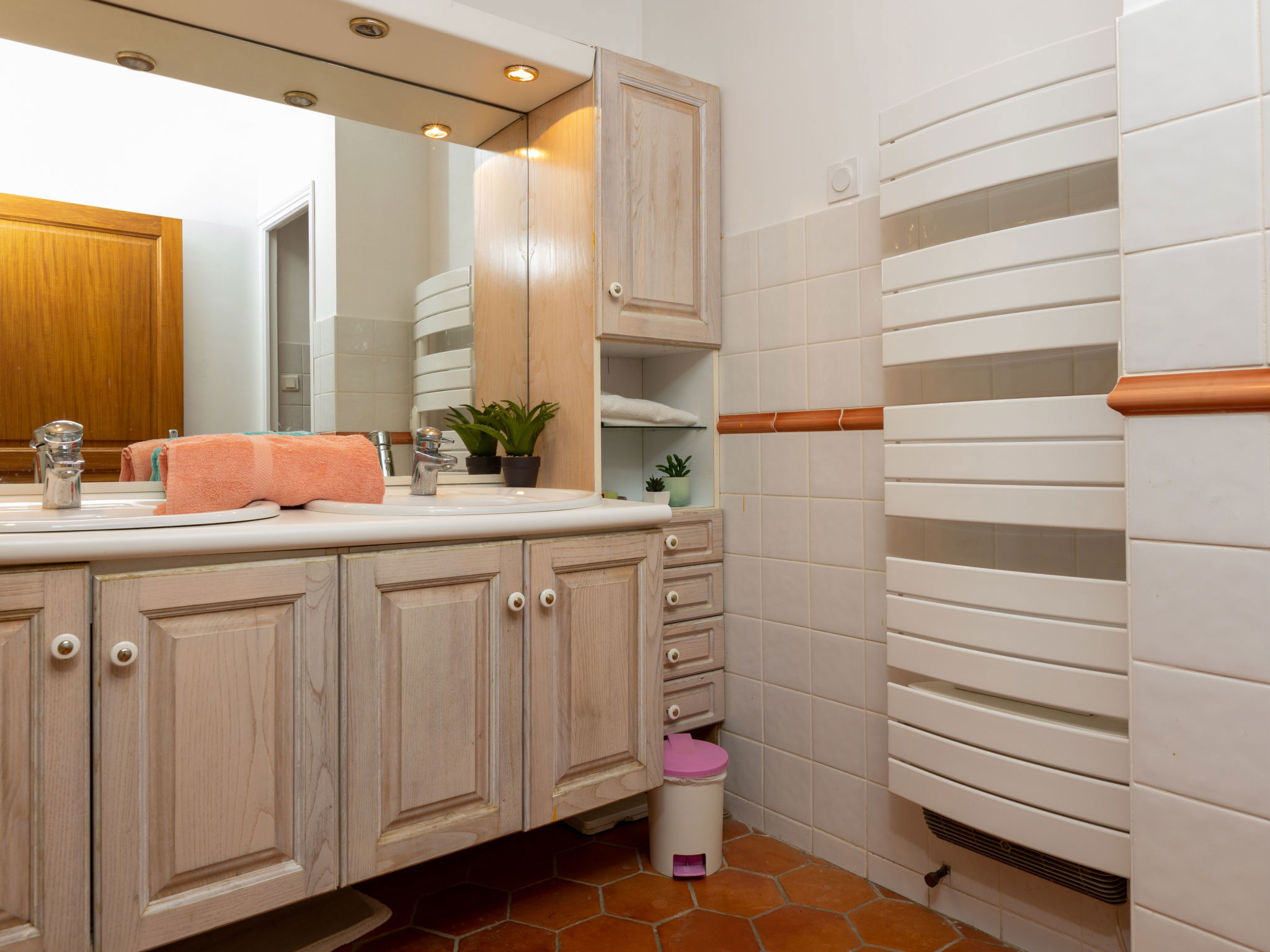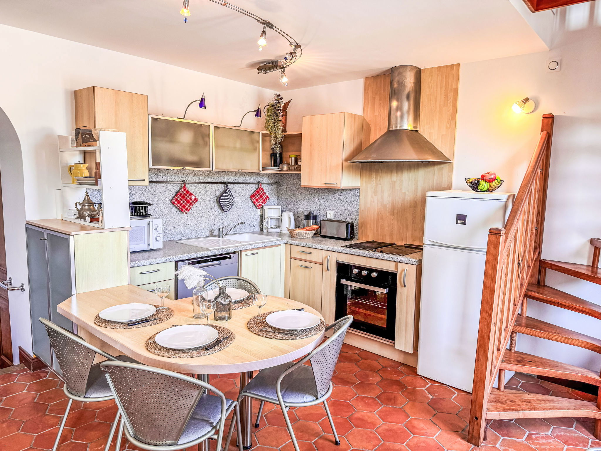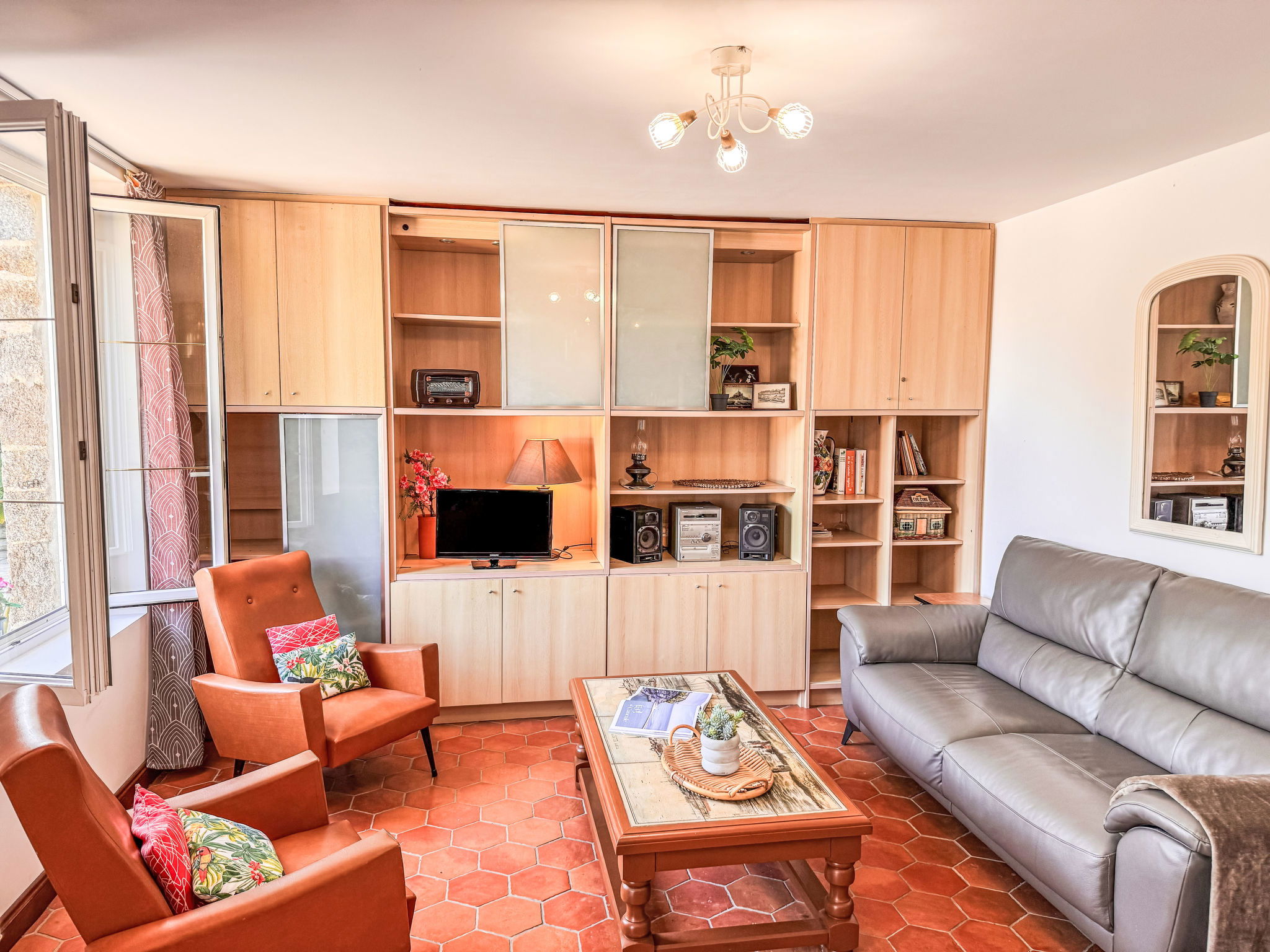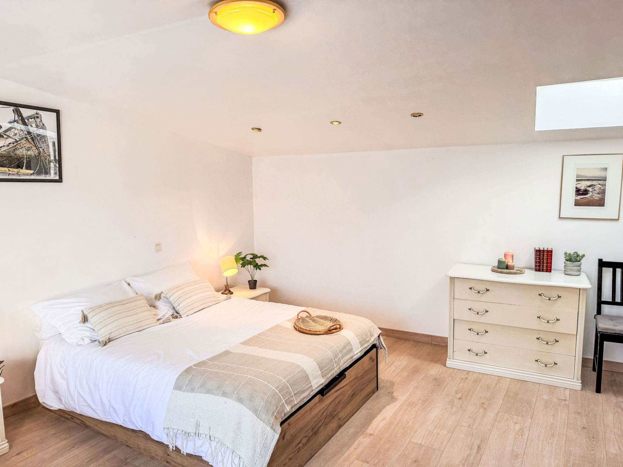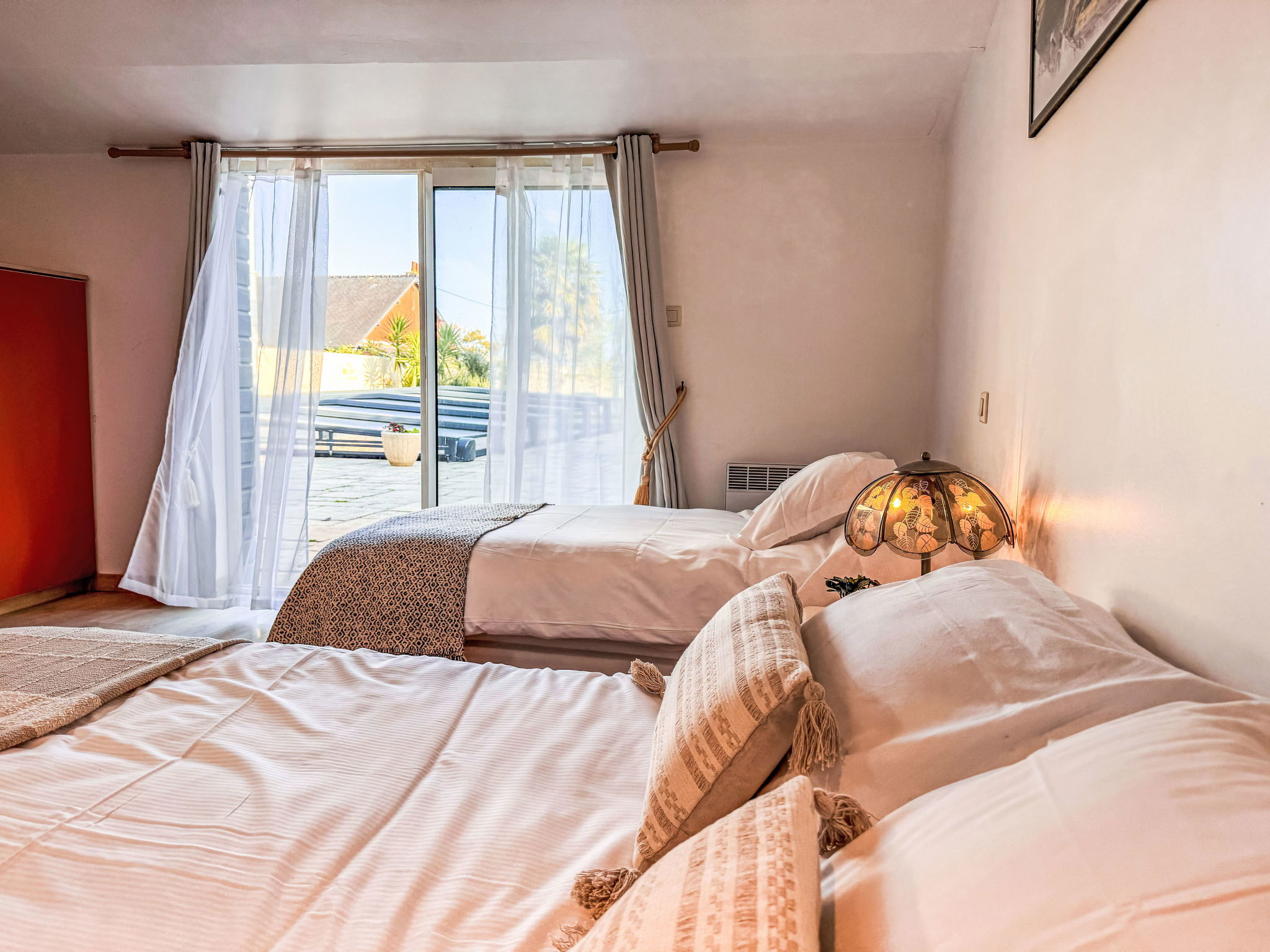 "La houle", 3-room house 90 m2 on 2 levels. Comfortable furnishings: living/dining room with veranda with TV (flat screen). Exit to the garden, to the terrace. 1 large room with 1 bed (90 cm, length 190 cm), 1 french bed (1 x 140 cm, length 190 cm). Exit to the terrace. Open kitchen (oven, dishwasher, 2 ceramic glass hob hotplates, toaster, kettle, microwave, freezer, grill, electric coffee machine). Shower, 2 sep. WC's, double hand-basin. Electric heating. Upper floor: 1 large room with 1 bed (90 cm, length 190 cm), 1 french bed (2 x 90 cm, length 190 cm), TV (flat screen). Large terrace 100 m2, south facing position, large garden, lawn. Terrace furniture, barbecue, deck chairs. Facilities: washing machine, iron, hair dryer. Internet (WiFi, free). Garage on the property. Please note: private entrance, smoke alarm. Offer by a private individual according to Art. 155, IV of CGI.