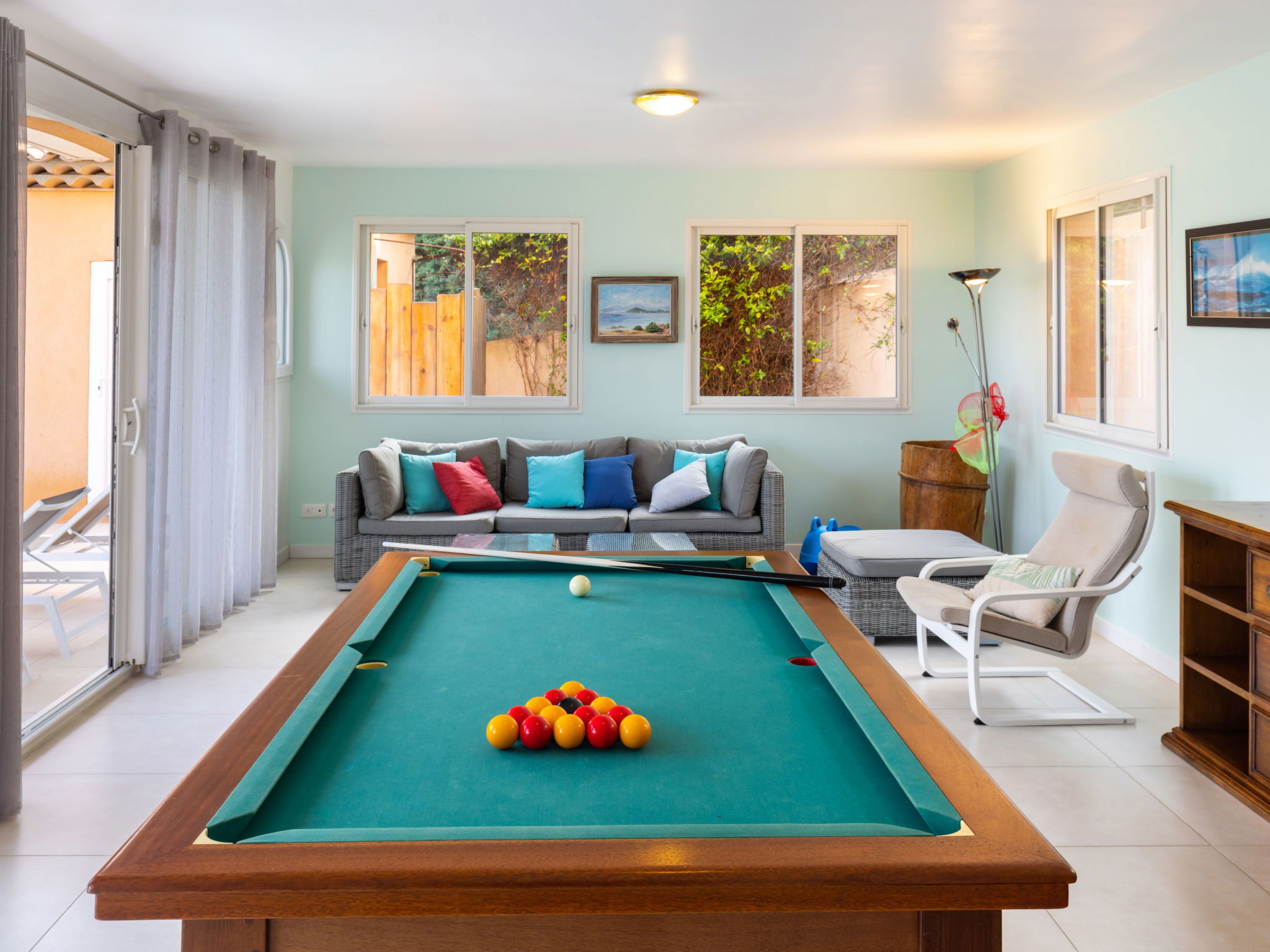 6-room villa. Living/dining room with dining table, satellite TV, international TV channels, hi-fi system and DVD. Exit to the terrace. Billiard room.