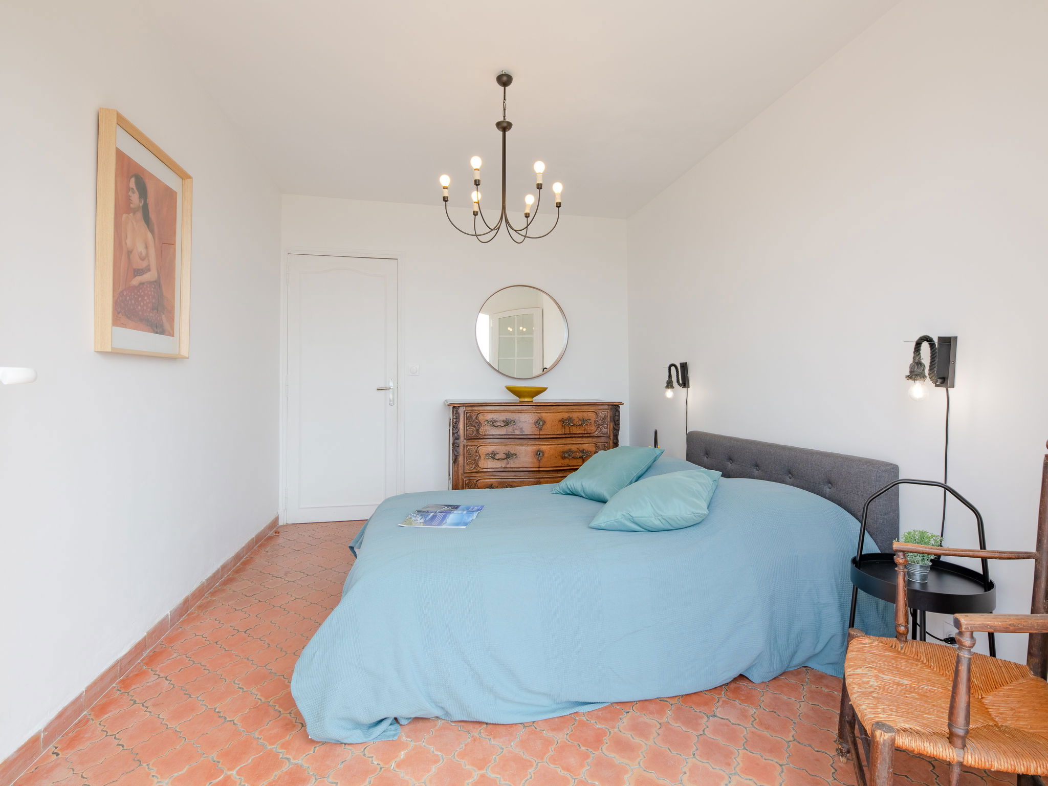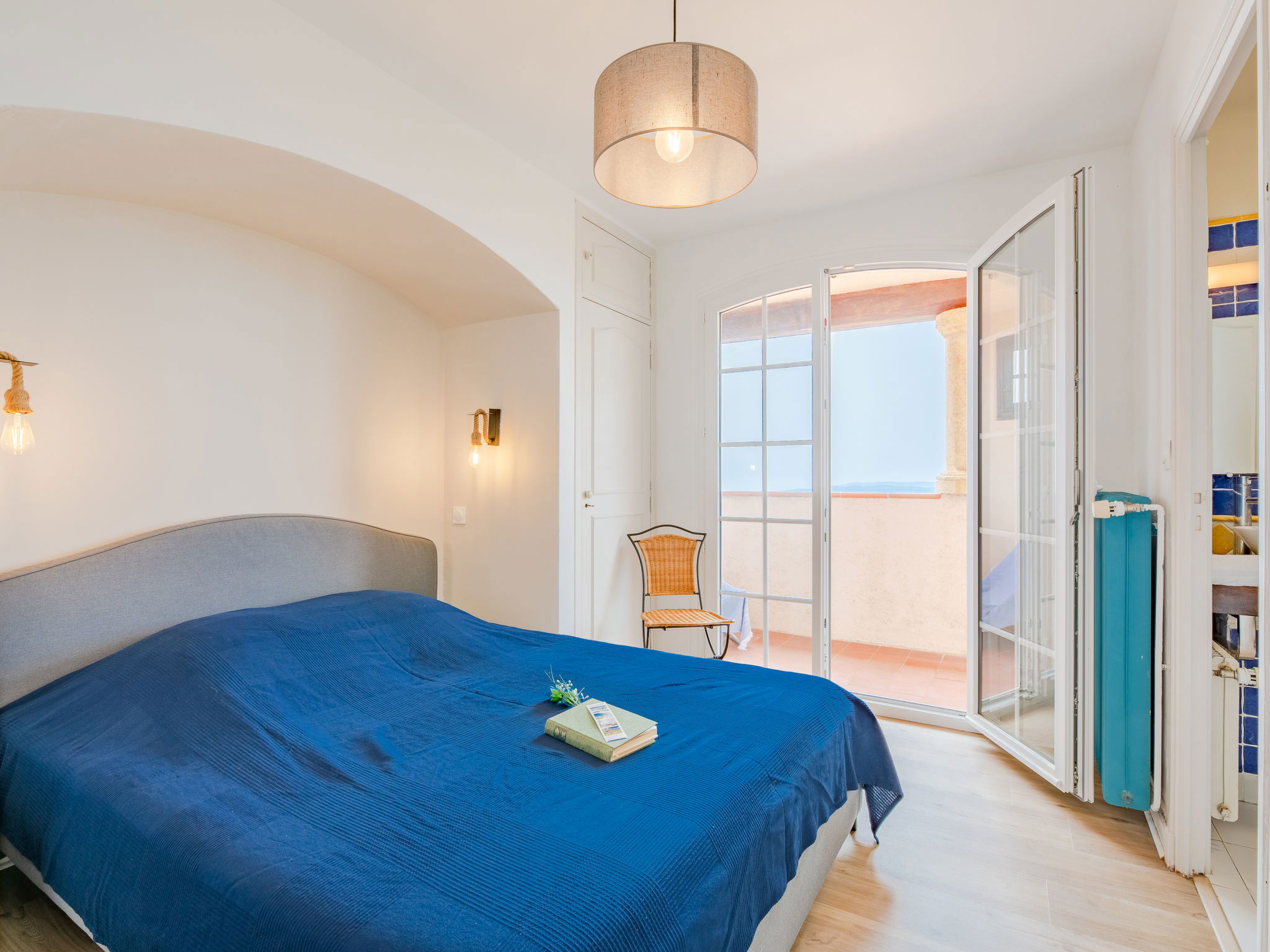 4-room villa 110 m2 on 2 levels, south facing position. Spacious, cosy furnishings: living/dining room with TV (flat screen), hi-fi system, DVD and fan. Exit to the terrace. 1 room with Dressing room with 1 french bed (1 x 160 cm, length 190 cm), fan. Exit to the balcony. 1 room with Dressing room with 1 french bed (1 x 140 cm, length 190 cm), fan. Exit to the balcony. Large kitchen (oven, dishwasher, 4 induction hot plates, microwave, freezer, electric coffee machine, Capsules for coffee machine (Nespresso) extra). Exit to the terrace. Bathroom, 2 sep. WC's. Oil heating. Upper floor: (steep stair), 1 room with 1 french bed (1 x 160 cm, length 190 cm), shower/WC and fan. Exit to the balcony. 2 balconies 20 m2, south facing position, large terrace, north facing position, large terrace 50 m2 partly roofed, south facing position. Terrace furniture, barbecue, deck chairs (6). Marvellous view of the sea. Facilities: washing machine, safe, iron. Internet (WiFi, free). Reserved parking. Please note: non-smoking house. TV only FR, EN. Smoke alarm. Offer by a private individual according to Art. 155, IV of CGI. 831070008573P