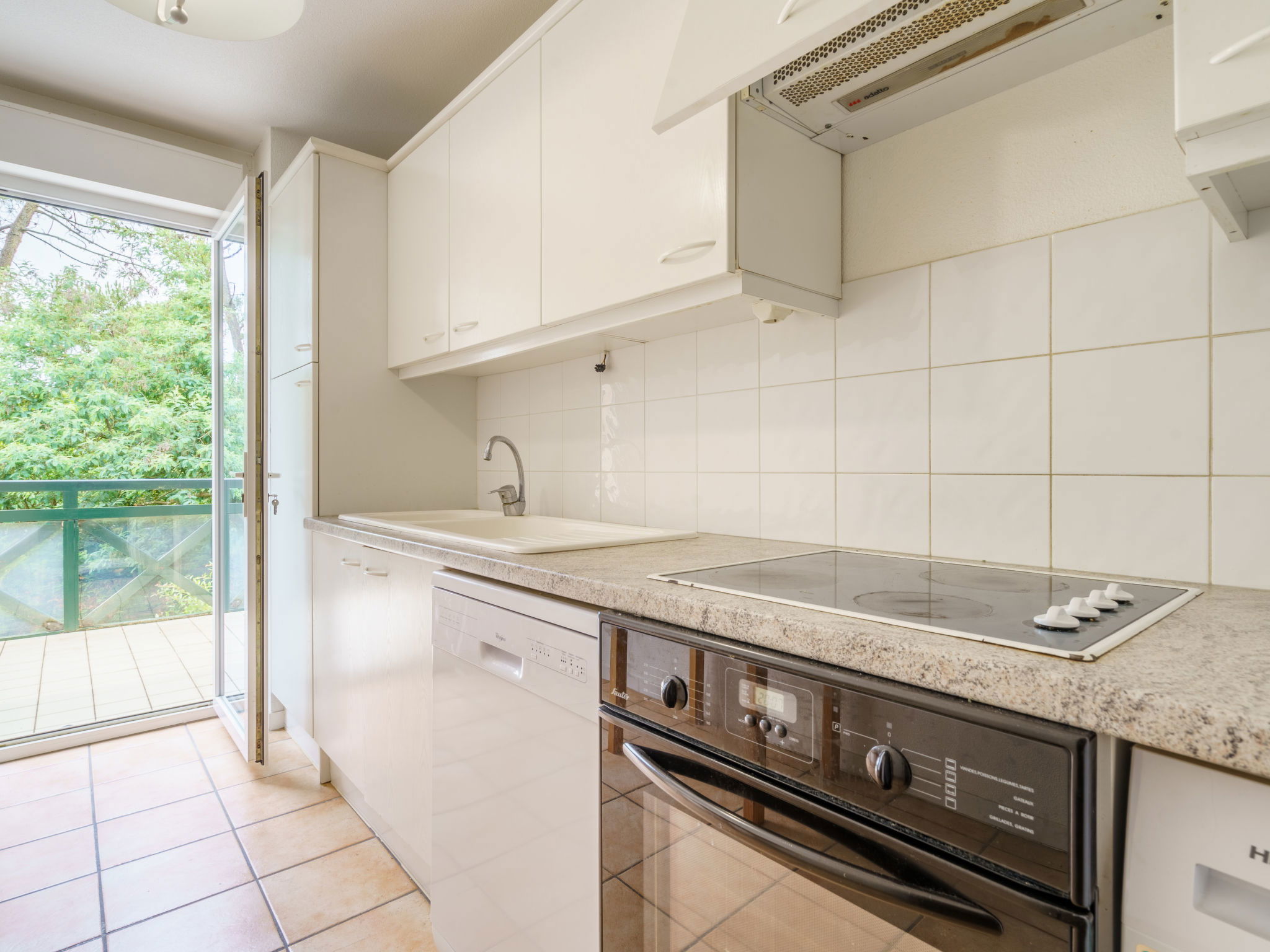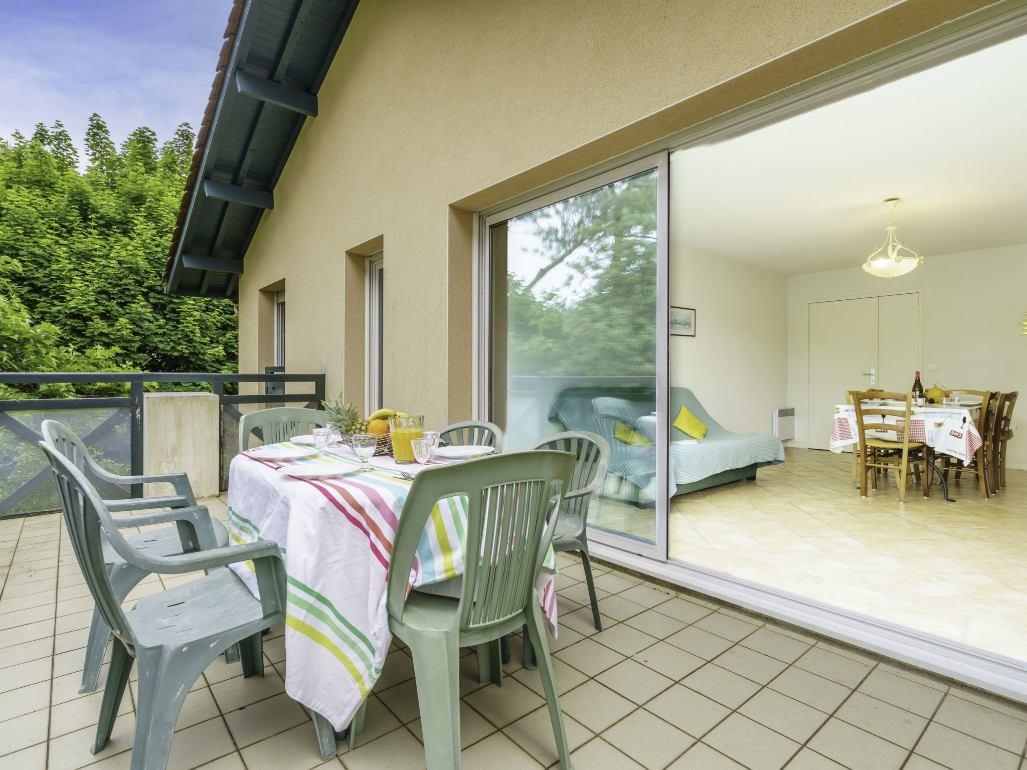 Anglet 6 km from Biarritz: Residence "Arnaïa", 2 storeys, surrounded by trees. In the district of Chiberta, in a quiet position in the residential district, 50 m from the edge of the forest, 1.7 km from the sea, 800 m from the lake, 1.7 km from the beach. Shop 2.5 km, grocery 2.5 km, restaurant 1.7 km, bar 1.7 km, bakery 2 km, café 1.7 km, bus stop 250 m, sandy beach "" 1.7 km, thermal baths "Athlantal" 1.6 km. Marina 2.1 km, golf course (18 hole) 1.6 km, surf school 1.7 km, riding stable 900 m, ice rink 2 km. Nearby attractions: Promenade de la Barre/Plages d'Anglet 1.7 km, Bayonne 4.9 km, Biarritz 5.2 km, St-Jean-de-Luz 20 km, San Sebastiàn 53 km. Hiking paths: La Rhune 48 km. Please note: no lift.