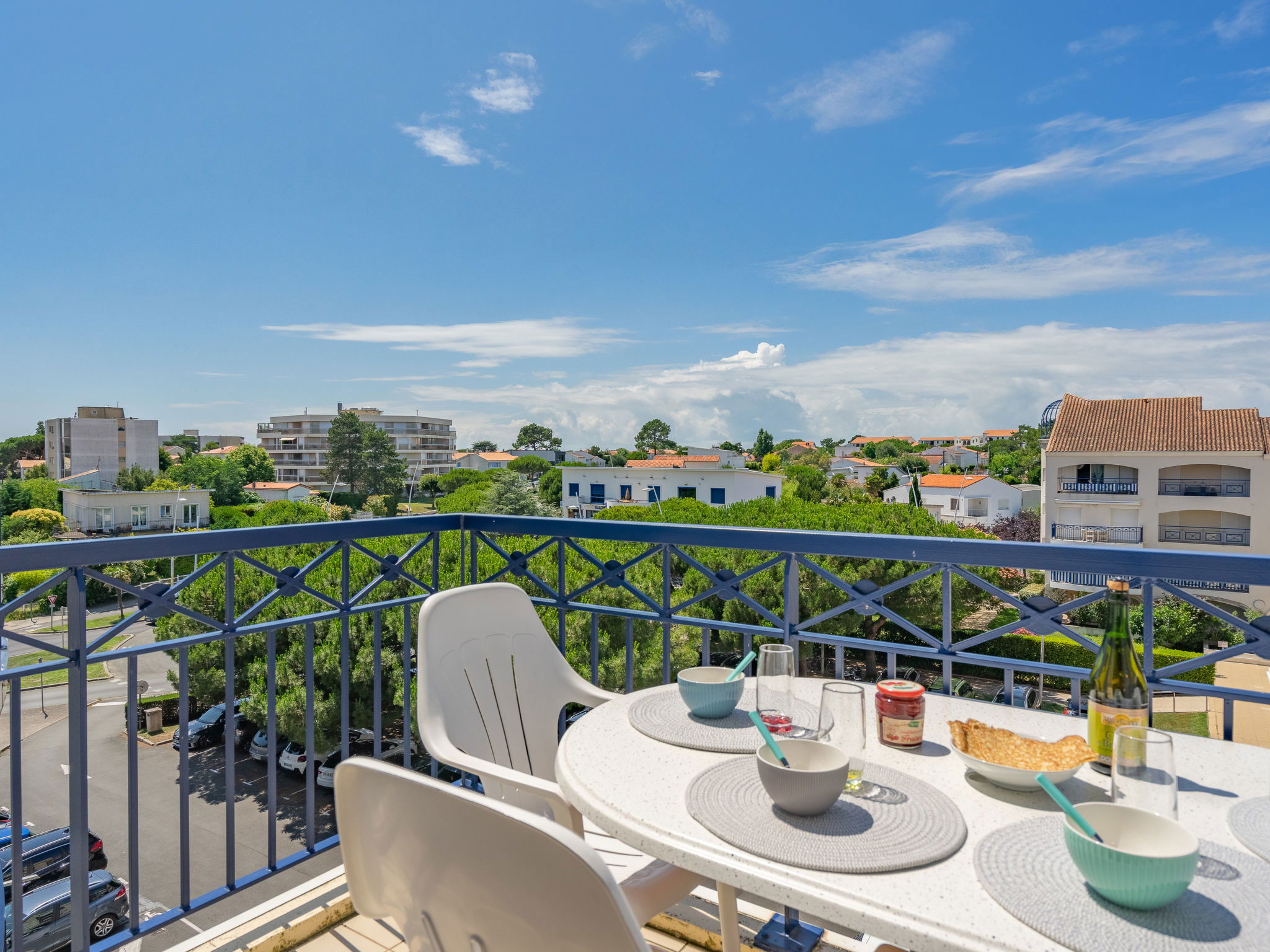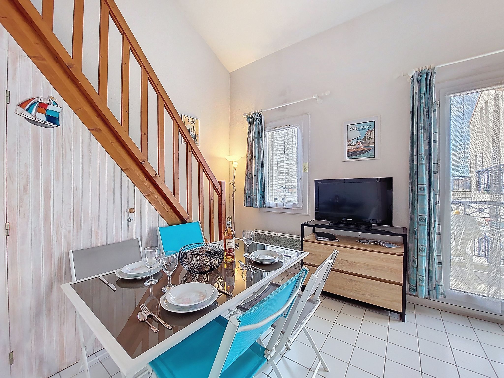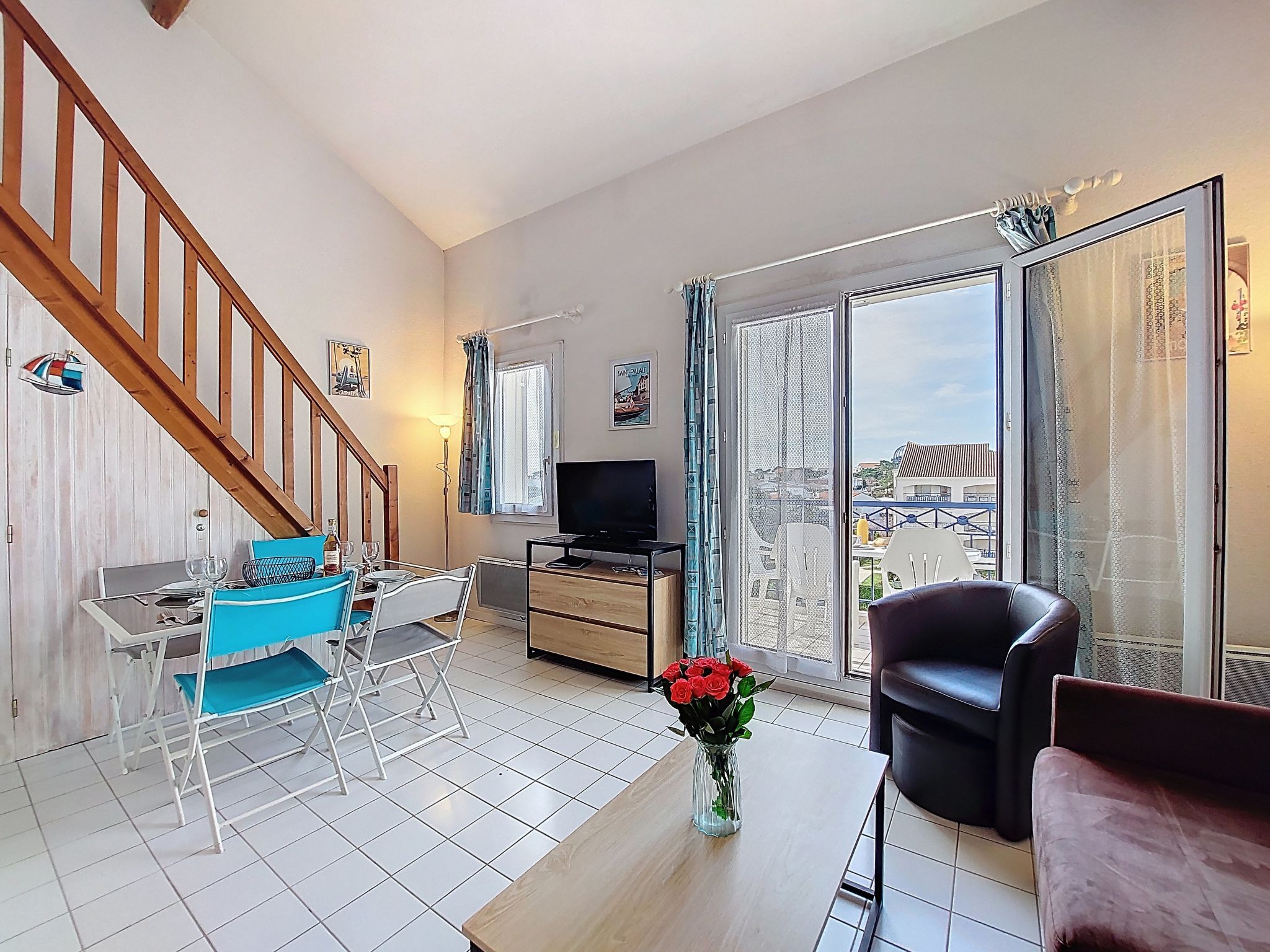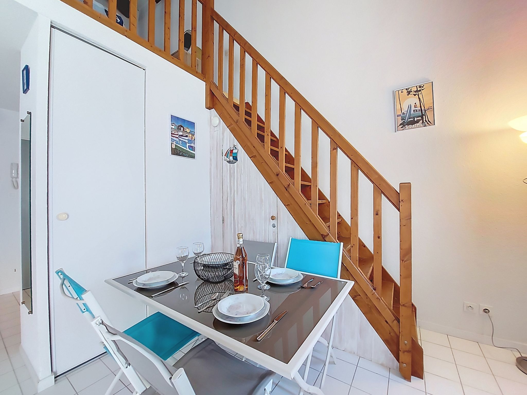 1-room studio 32 m2 on 2 levels on 4th floor, south-west facing position. Living room with 1 double sofabed (1 x 140 cm, length 190 cm), TV (flat screen). Exit to the balcony. Kitchenette (2 hot plates, oven, microwave, electric coffee machine). Bathroom, sep. WC. Electric heating. Upper floor: (steep stair) gallery with 1 french bed (1 x 140 cm, length 190 cm). Balcony 5 m2, south facing position and west facing position. Balcony furniture. Facilities: washing machine, hair dryer. Internet (WiFi, extra). Please note: not suitable for small children. Non-smokers only. Smoke alarm. Accomodation not suitable for young children : There is no safety barrier for the stairs. Instead of an enclosed bedroom, some sleeping areas are located in an open-plan area (gallery, alcove, etc.). Offer by a private individual according to Art. 155, IV of CGI.