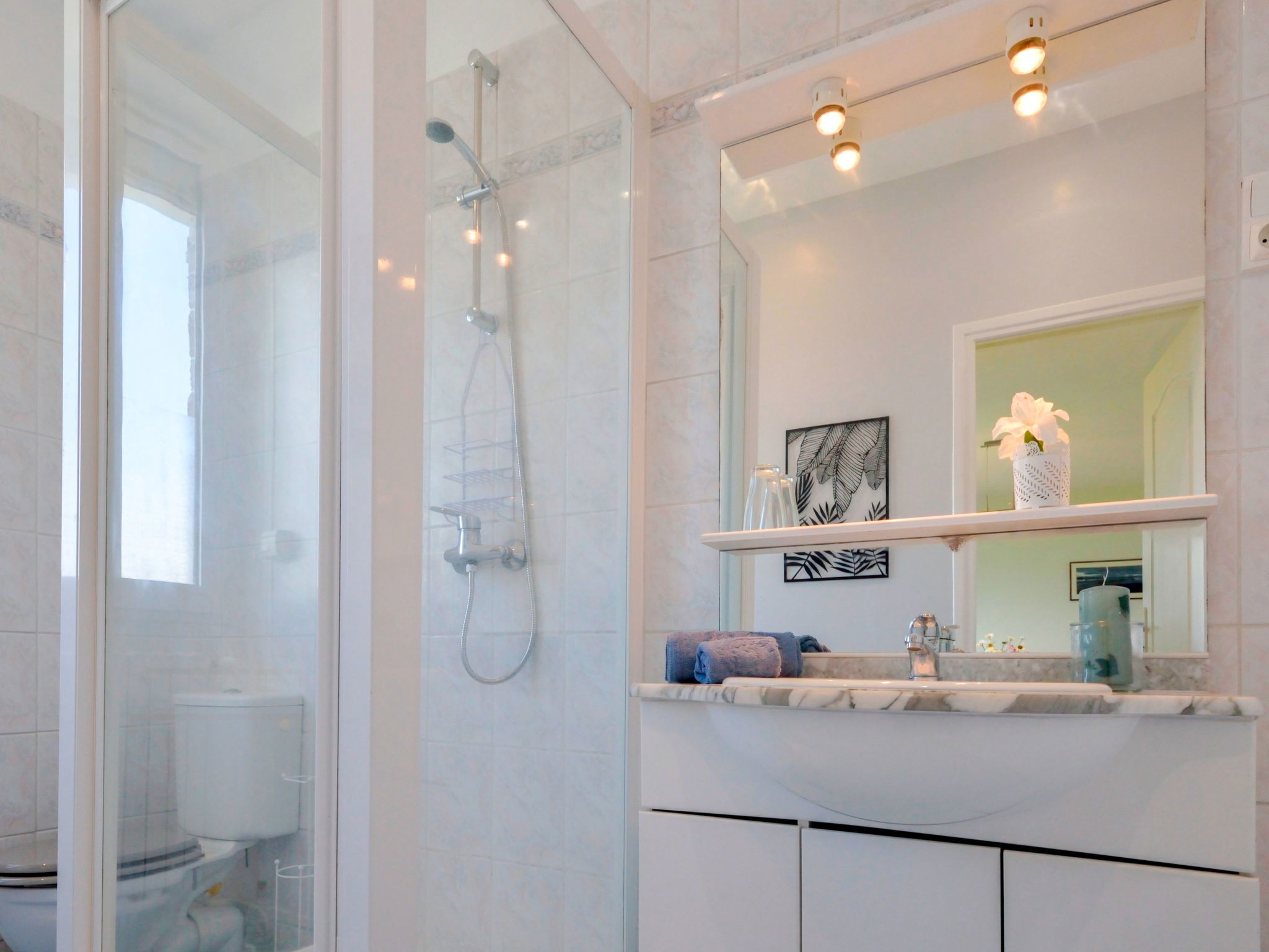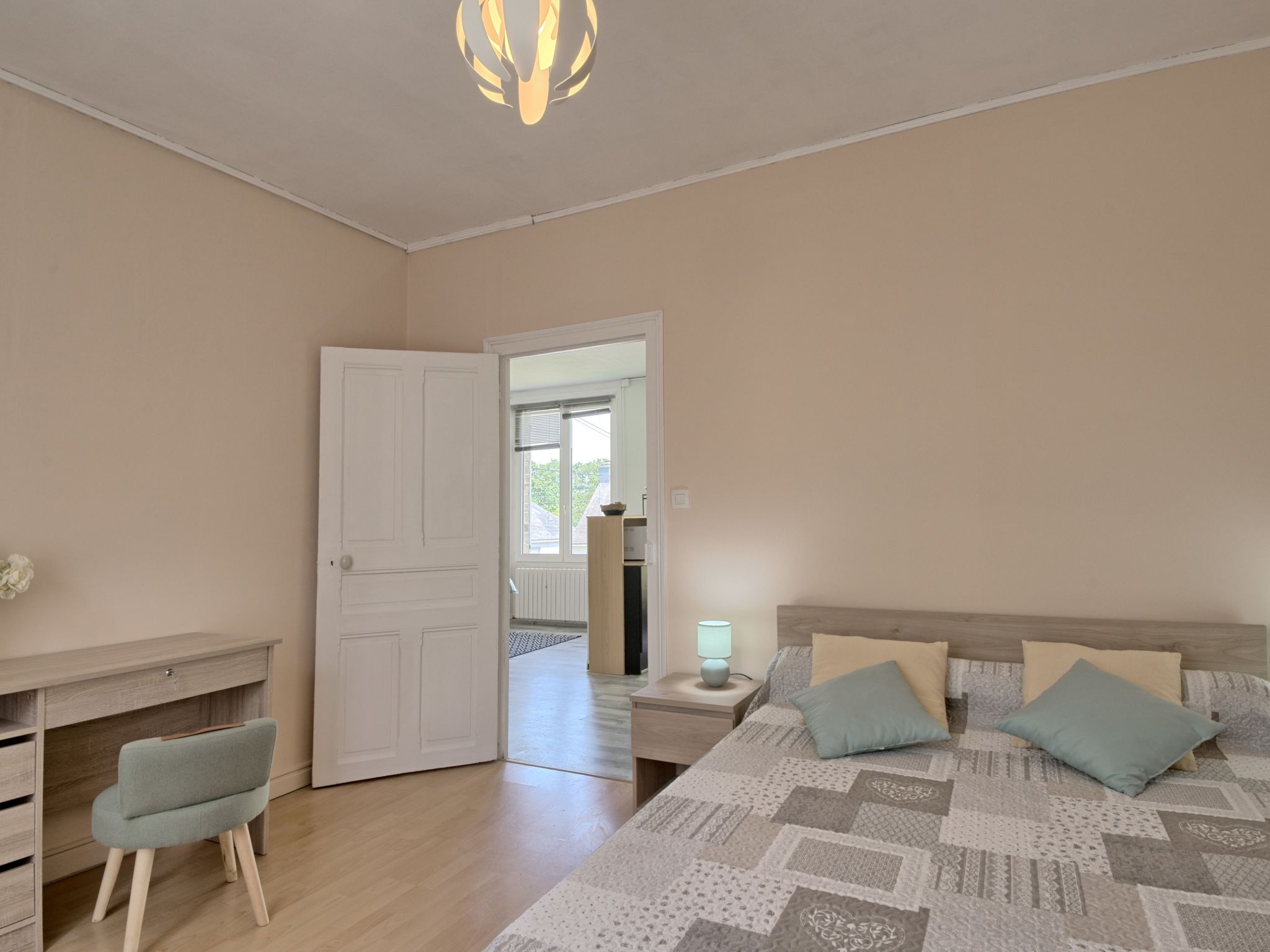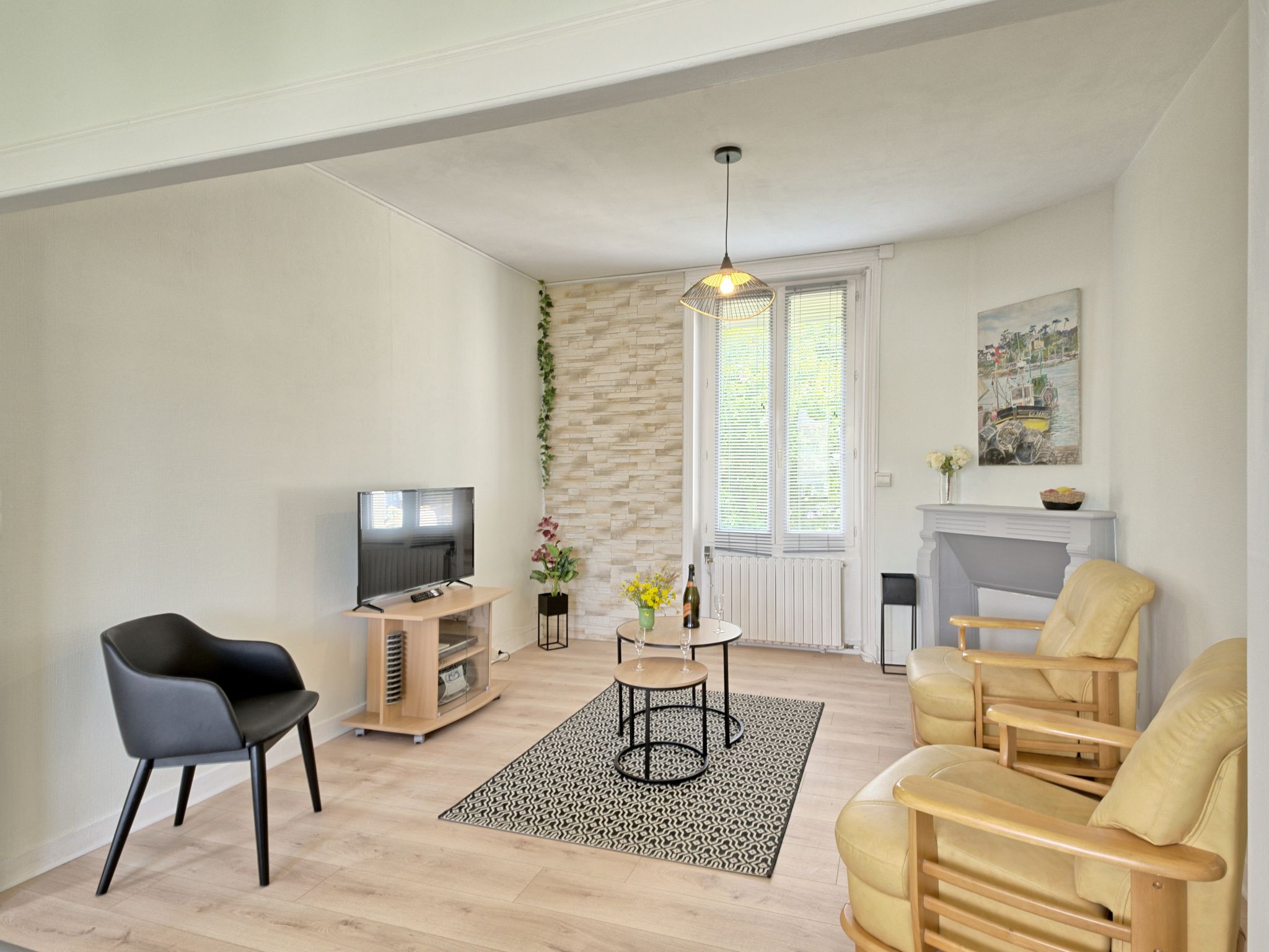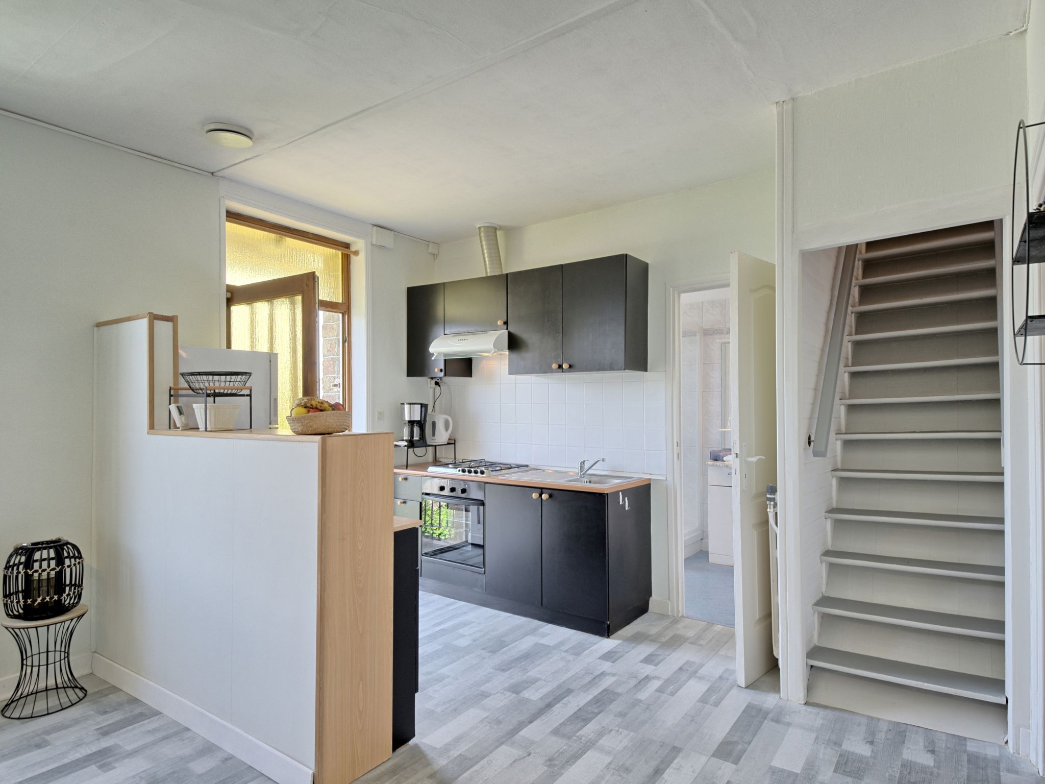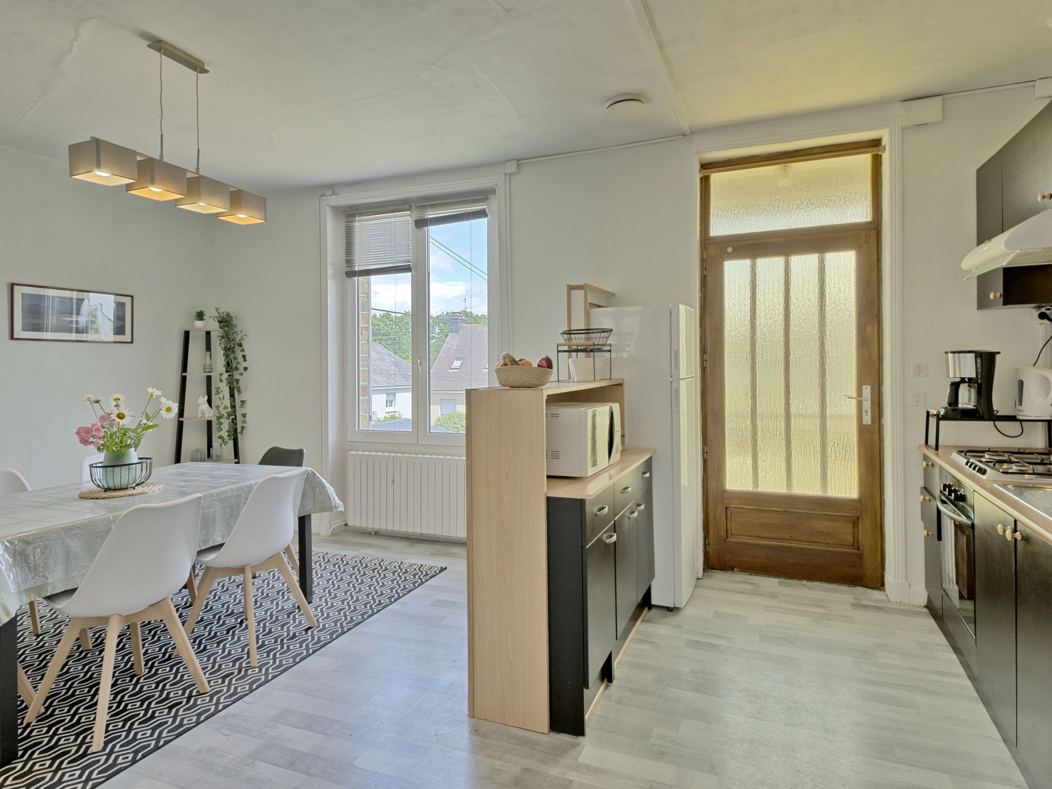 "L'escapade", 3-room terraced house 50 m2 on 2 levels, on the upper ground floor. Renovated in 2023, beautiful and cosy furnishings: living/dining room with dining table and TV (flat screen). 1 room with 1 french bed (140 cm, length 190 cm). Kitchenette in the entrance (1 hot plate, oven, 3 gas rings, toaster, kettle, electric coffee machine). Shower/WC. Gas heating. Upper floor: (steep stair), 1 room with 2 beds (90 cm, length 190 cm). Terrace furniture, barbecue, deck chairs (2), box-room. Facilities: washing machine, iron. Internet (WiFi, free). Please note: non-smoking house. Smoke alarm. Offer by a private individual according to Art. 155, IV of CGI. 56007 000117 U6