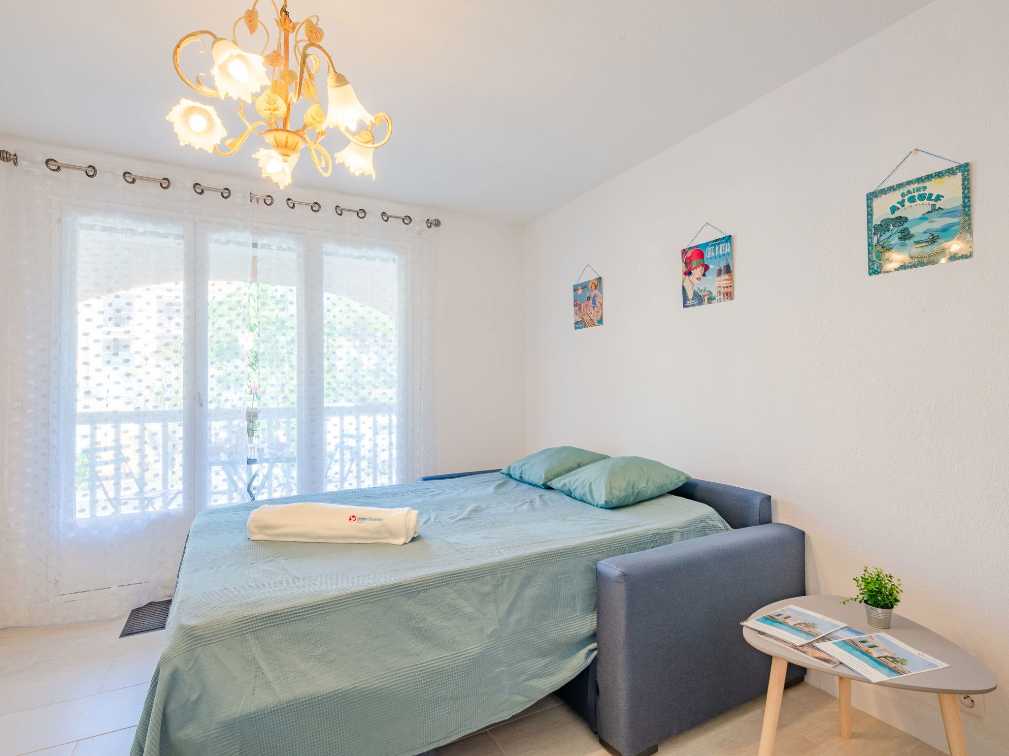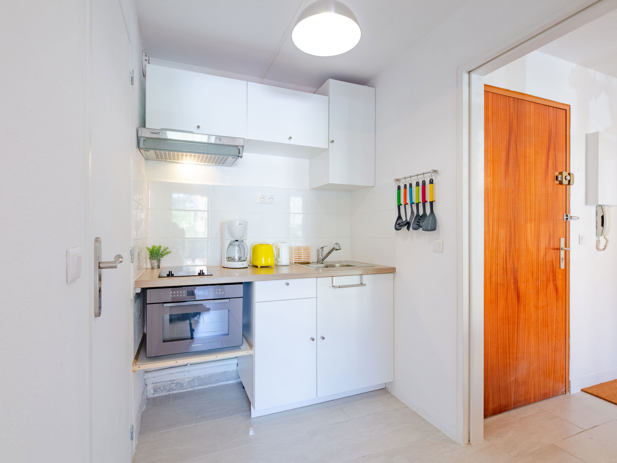 2-room apartment 31 m2 on 1st floor, west facing position. Bright, renovated in 2022, simple and comfortable furnishings: living/dining room with 1 double sofabed (140 cm, length 190 cm), dining table and TV (flat screen), air conditioning. Exit to the balcony. 1 room with Dressing room with 1 french bed (140 cm, length 190 cm). Exit to the balcony. Small, open kitchen (2 ceramic glass hob hotplates, toaster, kettle, freezer, electric coffee machine, combination microwave). Shower/WC. Electric heating. Balcony 10 m2, west facing position. Balcony furniture. Facilities: washing machine, iron, hair dryer. Internet (WiFi, free). Garage space n 23 (1 car). Please note: apartment street side. Non-smokers only. Smoke alarm. Offer by a private individual according to Art. 155, IV of CGI.