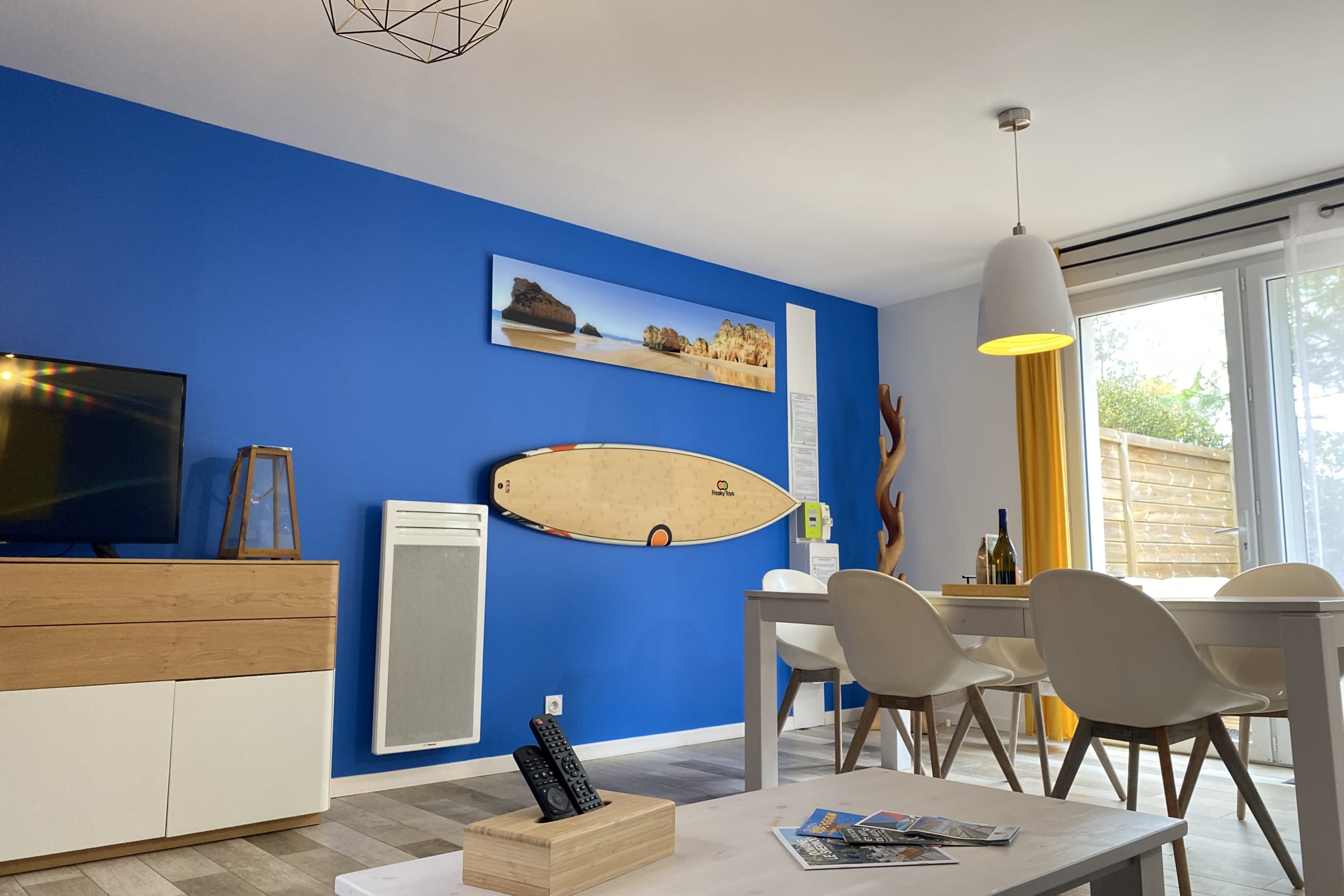 Decorated on the theme of Portugal, this 60m² house can accommodate up to 6 people. It has a living room and a fitted and fully equipped kitchen (oven, fridge-freezer, dishwasher, microwave, oven, filter coffee maker, toaster, Nespresso, kettle, microwave, ceramic hob, all necessary crockery, television (TNT channels), hair dryer, washing machine, iron and ironing board).