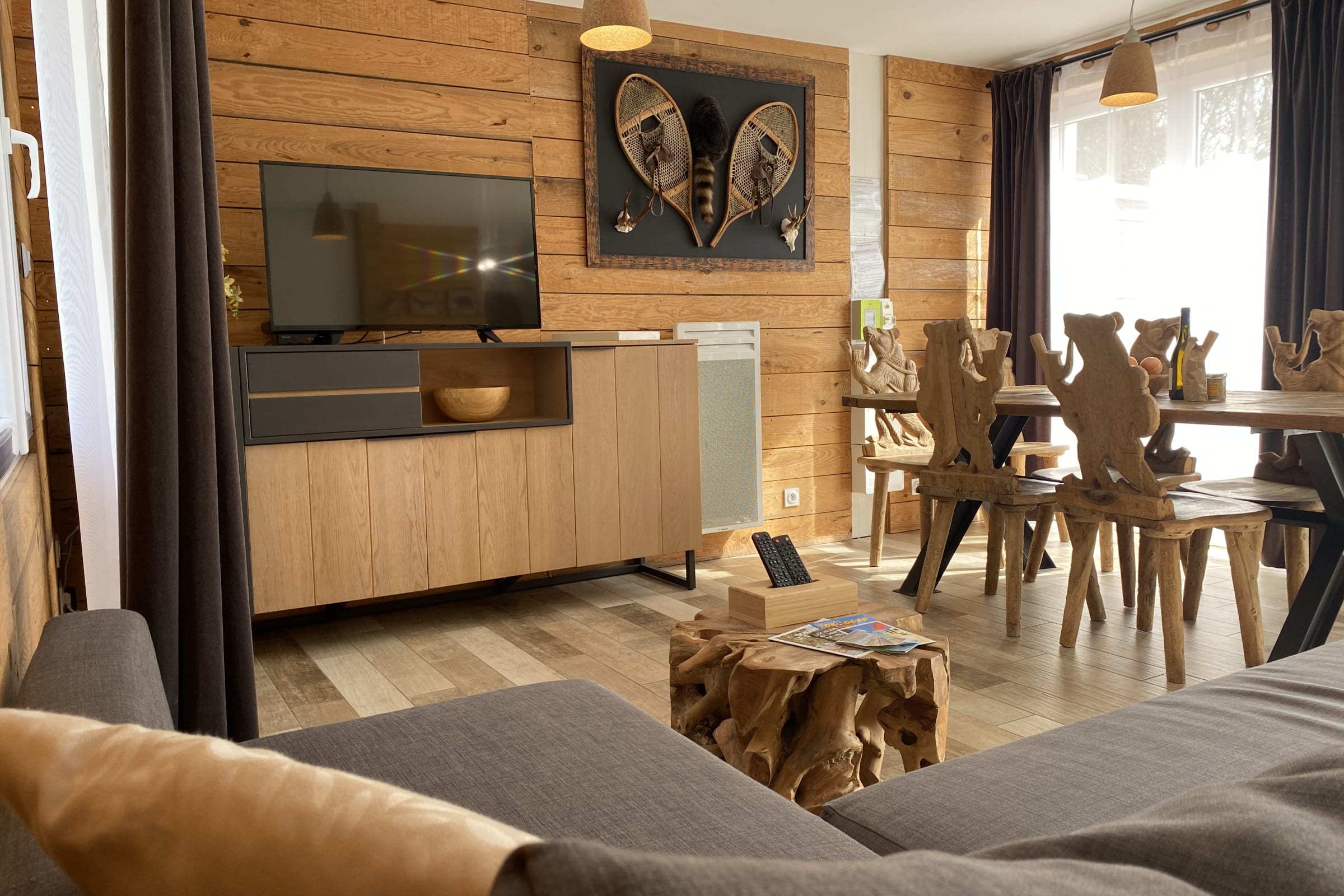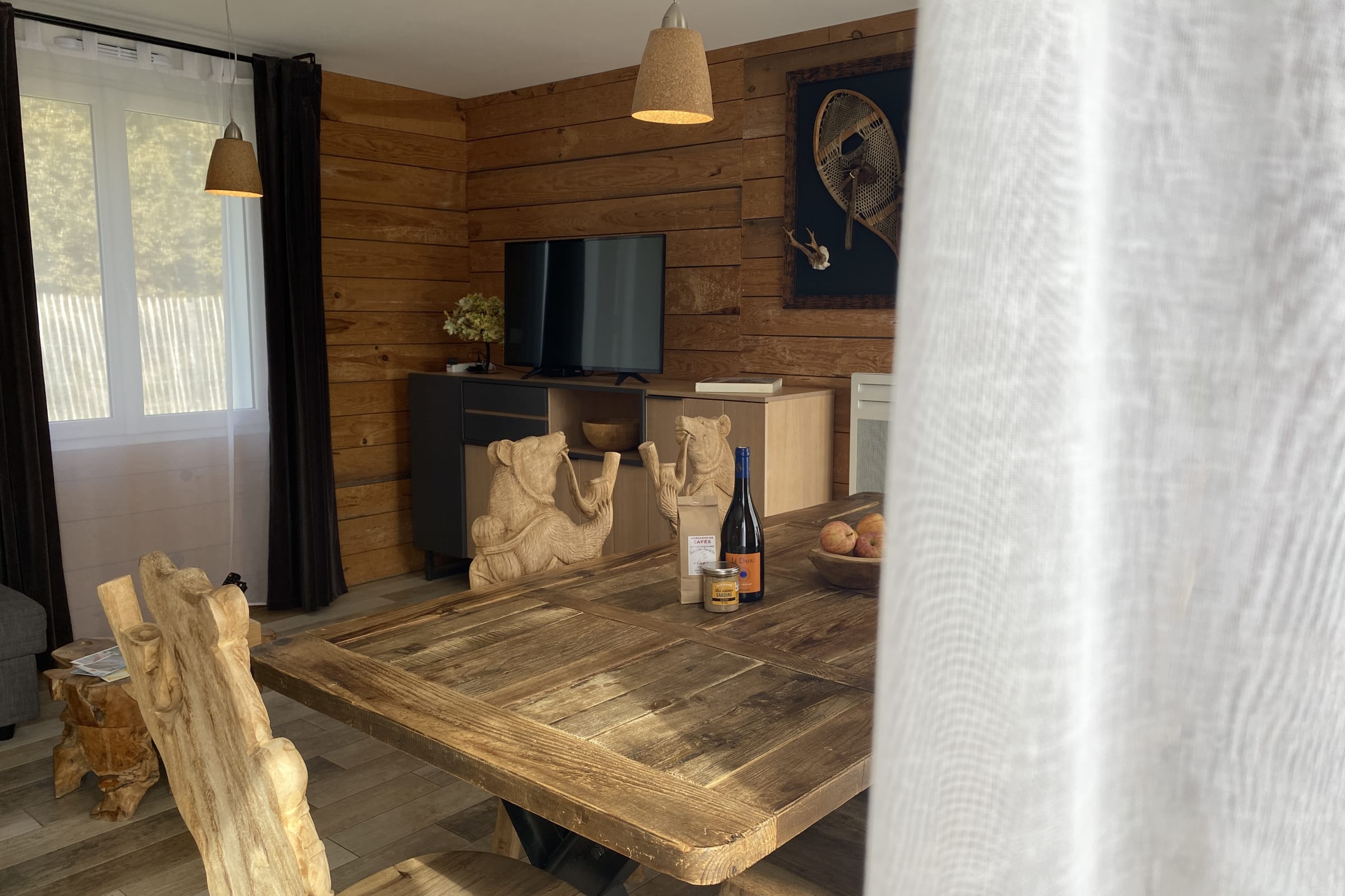Decorated on the theme of Canada, this 60m² house can accommodate up to 6 people. It has a living room and a fitted and fully equipped kitchen (oven, fridge-freezer, dishwasher, microwave, oven, filter coffee maker, toaster, Nespresso, kettle, microwave, ceramic hob, all necessary crockery, television (TNT channels), hair dryer, washing machine, iron and ironing board).
