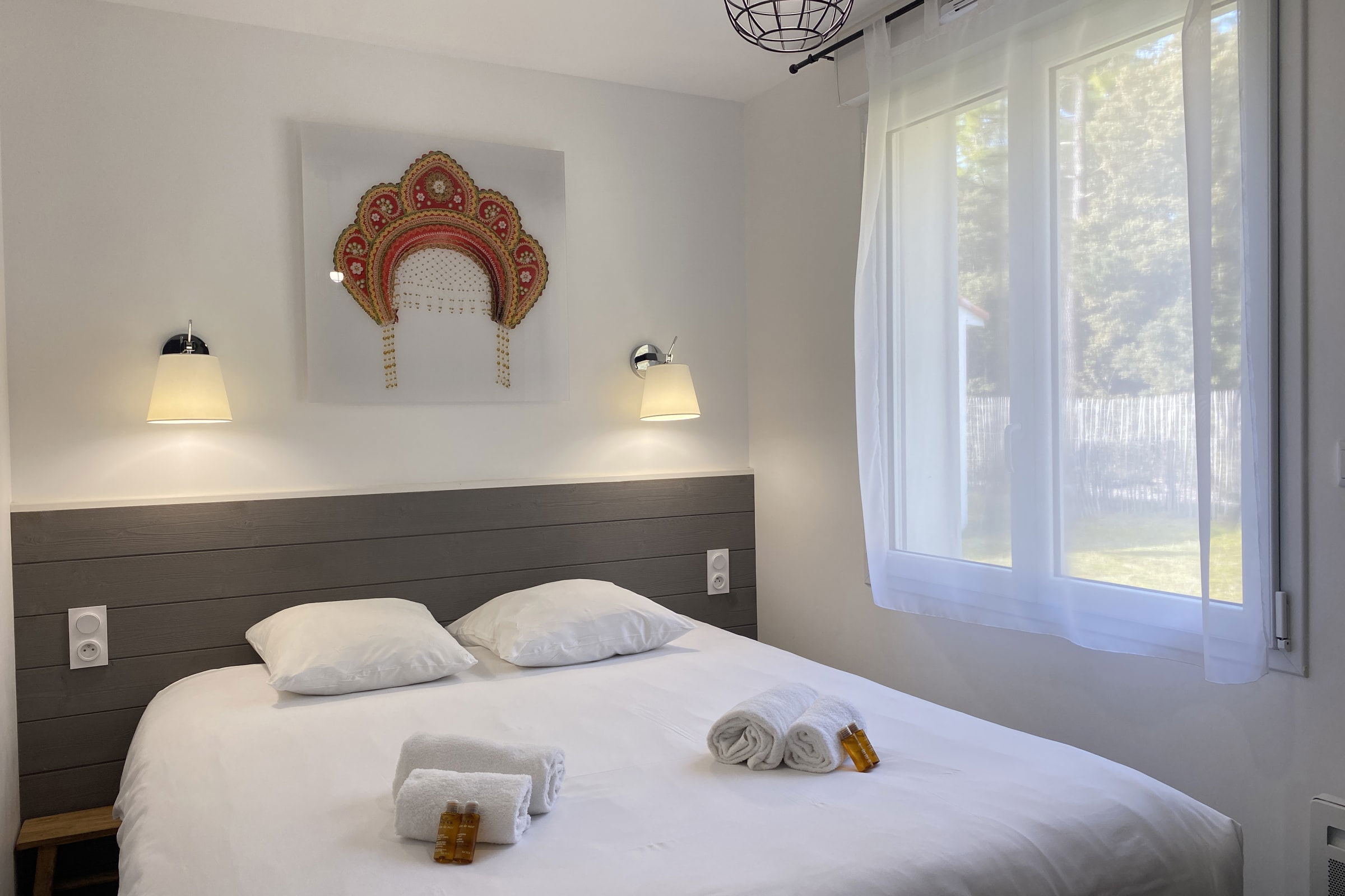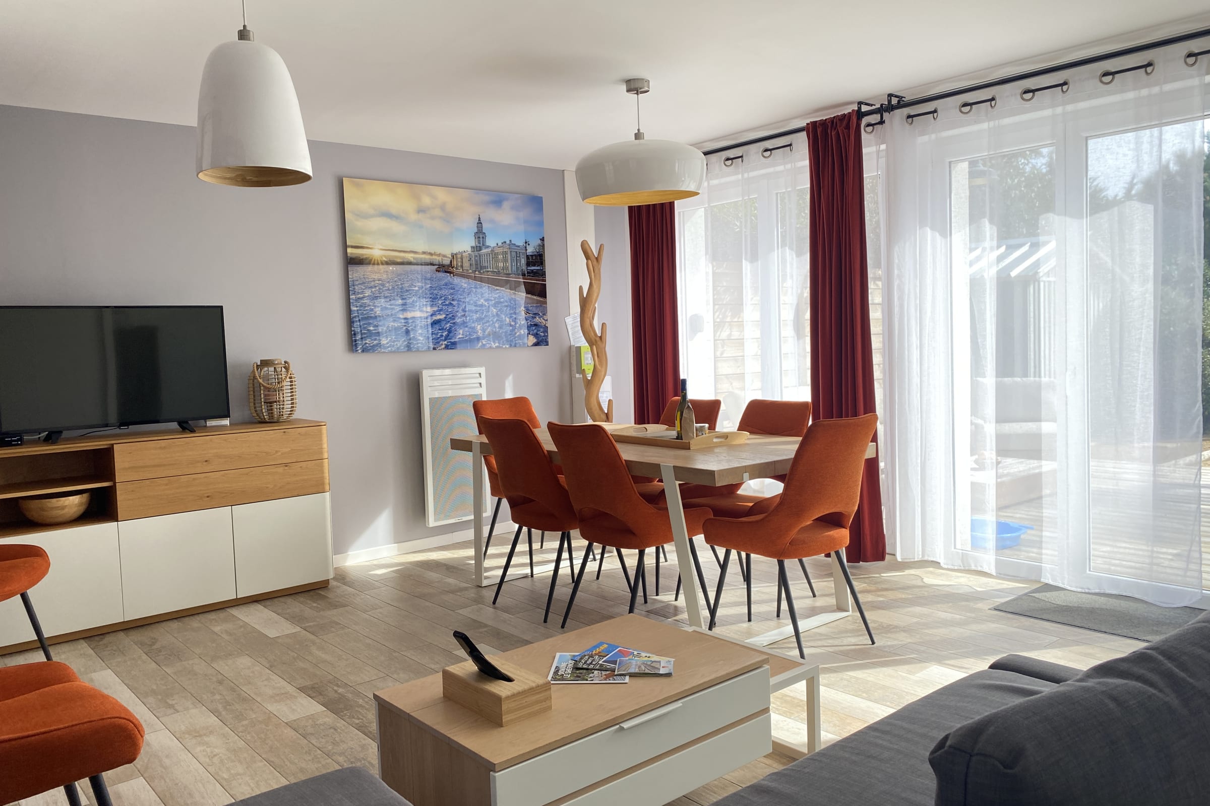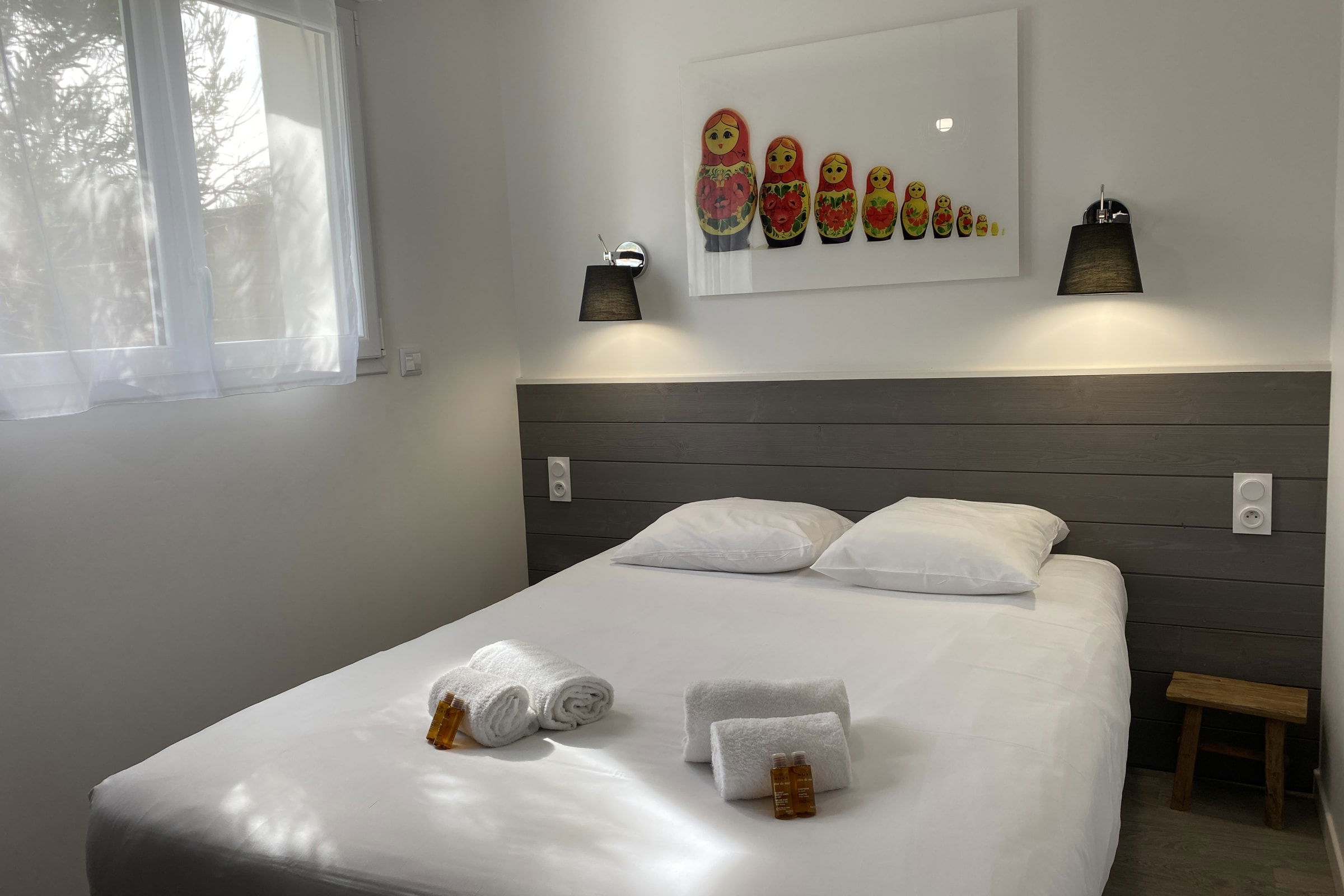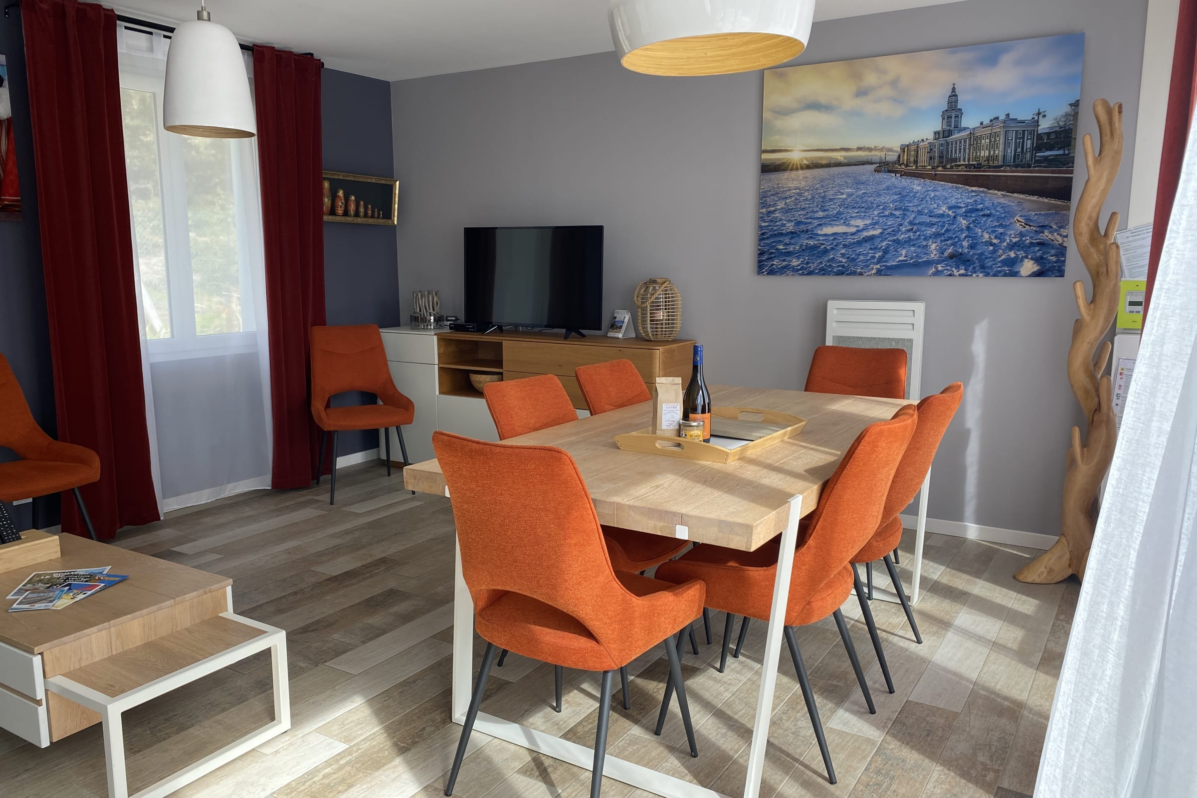 Decorated with a Russian theme, this 65m² house can accommodate up to 8 people. It has a living room and a fitted and fully equipped kitchen (oven, fridge-freezer, dishwasher, microwave, oven, filter coffee maker, toaster, Nespresso, kettle, microwave, ceramic hob, all necessary crockery, television (TNT channels), hair dryer, washing machine, iron and ironing board).