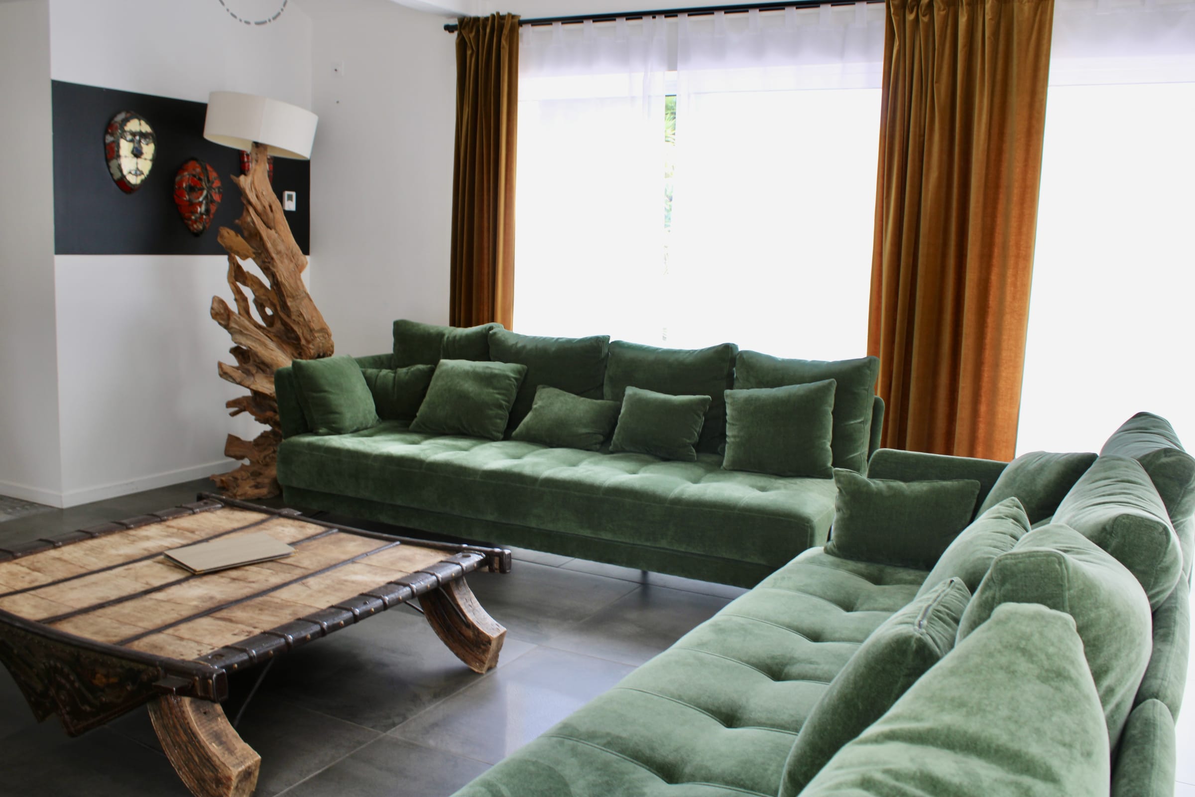 A large reception area with a lounge, a living room and a bar. A fully equipped kitchen (oven, fridge-freezer, dishwasher, microwave, oven, coffee maker Krups, toaster, kettle, microwave, ceramic hob, all necessary crockery, television (TNT channels) ), hairdryer, washing machine, iron and ironing board).