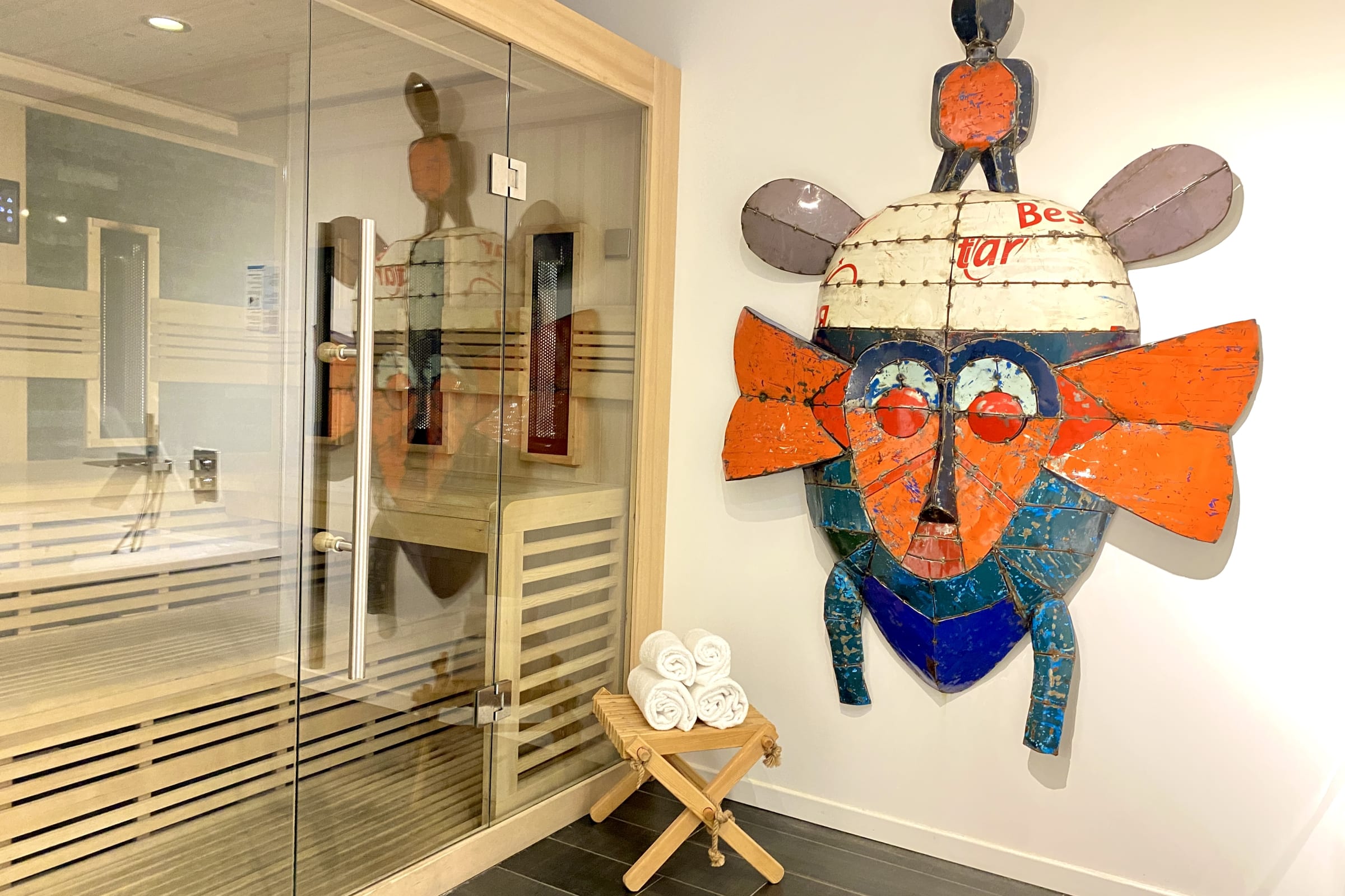 A room dedicated to well-being with sauna and whirlpool (optional).