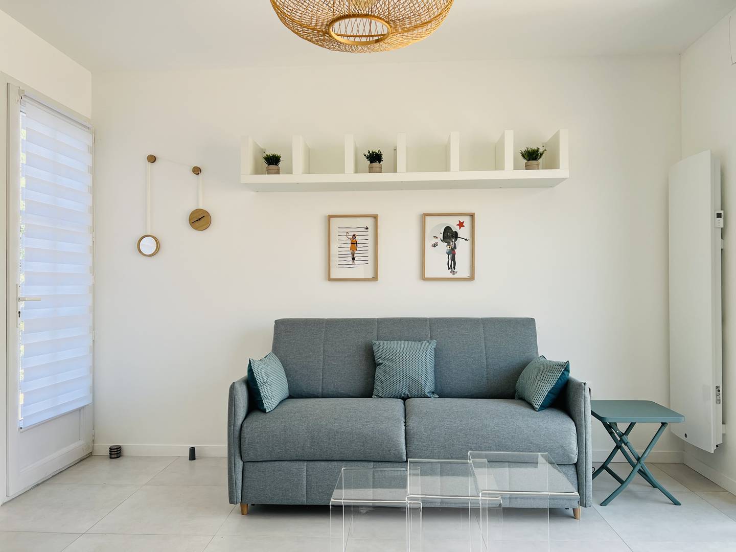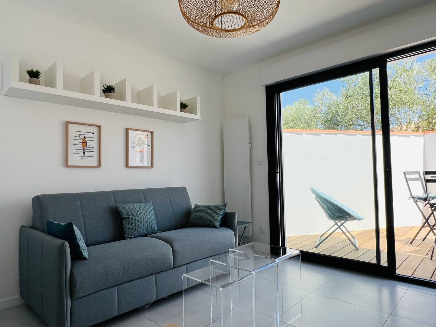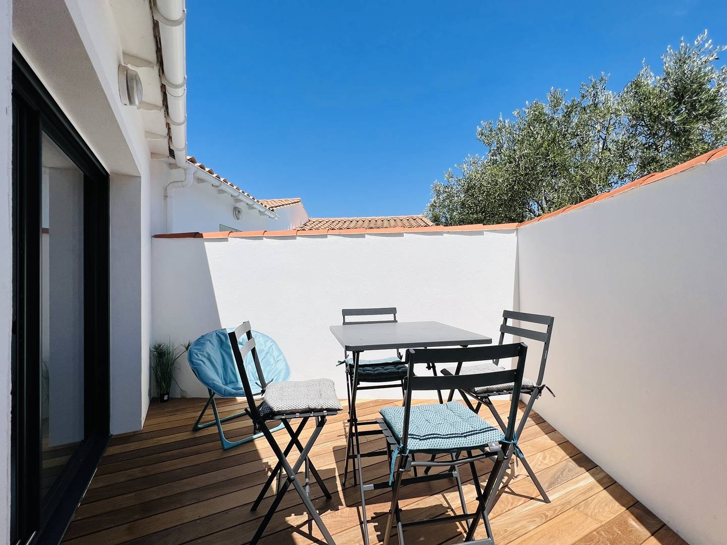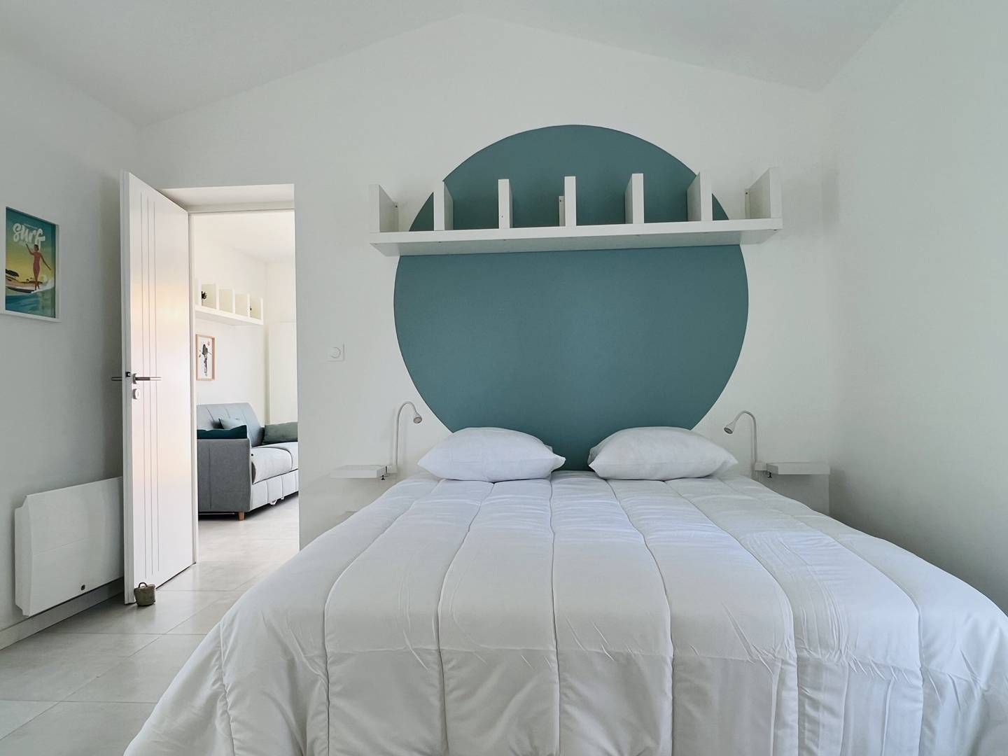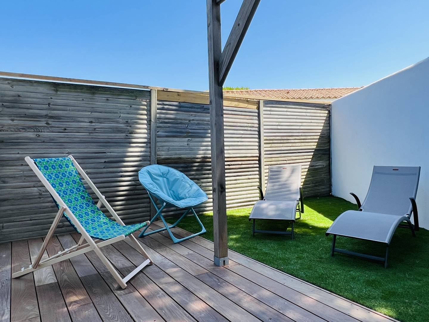 Nicely decorated house, equipped with care for your comfort, in a quiet environment, close to the beach, cycle paths and the center of the charming village of Bois-Plage! The entrance serves a large warm and bright living room composed of a lounge area and a fitted kitchen with dining table. The kitchen opens onto a outdoor space with a garden table. The sleeping area includes a large bedroom with a bathroom with toilet, and cupboards with hanging space and shelves. A comfortable convertible sofa bed offers two additional beds. You will appreciate the beautiful height under the crawling ceiling and the quality equipment (mattress, bathroom). The room has access to a pretty garden with deckchairs to enjoy sweet moments of idleness. A washing machine, an ironing board and an iron are at your disposal. A free parking space is reserved for you.