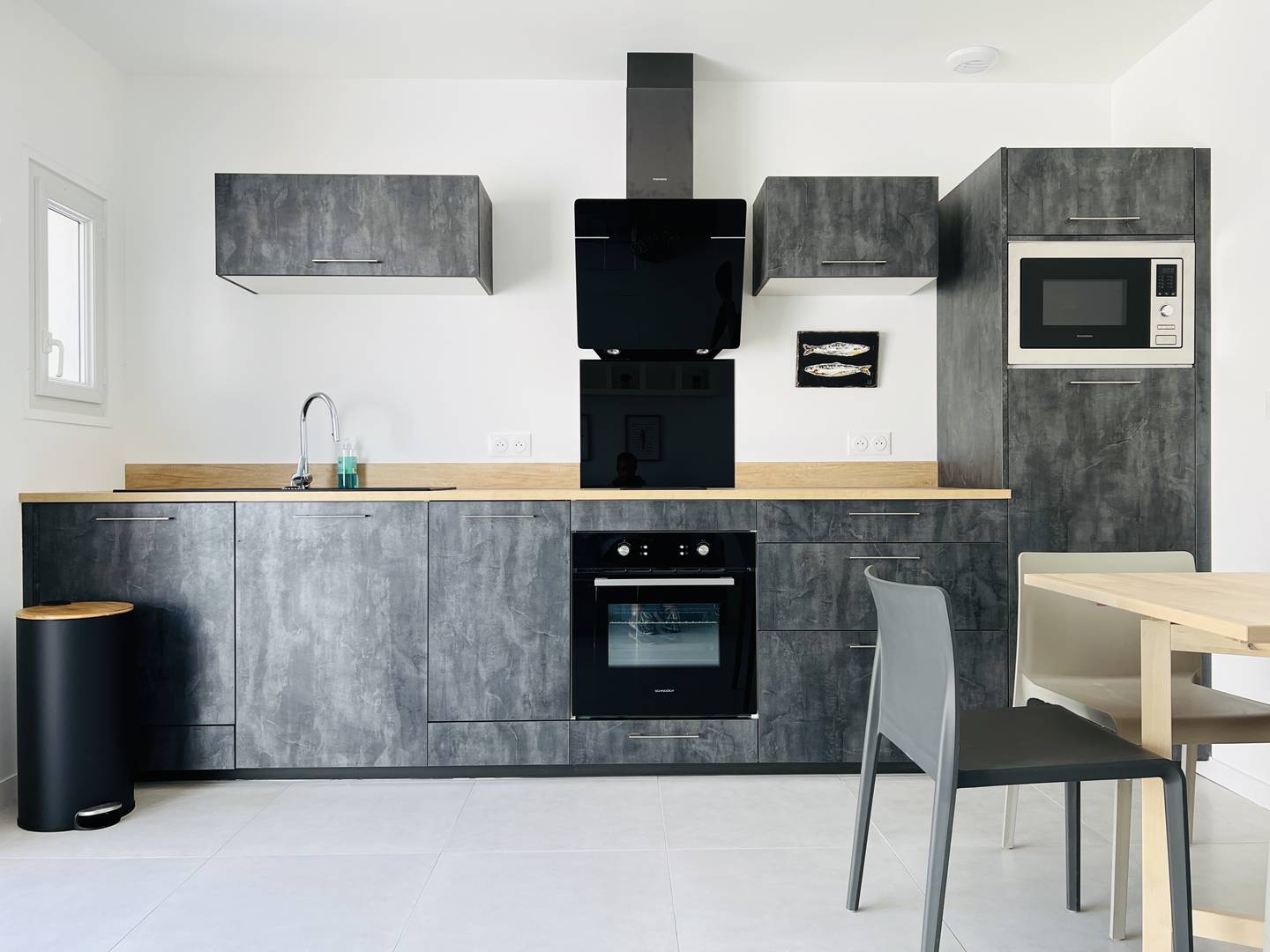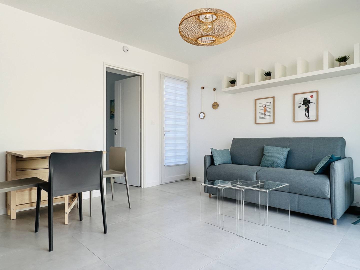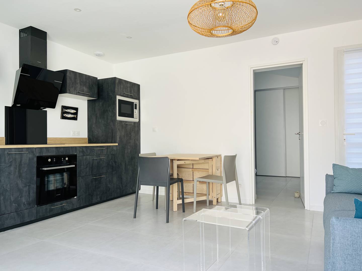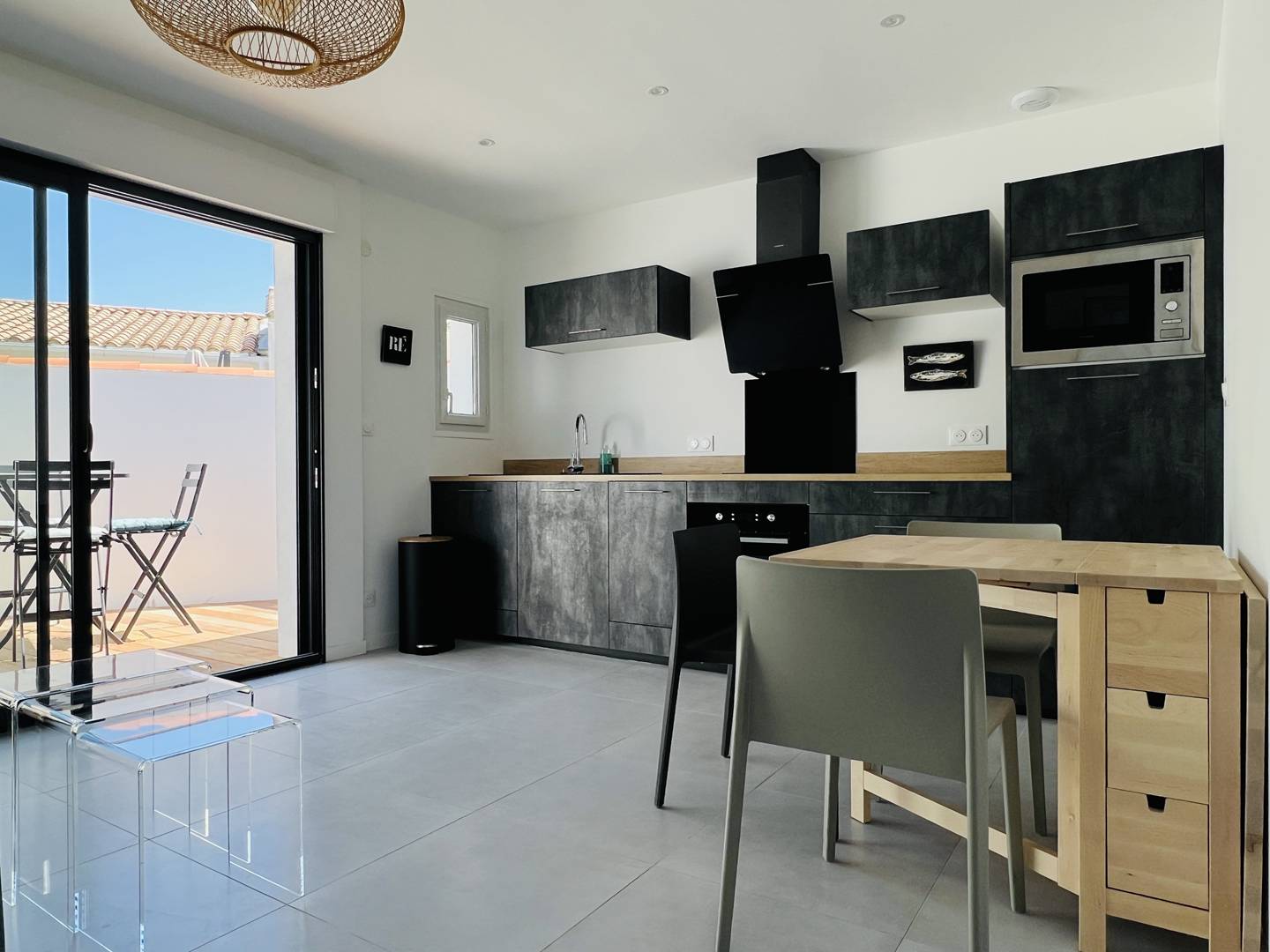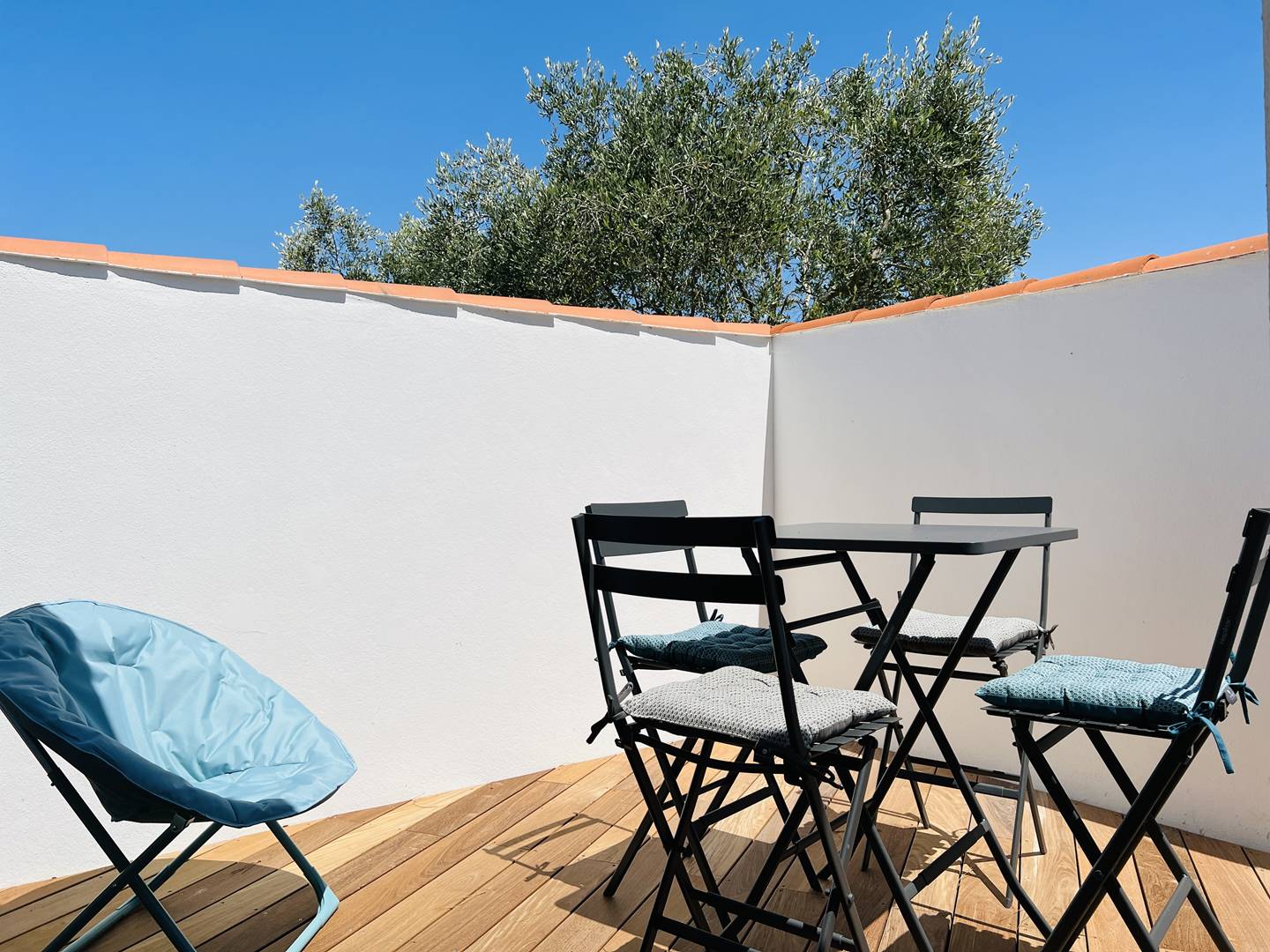 Nicely decorated house, equipped with care for your comfort, in a quiet environment, close to the beach, cycle paths and the center of the charming village of Bois-Plage! The entrance serves a large warm and bright living room composed of a lounge area and a fitted kitchen with dining table. The kitchen opens onto a outdoor space with a garden table. The sleeping area includes a large bedroom with a bathroom with toilet, and cupboards with hanging space and shelves. A comfortable convertible sofa bed offers two additional beds. You will appreciate the beautiful height under the crawling ceiling and the quality equipment (mattress, bathroom). The room has access to a pretty garden with deckchairs to enjoy sweet moments of idleness. A washing machine, an ironing board and an iron are at your disposal. A free parking space is reserved for you.