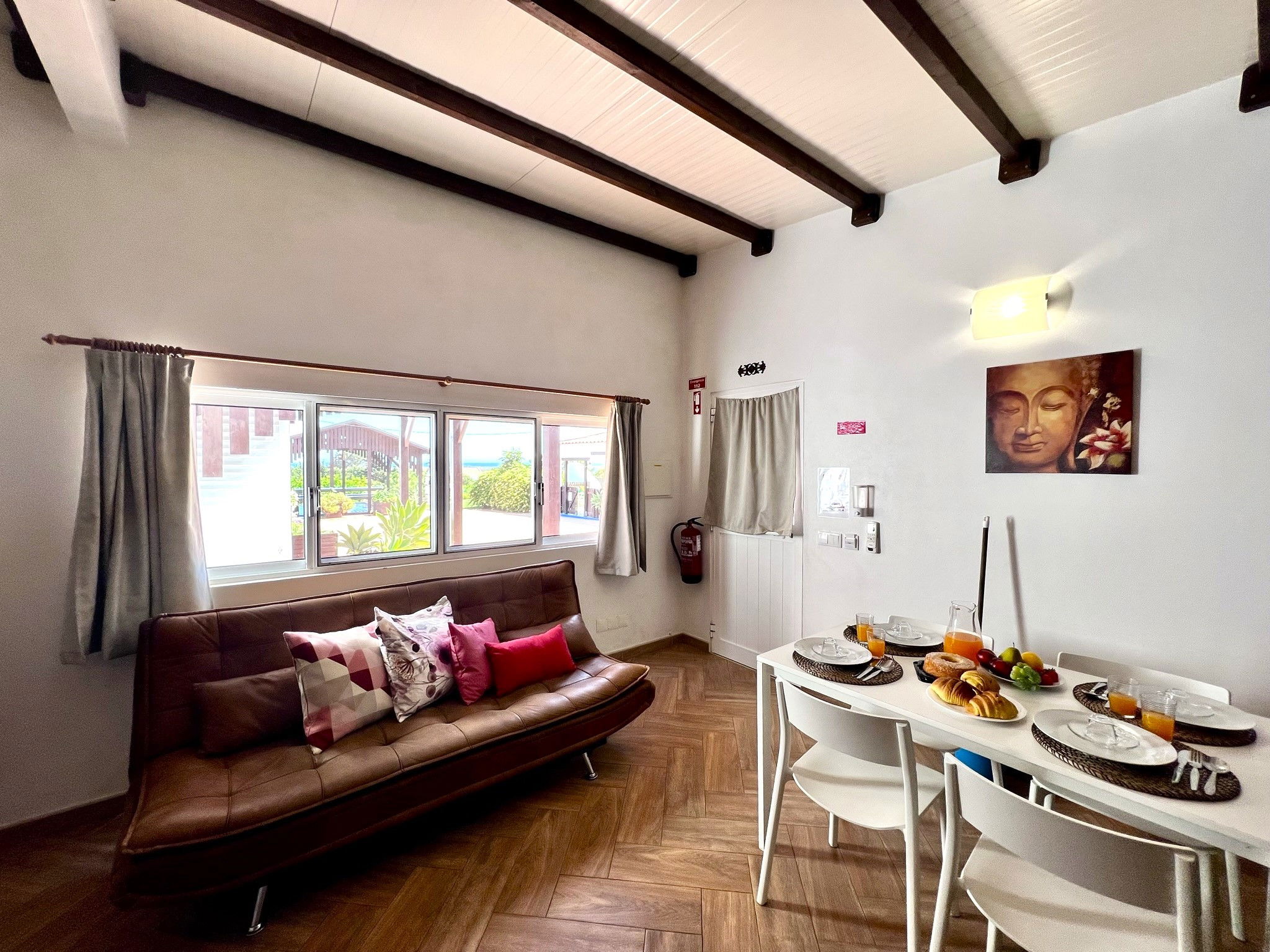 This charming 1-bedroom accommodation offers an intimate and relaxing refuge, ideal for couples or individual travellers. The room is comfortable and well-lit, providing a welcoming environment to rest. The living area is practical and inviting, with a kitchen equipped for your needs. The highlight is the private terrace, perfect for enjoying outdoor moments, whether for a meal or simply relaxing in the sun. Additionally, the pool offers a tranquil space for refreshing dips and relaxation, creating the perfect setting for an unforgettable getaway.