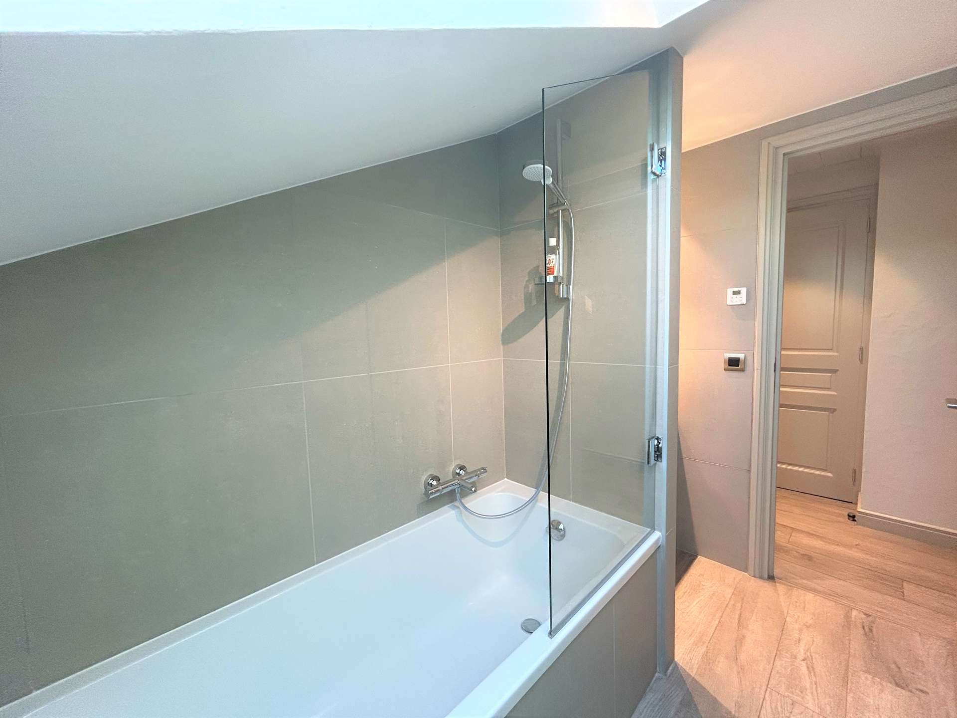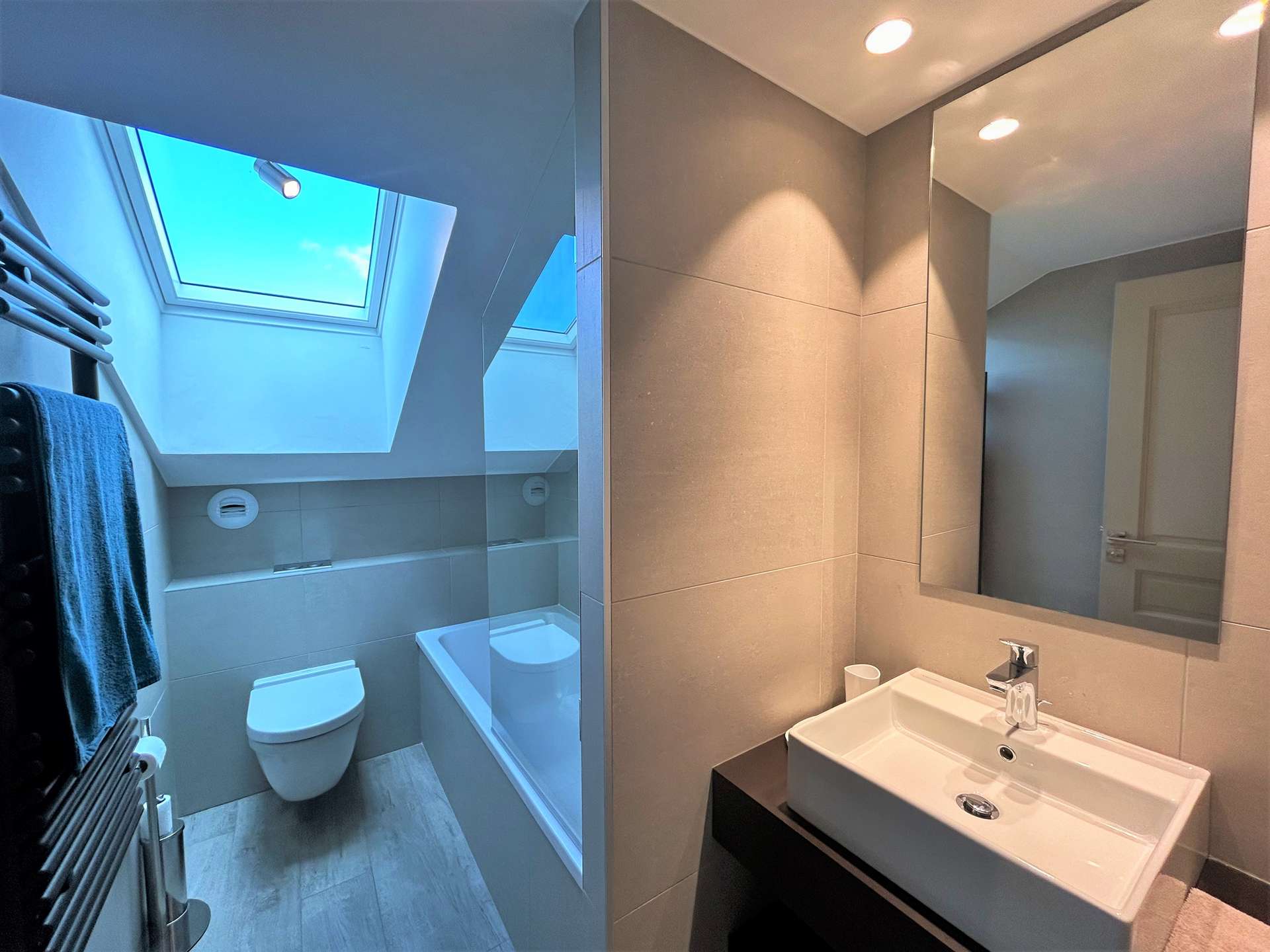 Also a bedroom with 2 single beds (90), a bathroom with toilet and bathtub.