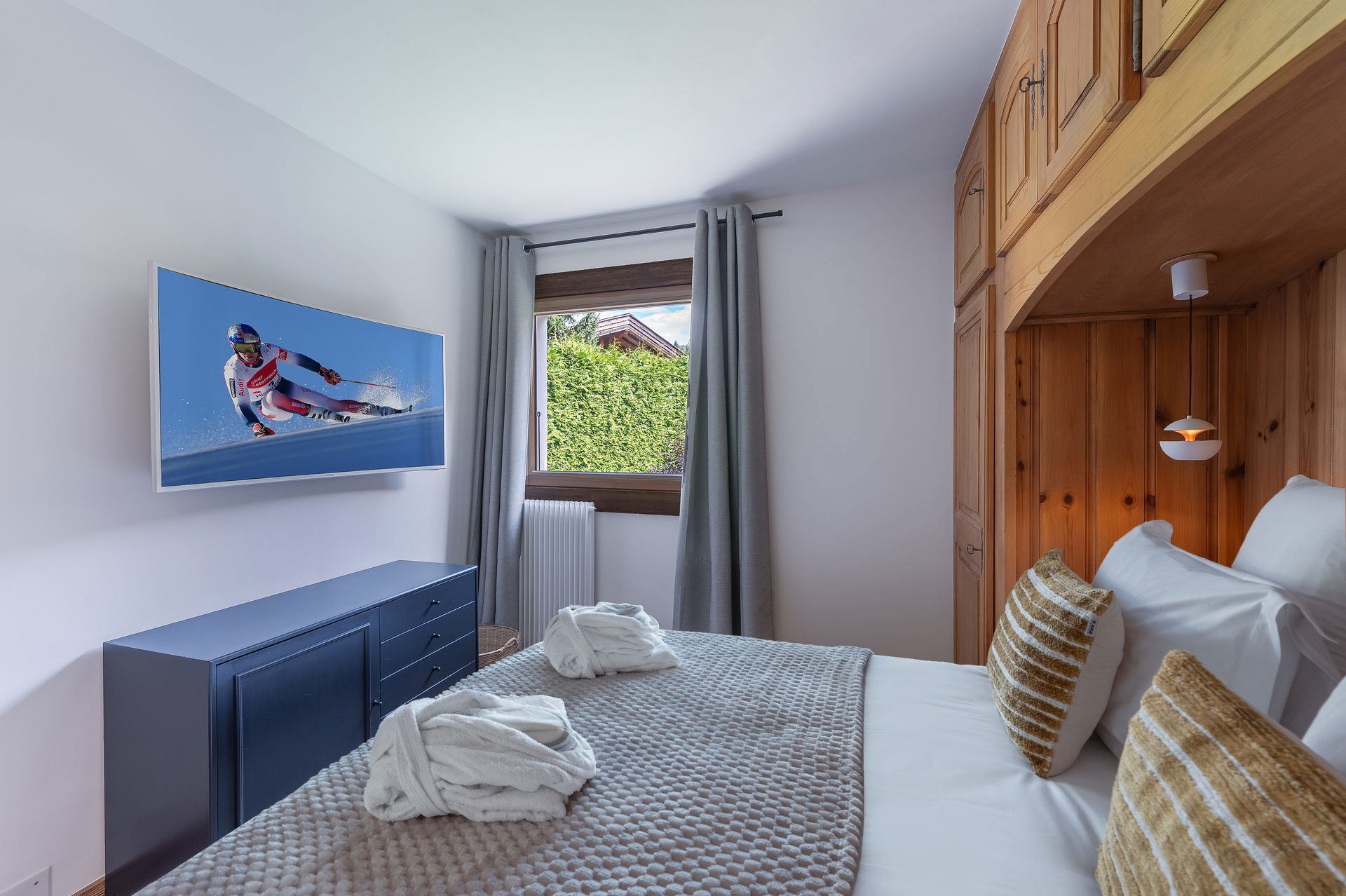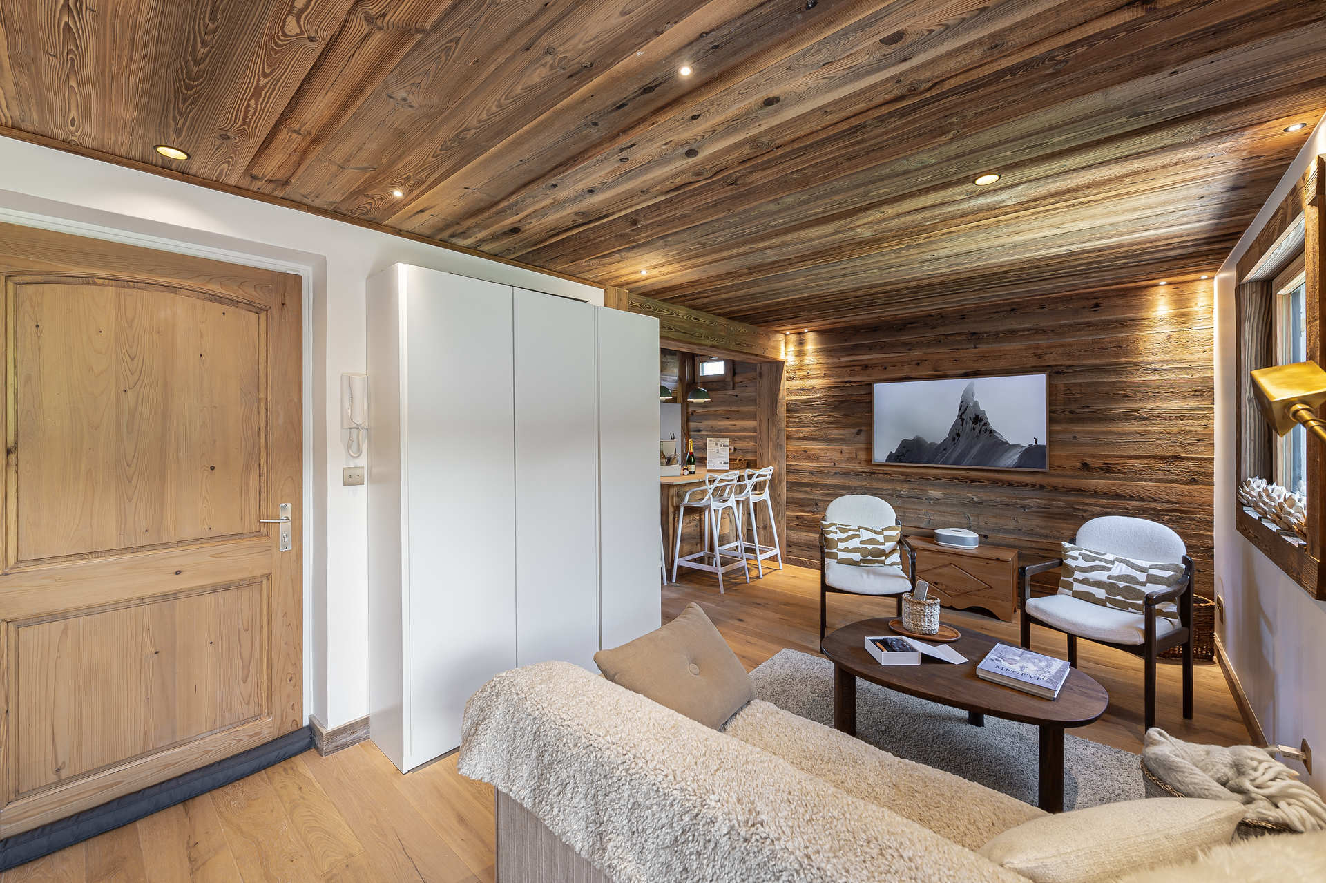 Newly renovated flat located 150 metres from the ski lifts and a 10-minute walk from the village centre. The living area is bright and cosy with an open-plan kitchen. There is a smart TV (with streaming service) in every room of the Super Megève. Accessible from the living room, a terrace completes the flat.